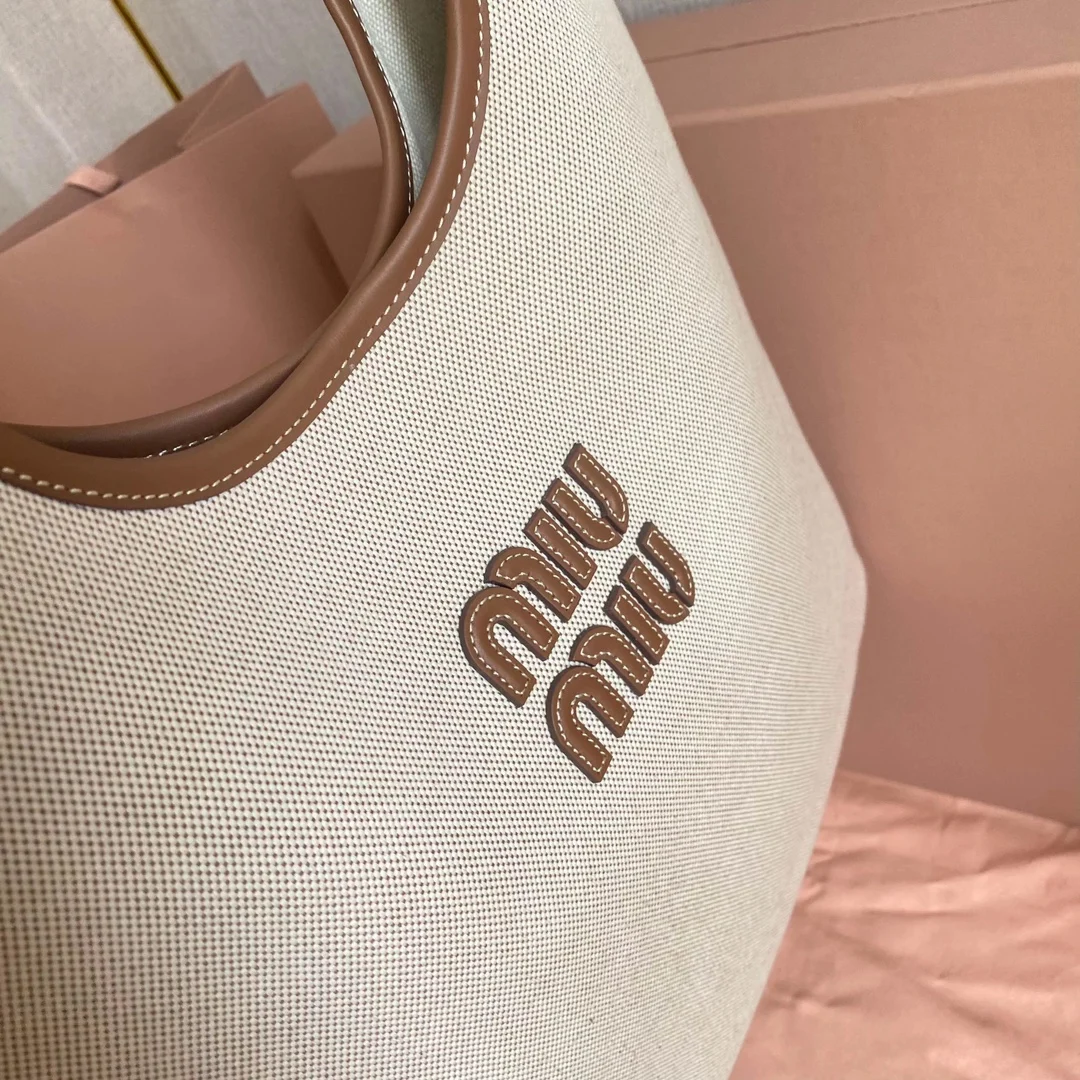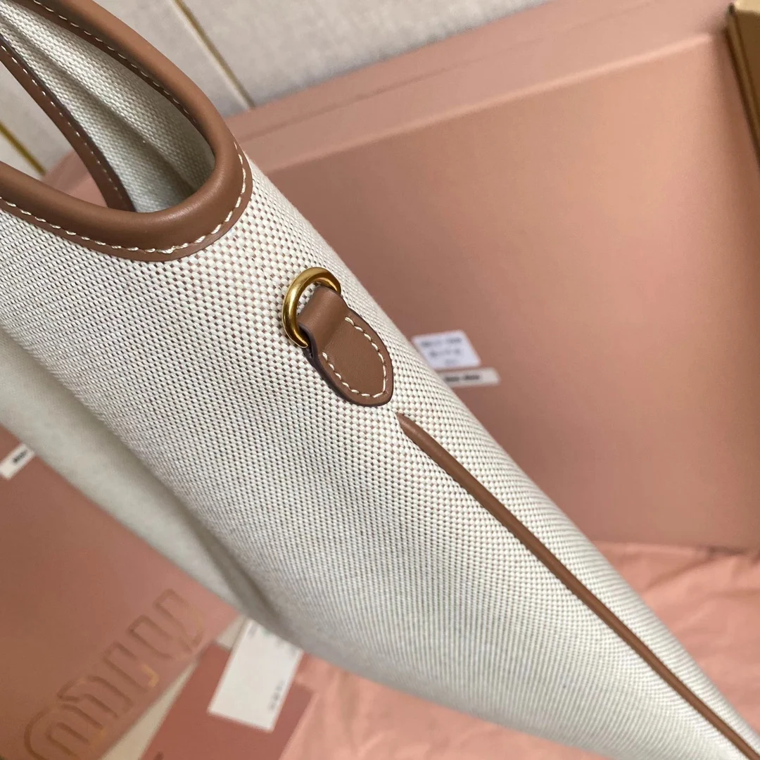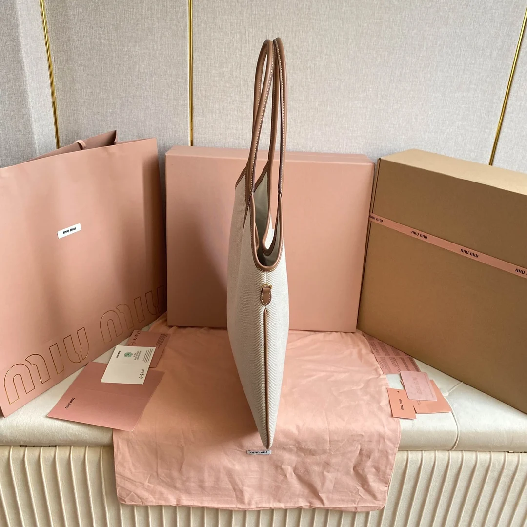 5BG231 Miu家新款伊势丹限定托特包 官网主推 今年绝对式 顶级进口小牛皮 皮面细腻光滑柔软 质感高级 包身软而不塌 气质随性慵懒 容量超大 日常出街背它回头率百分百 手工缝制皮面Logo标志 内里全新麻布里 配拉链式口袋 尺寸35 X 40Cm 配原版全套包装