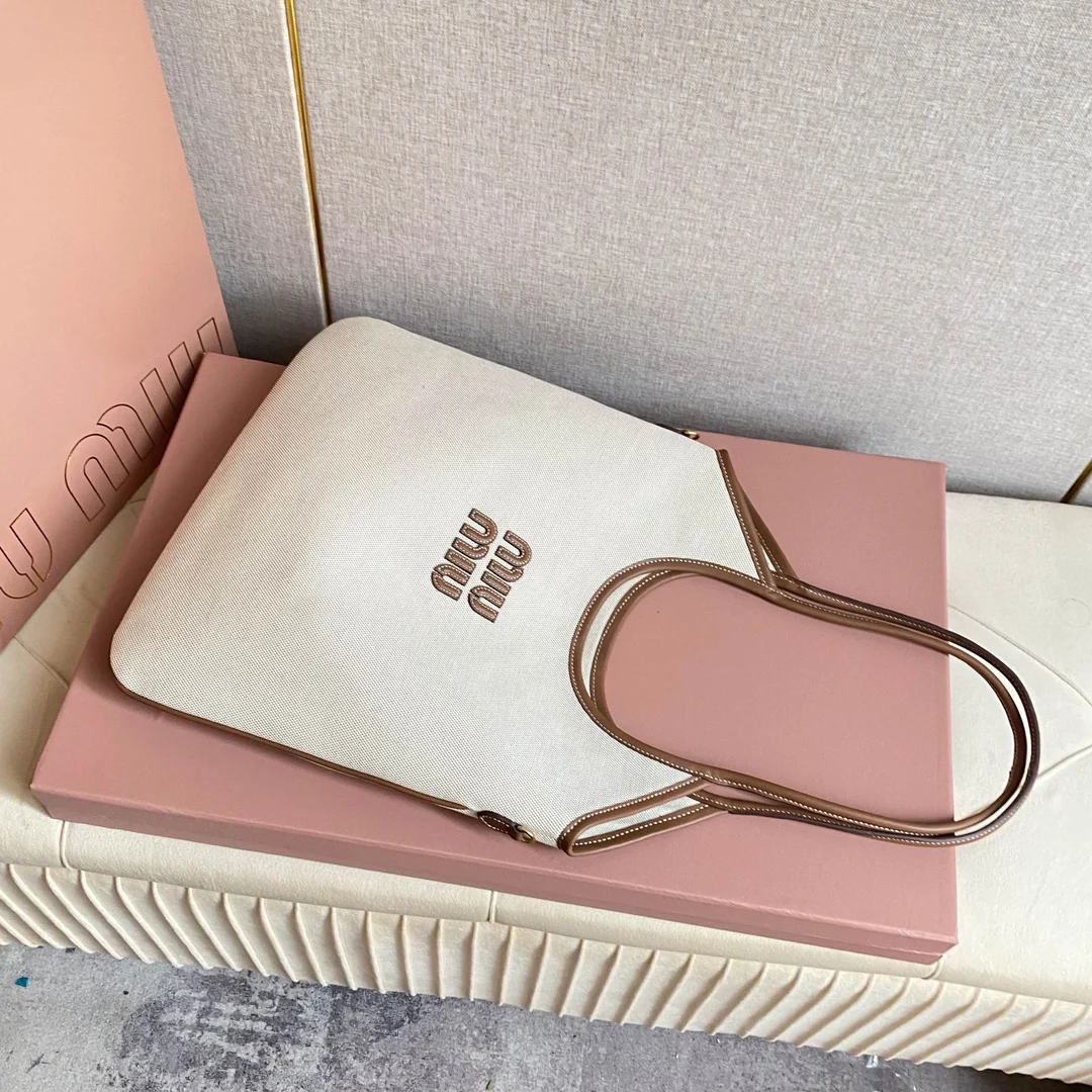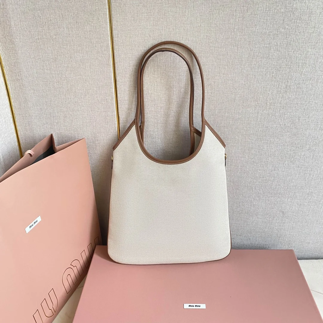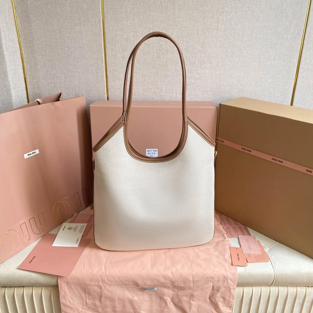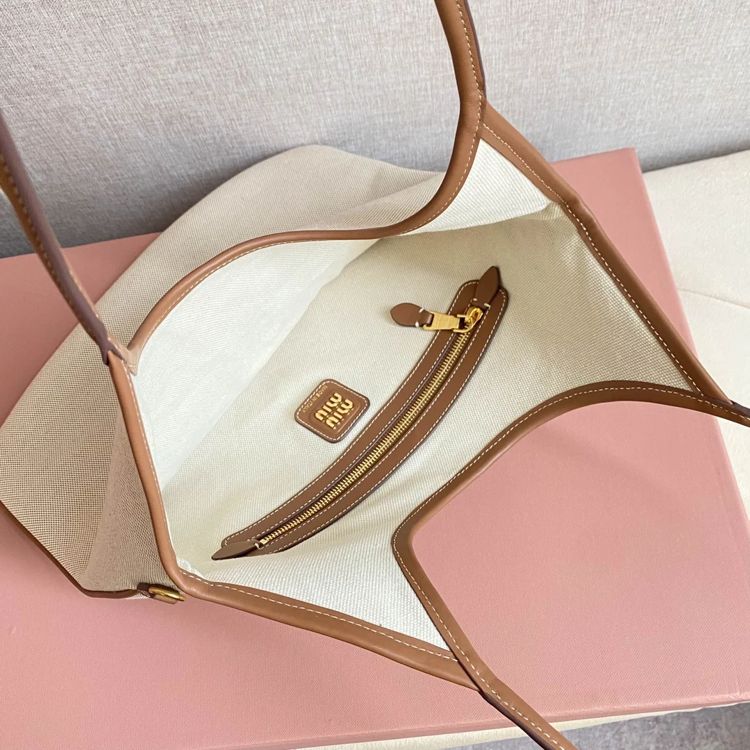 5BG231 Miu家新款伊势丹限定托特包 官网主推 今年绝对式 顶级进口小牛皮 皮面细腻光滑柔软 质感高级 包身软而不塌 气质随性慵懒 容量超大 日常出街背它回头率百分百 手工缝制皮面Logo标志 内里全新麻布里 配拉链式口袋 尺寸35 X 40Cm 配原版全套包装