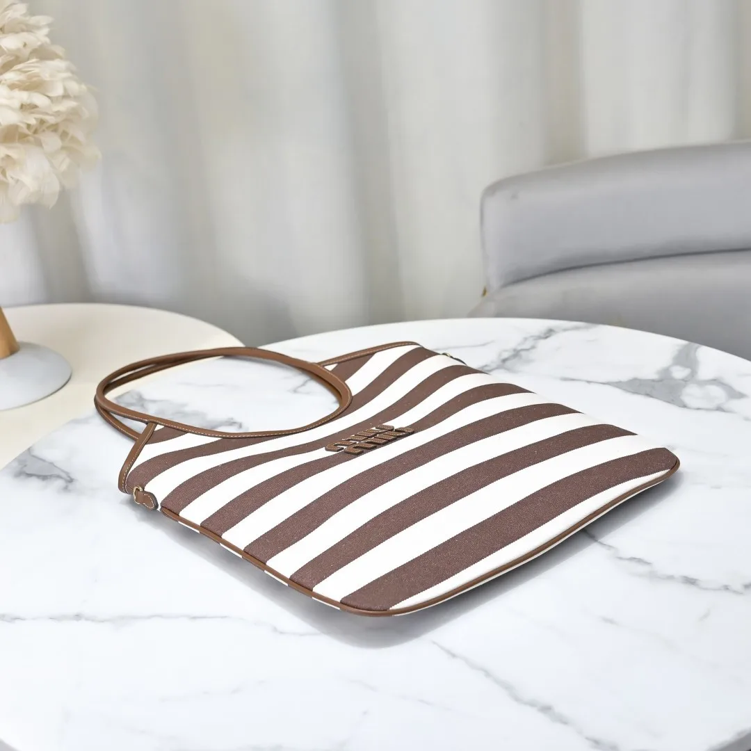 𝗠𝗶𝘂𝗠𝗶𝘂最新的彩色条纹帆布托特包来喽 复古五金配小牛皮 超有调调 长手柄设计可单肩可手提 随意切换 简单又轻便 无论上班还是出游 它都是完美的选择 爱上miu的快乐 就是不断创新 不断惊喜