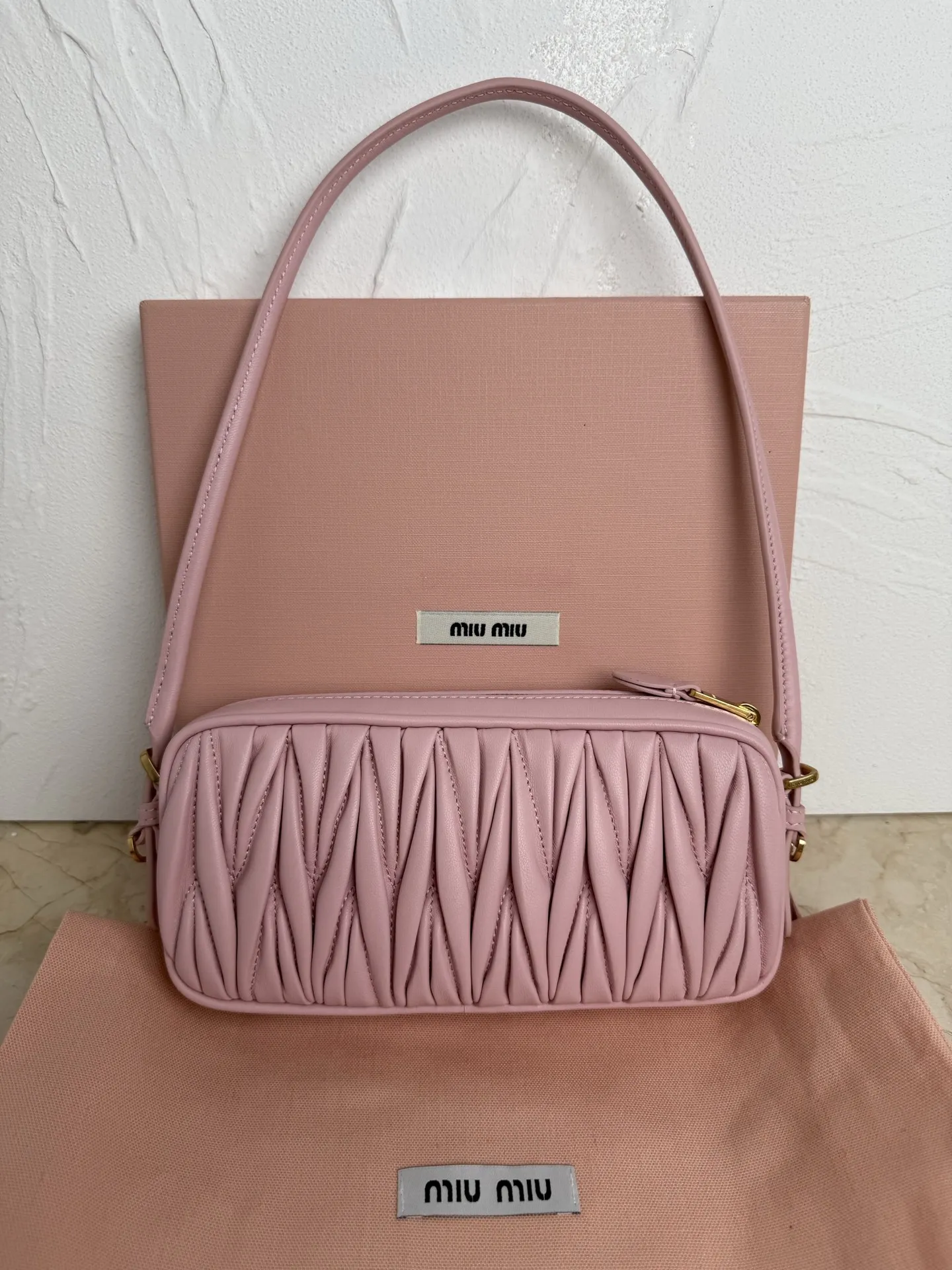 5NE024:Miu M新品限量款麻将包 采用高品质进口小羊皮皮 更显复古时髦 风格简约时尚 为日常衣橱增添百搭之选 以挺括皮革设计体现品牌的年轻叛逆精神 可调节可拆卸皮革肩带 正面标志性皮革雕刻徽标 棉质缎面衬里 性价比超高