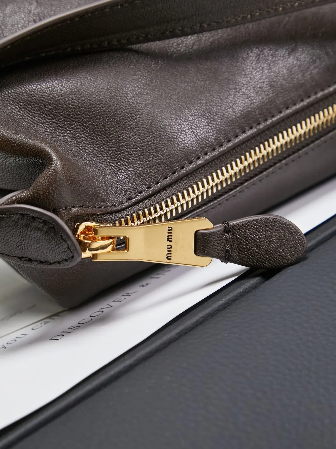 5NE841 新品饭盒包 复古做旧植柔羊皮 正面标志性 Miu金额logo 棉布内里 超轻 容量大 怎么搭都好看 一年四季都适用 尺寸 底长19cm 开口宽25.5cm 高14cm 底部宽10cm