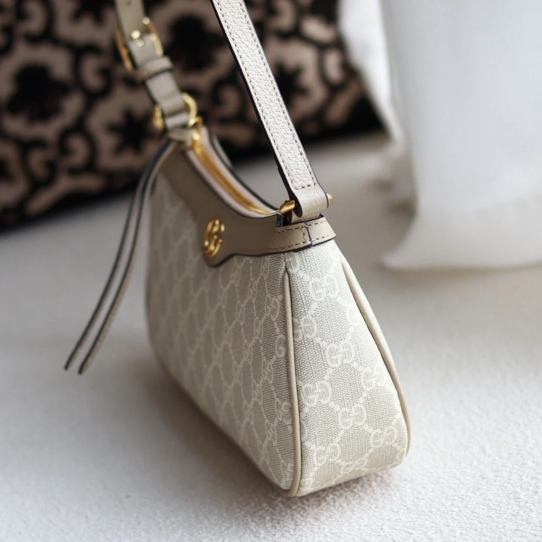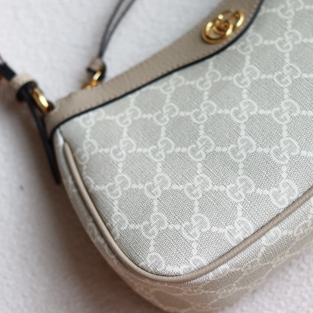 款号735145 新款GG品牌推出的各系列延续了单品不应只流行一季而是随时间流逝历久弥新的设计理念 源自Guccio Gucci首字母缩写的经典交织字母元素继续为新设计注入品牌标识魅力 这款Ophidia系列小号手袋采用历史悠久的GG Supreme帆布材质 配有双G配件