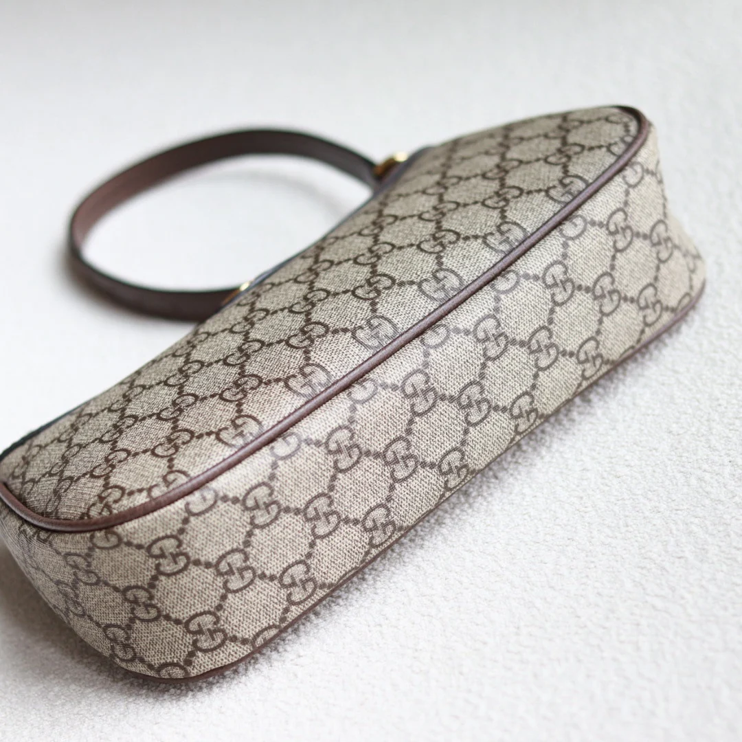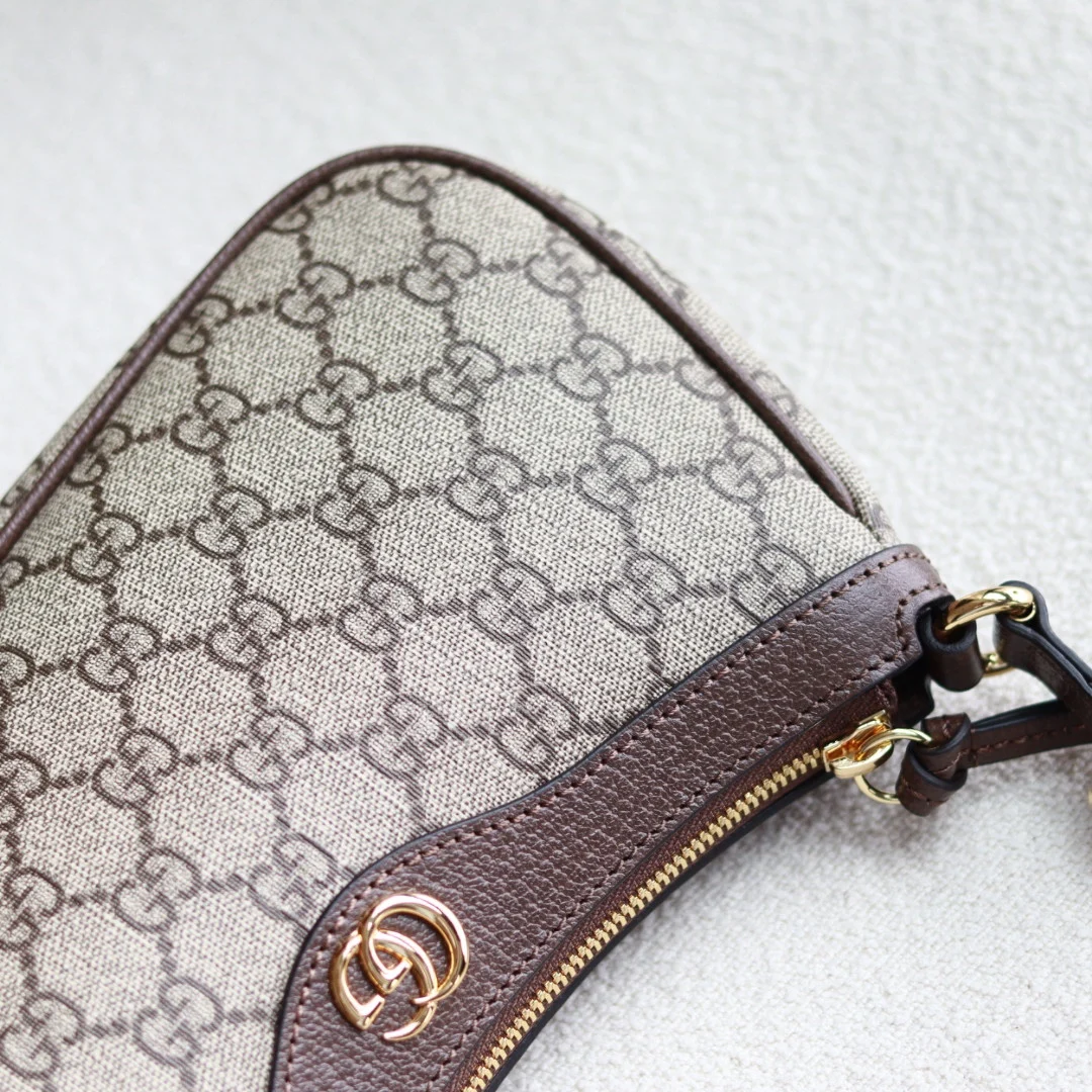 款号735145 新款GG品牌推出的各系列延续了单品不应只流行一季 而是随时间流逝历久弥新的设计理念 源自Guccio Gucci首字母缩写的经典交织字母元素继续为新设计注入品牌标识魅力 这款Ophidia系列小号手袋采用历史悠久的GG Supreme帆布材质 配有双G配件