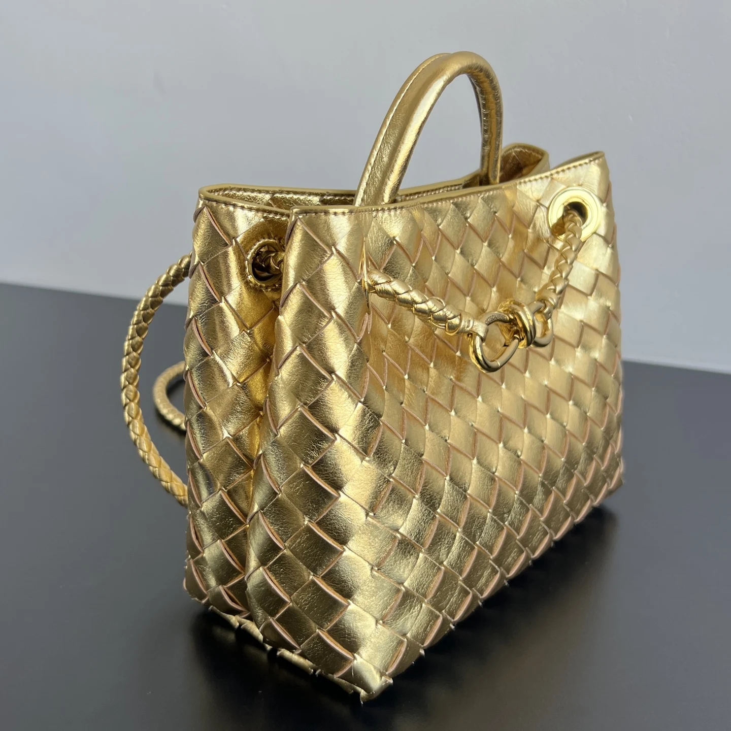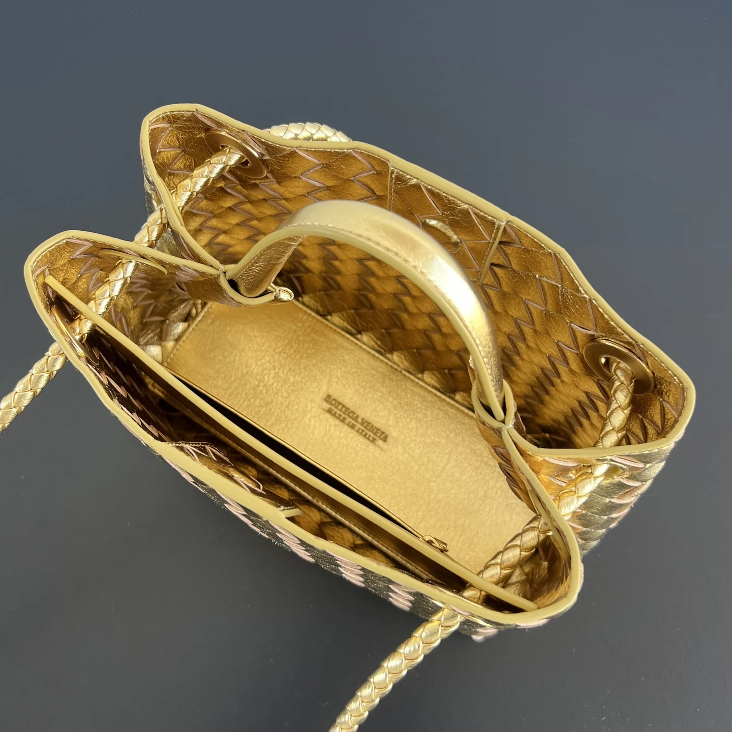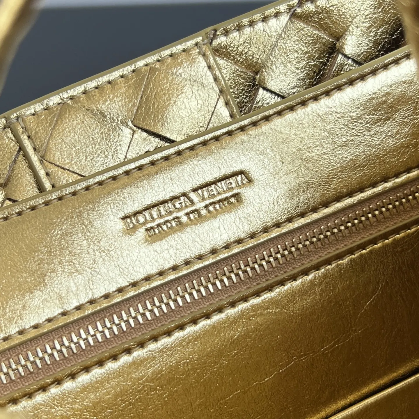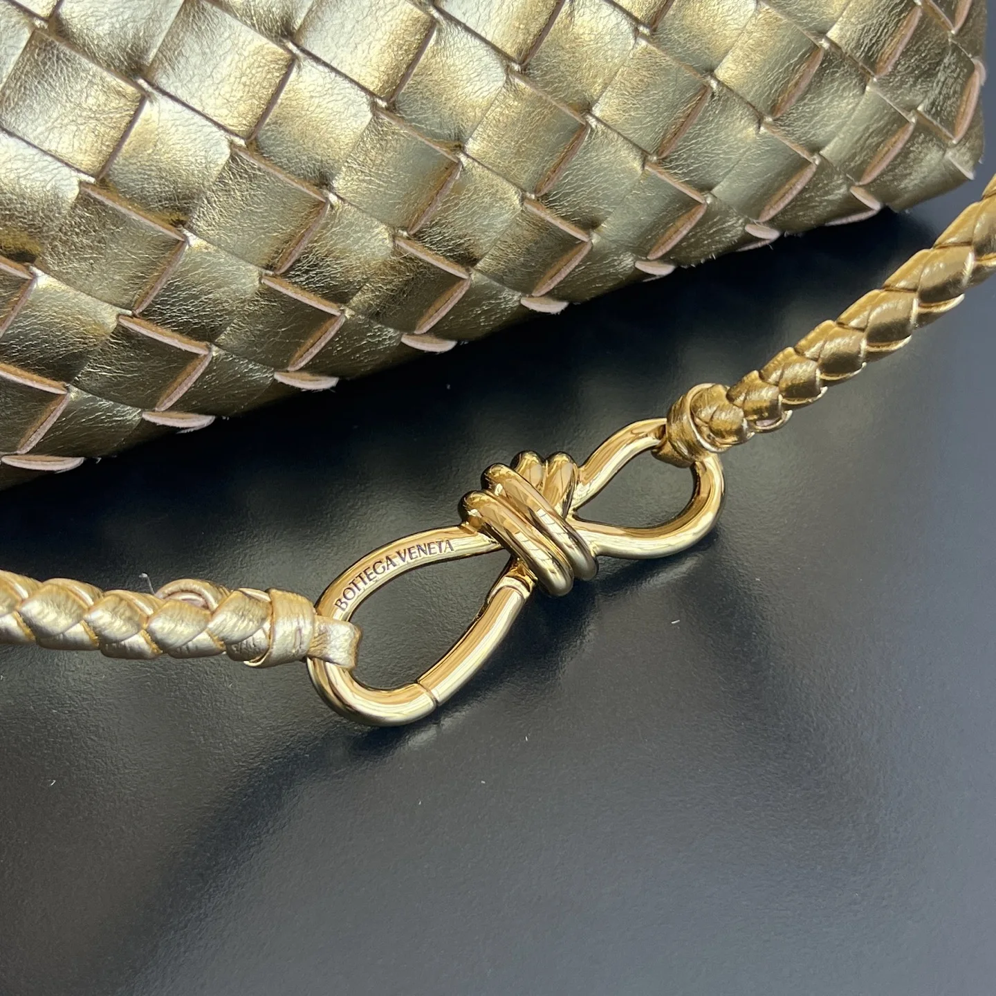 Bottega Veneta Andiamo金色手袋 众多明星同款 743568 是非常正的金色 亮闪闪太迷人啦搭配金色绳结扣 够沉稳也够潇洒整体皆由Nappa羊皮革制成 舒适柔软且富有动感 可滑动的金属绳结扣可以调整肩带 单肩/手伶/斜挎 多种背法 包身容量大 通勤/日常/出游都很合适 这款包分为小号/中号 /大号 总有一款适合你 那就带我走叭尺寸:25x22x10.5