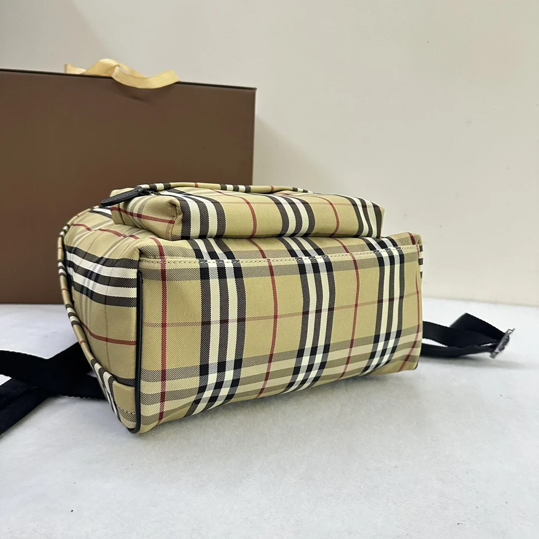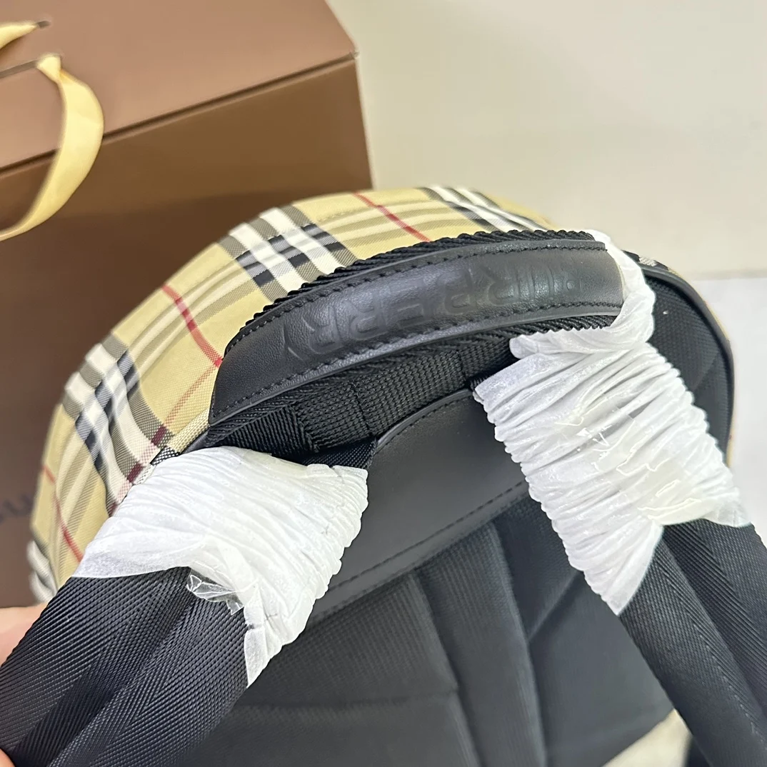 B家典藏米色格纹双肩包.顶部皮革提柄.可调式肩背带.双向拉链开合.2个拉链外袋 内插袋.笔记本电脑隔层.手绘涂漆边缘.光泽金属配件.后侧绗缝裁片.正面饰有 Burberry 立体字母徽标.顶部提柄 可调式肩背带.2个拉链外袋 1个拉链内袋.笔记本电脑隔层.双向拉链开合.光泽金属配件.后侧绗缝裁片.30.5 x 14.5 x 42.5cm