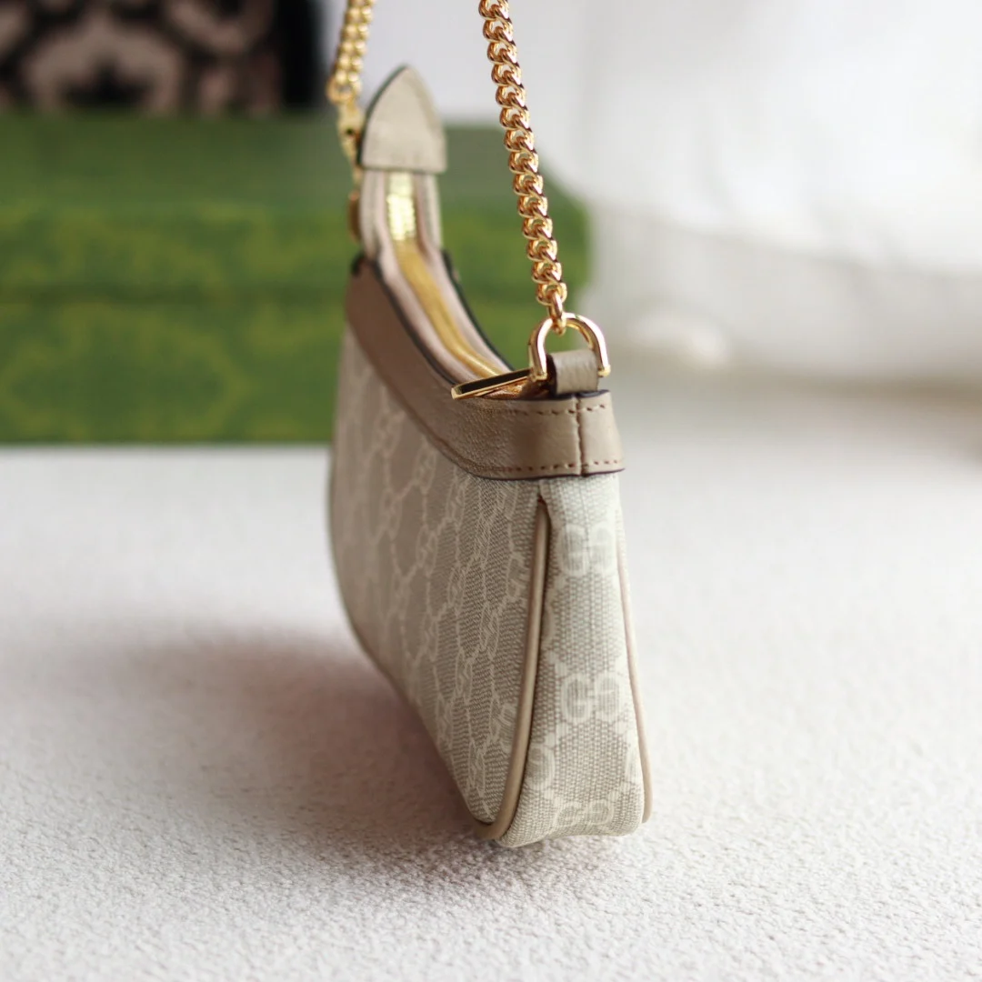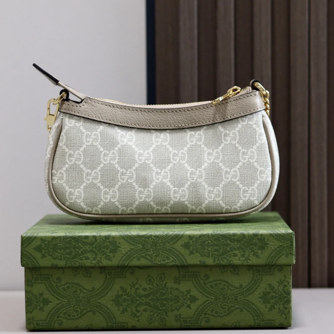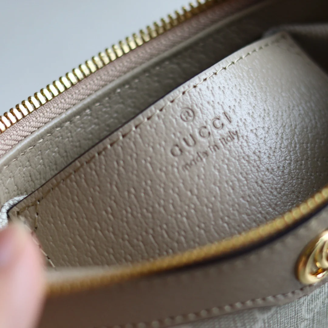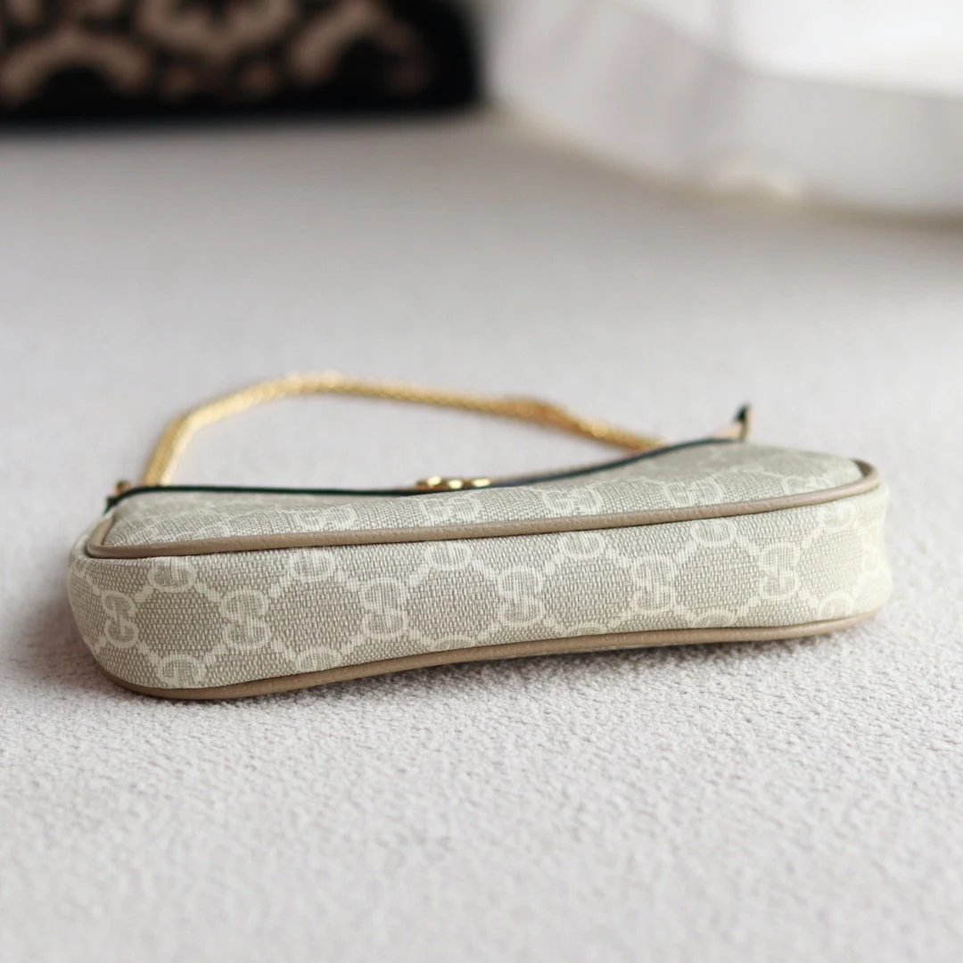 盒子包装 Ophidia系列迷你手袋白色老花/燕麦GG皮革 棉麻里衬 款号764960燕麦 尺寸10X19X3