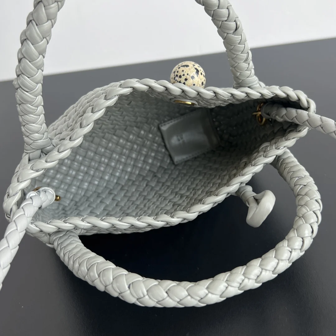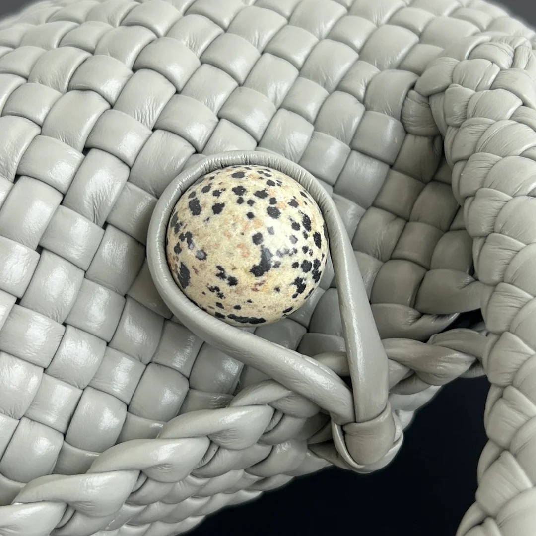 Bv 最顶级工艺的迷你Tosca斜挎/手提包 776755 圆斑点石的搭配 实物像艺术品一样 全球限量级包包 殿堂级艺术与高级手工结合 体现了独一无二的编织技法 是非常低调奢华有品味的一只 整体运用经典cabat双面细编工艺 手提把处也皆是全皮革编织细节 掀盖顶部的金色圆球与皮革环扣 完美传达精湛珠宝工艺 包体非常轻盈/舒适/高级 真正的安静的奢华 不显山露水 却有沉着从容的美尺寸 20x15.5x7 提手高度 8.45cn