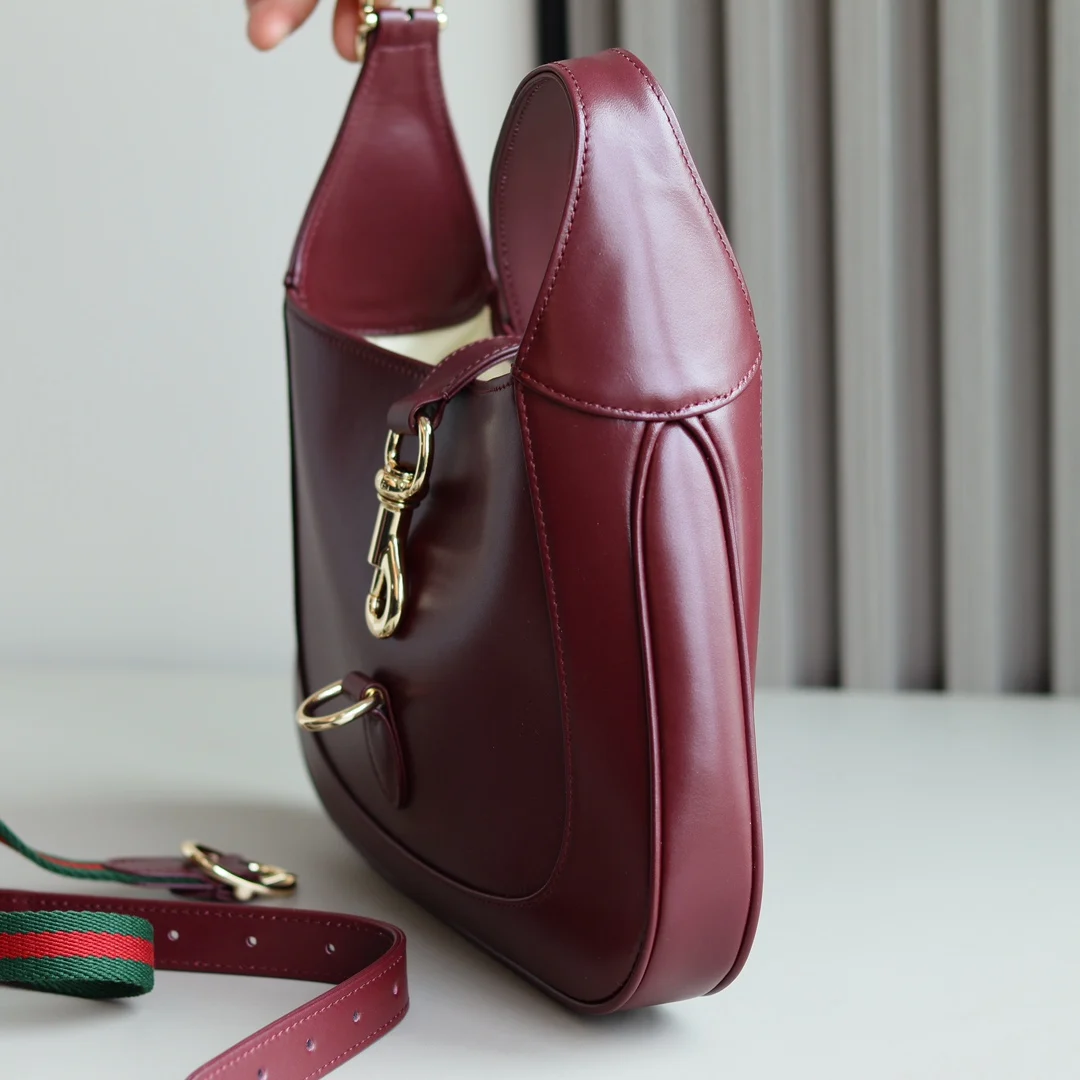 尽展品牌经典肩背包的精湛工艺 新月造型和时尚设计浅金色调配件 皮革徽章拉链头 提手 18厘米高 可拆卸织带肩带 52厘米高 钩扣开合 重量 约0.4千克