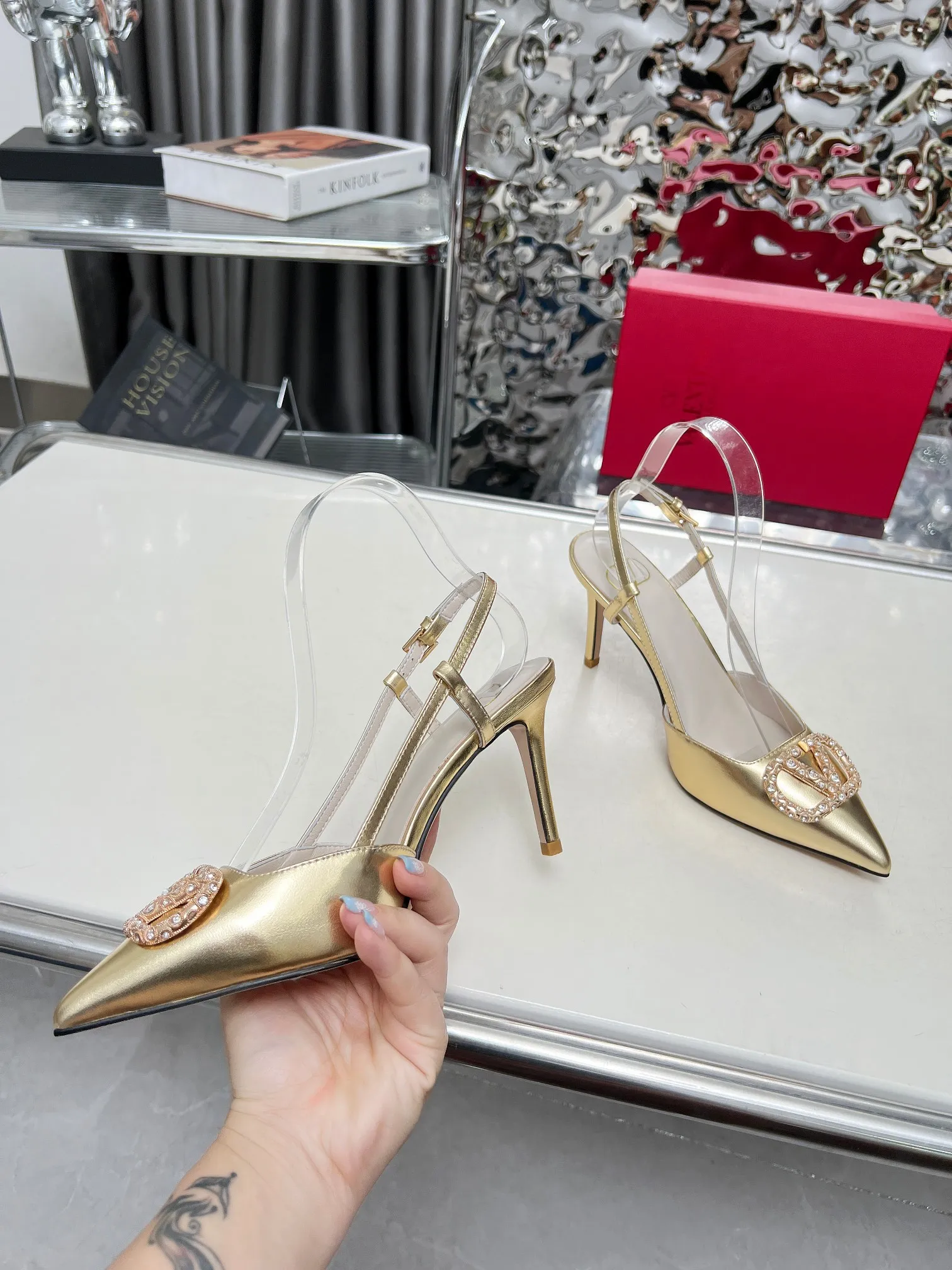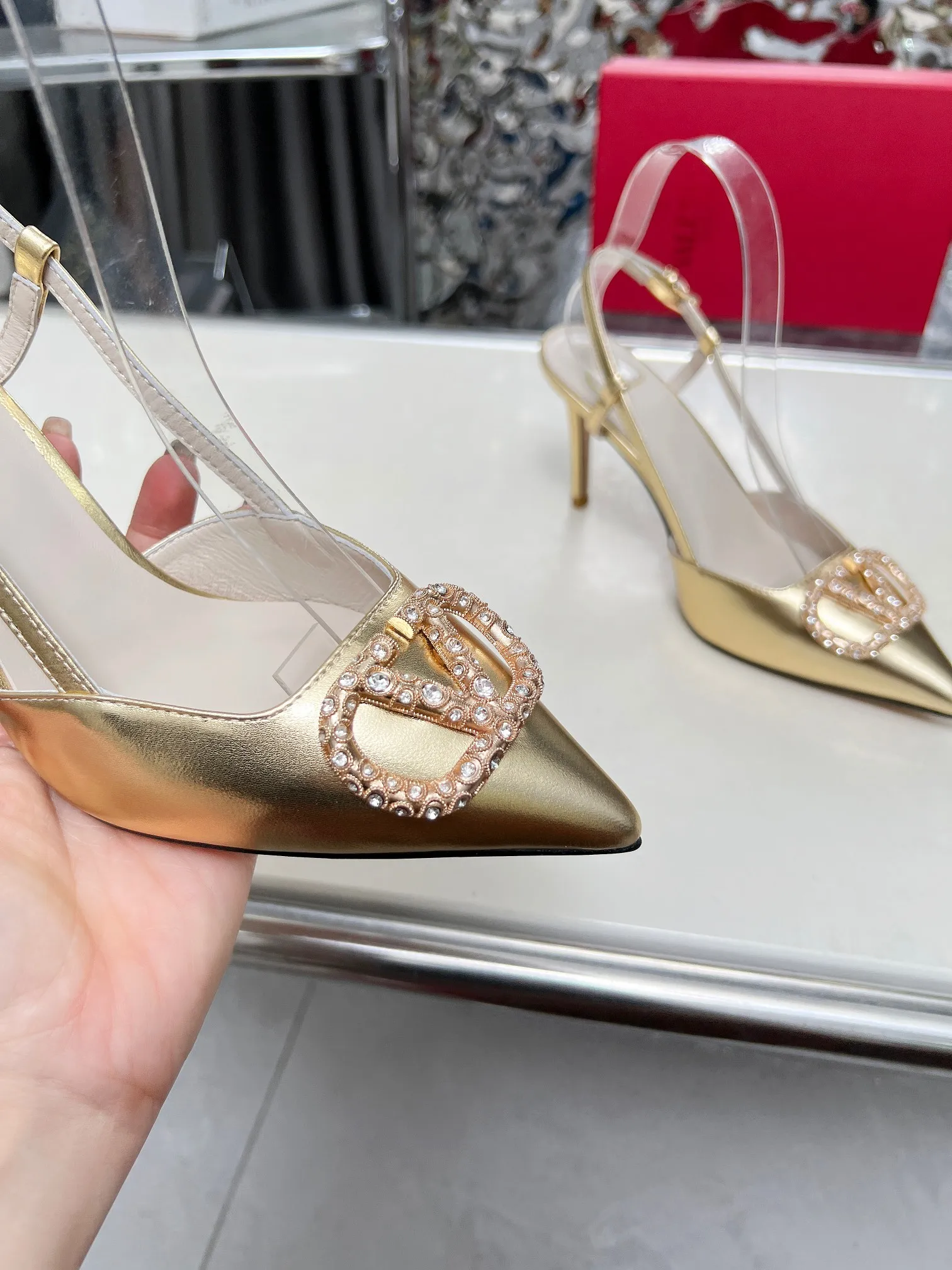 华伦天奴 时装高跟 新款配钻凉鞋8厘米.实拍图 码数35-40 可以订做41-42 头层软牛皮 内羊皮