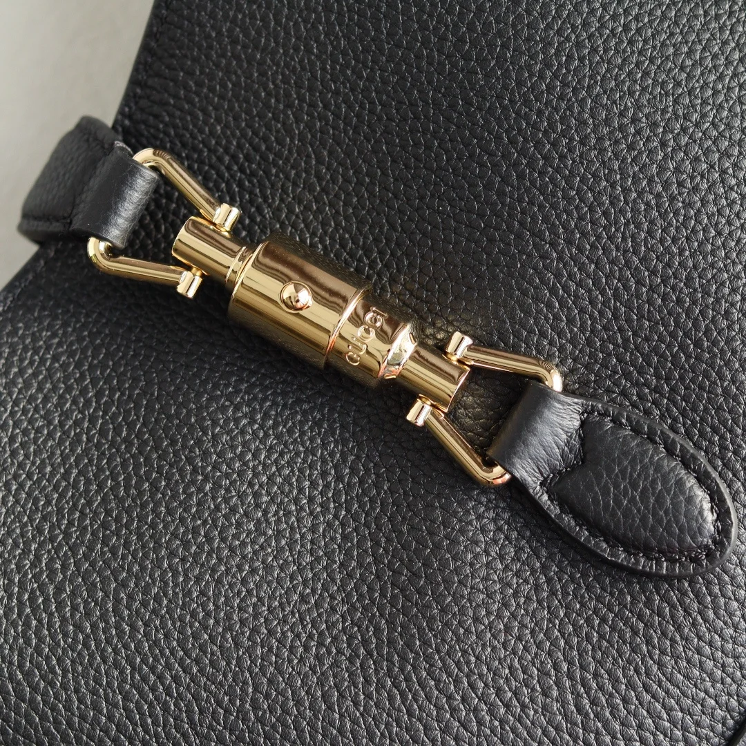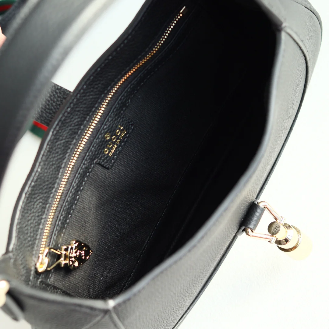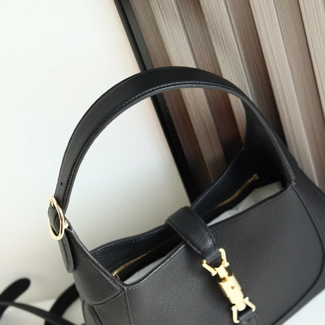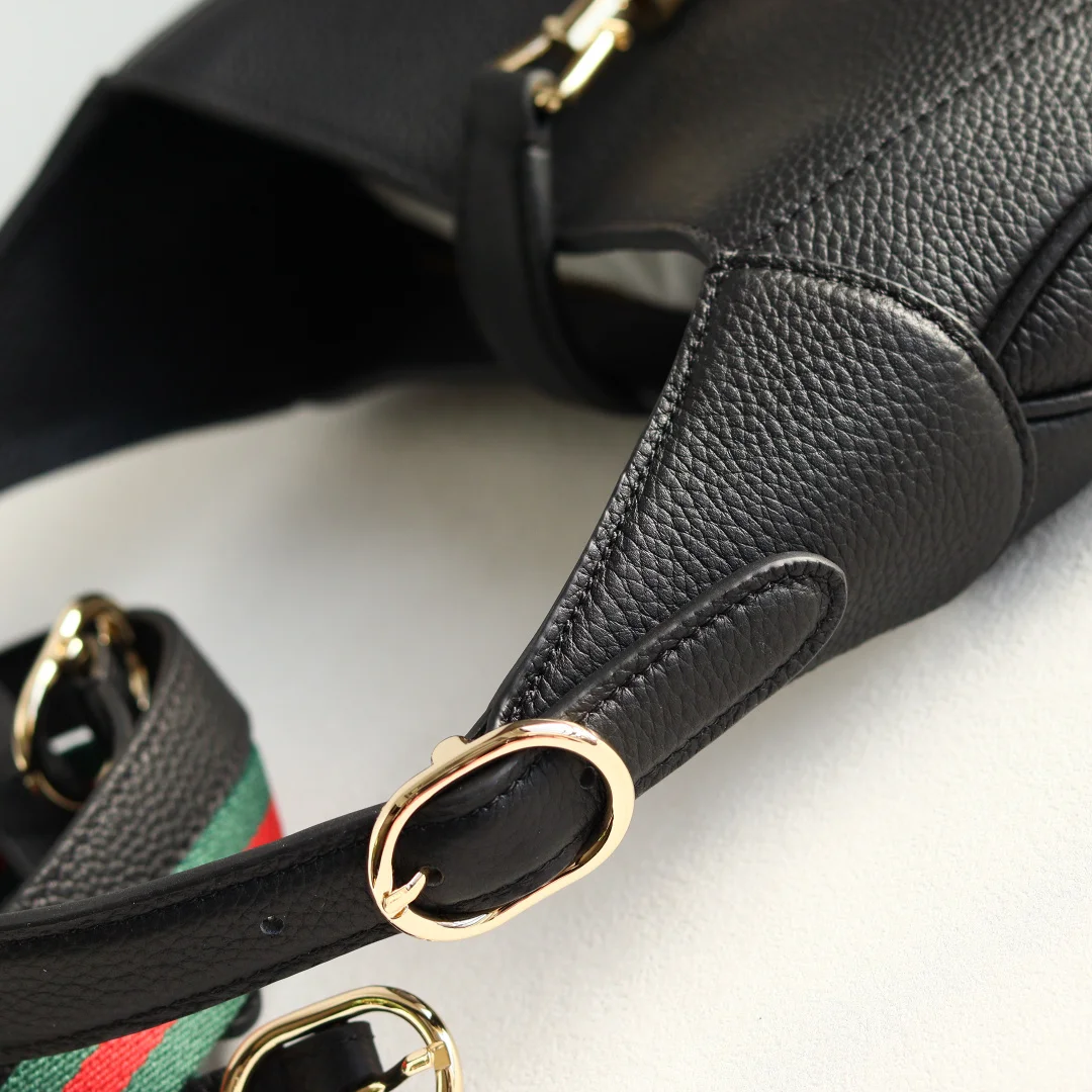 2024秋冬系列焕新演绎Gucci Jackie 1961系列肩背包 采用精细古驰安可拉红(Rosso Ancora)皮革制作 搭配全新浅金色调推入式锁扣开合 彰显品牌经典手袋的精湛工艺 新月造型和流畅廓形这款小号肩背包搭配皮革肩带 另附红绿织带肩带 成就多样穿搭选择