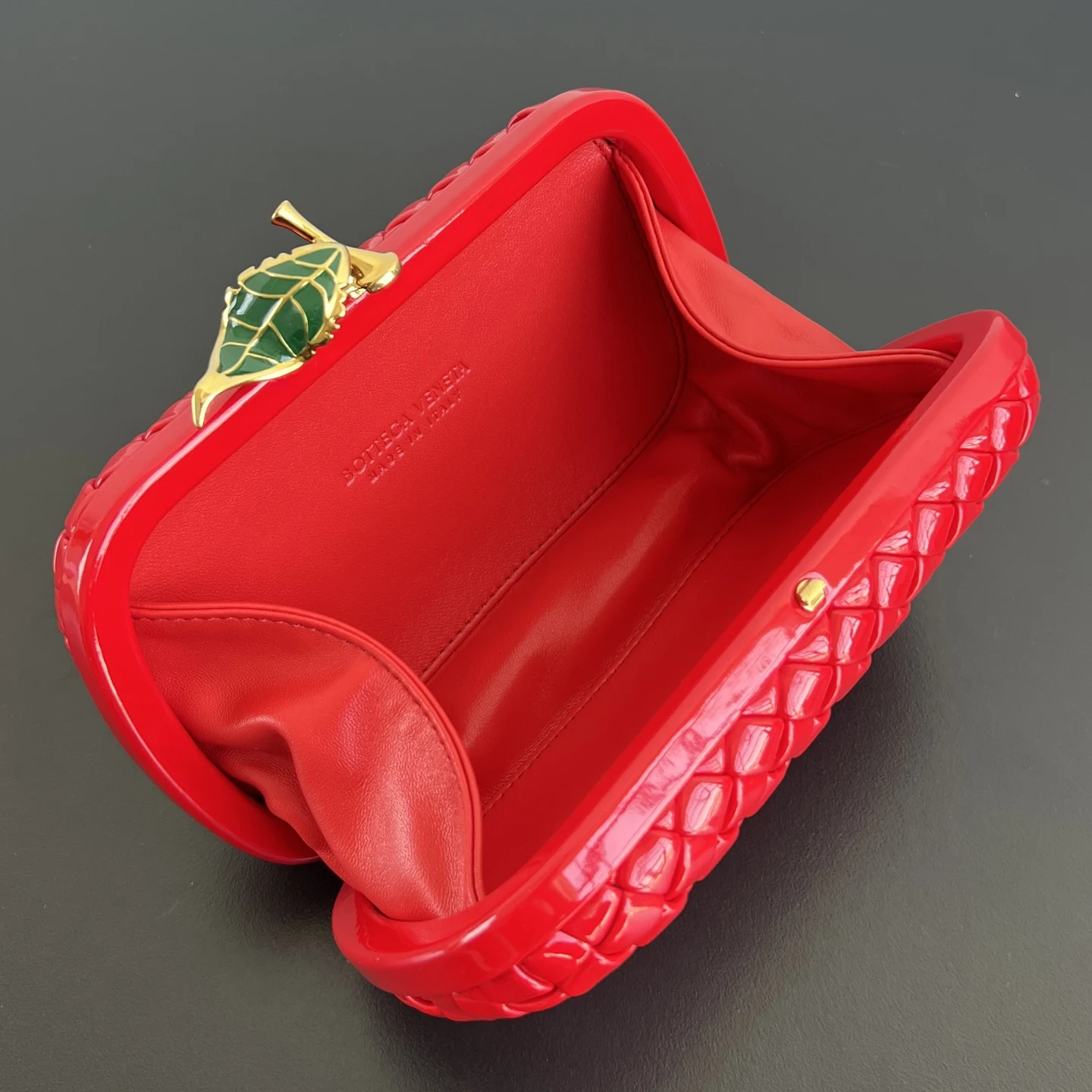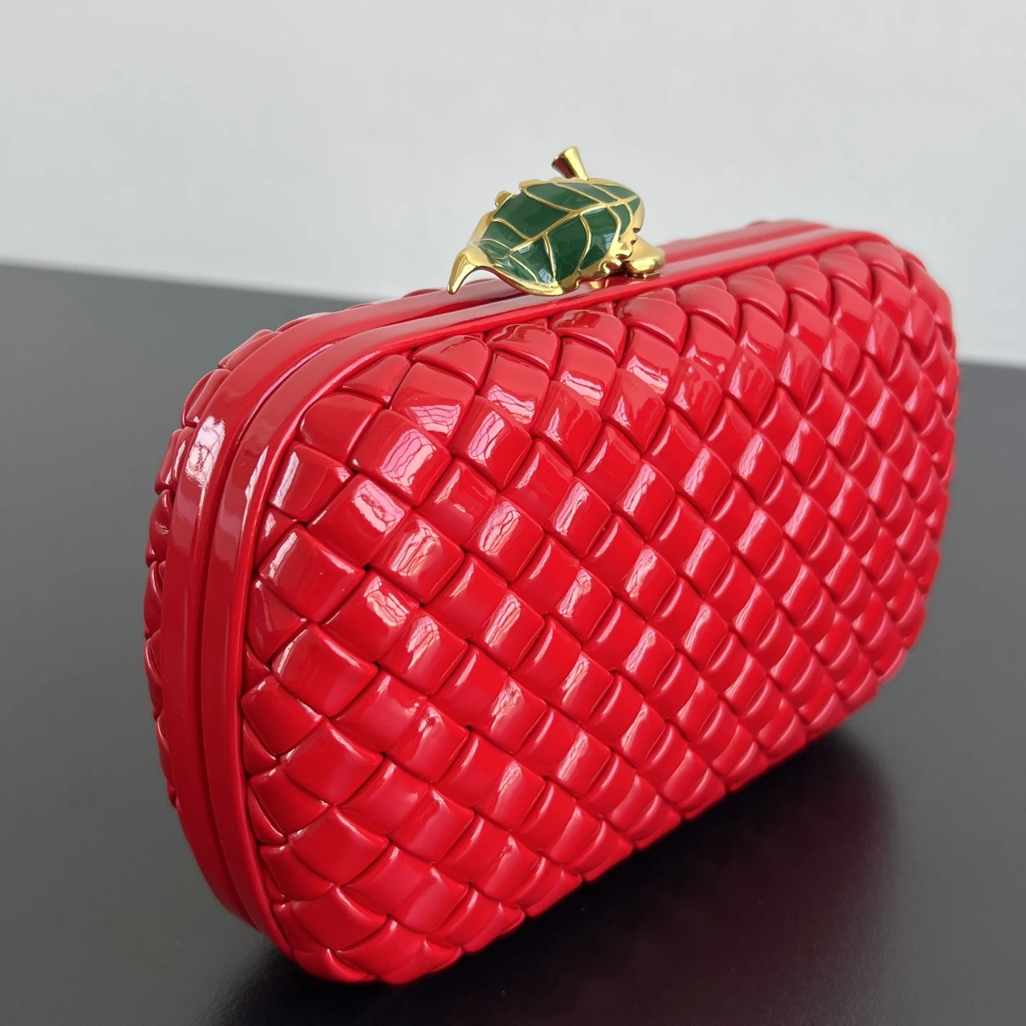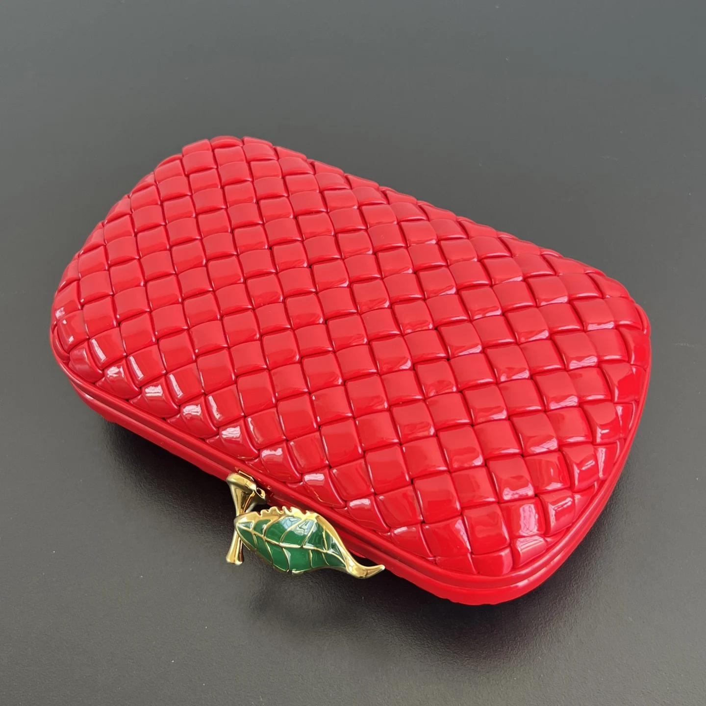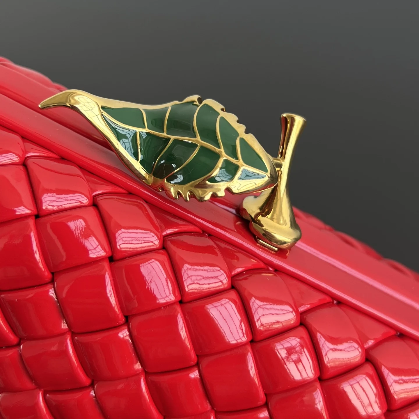 Bv Kont 826183 亮面漆皮编织皮革搭配立体叶子造型 有种回家途中路过花店 不经意间营造的浪漫氛围开口的设计使用黄铜材质绿叶点缀堪称工艺品的晚宴包 绿叶的纹理都清晰可见 摸上去凹凸有致 阳光下散发出淡淡的光泽 每一个细节都透露着精致与高级谁能拒绝这么浪漫又甜美的设计呀尺寸 20x12x5.5