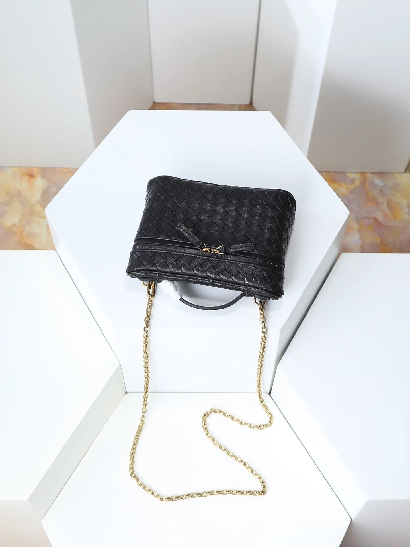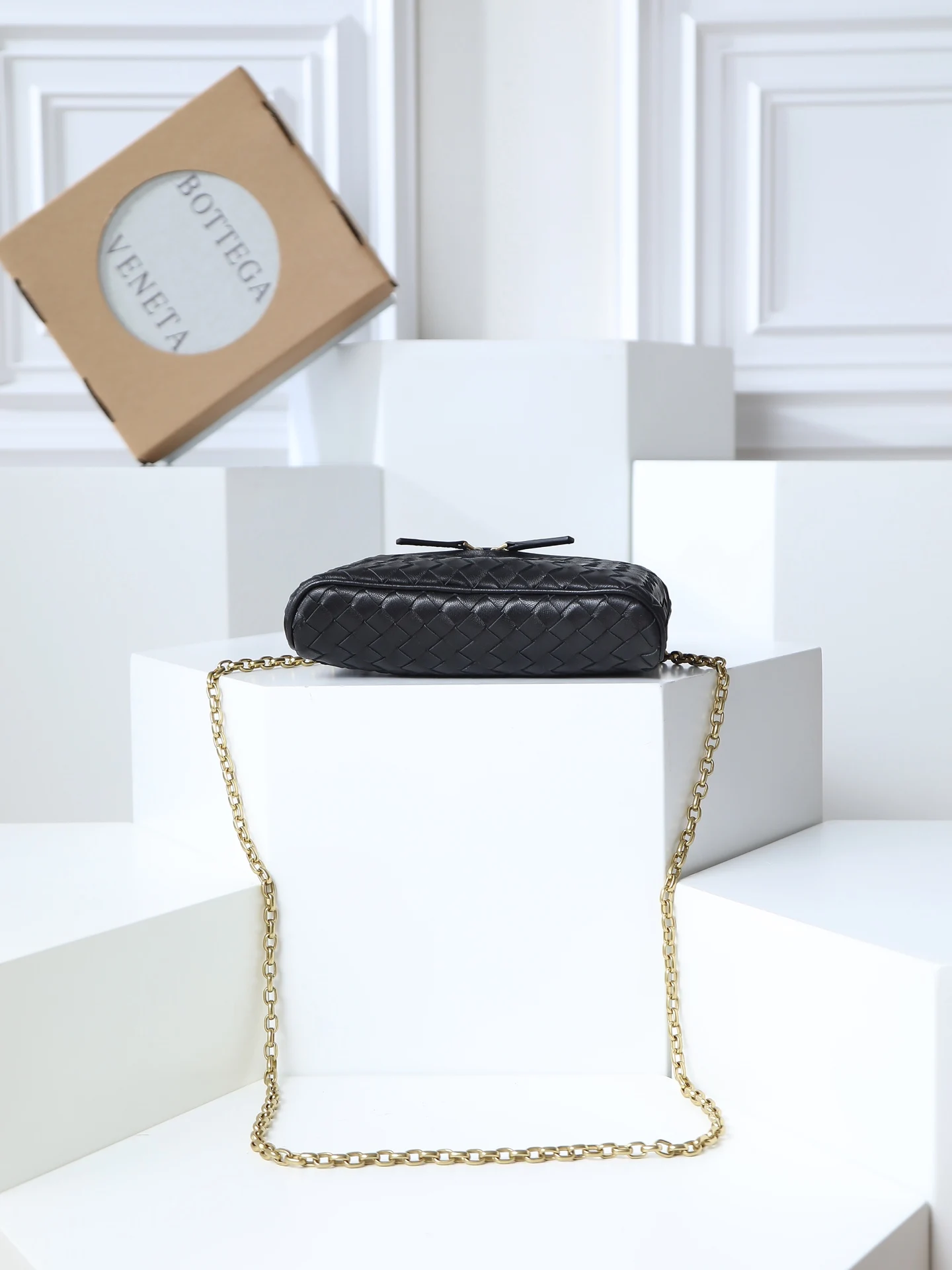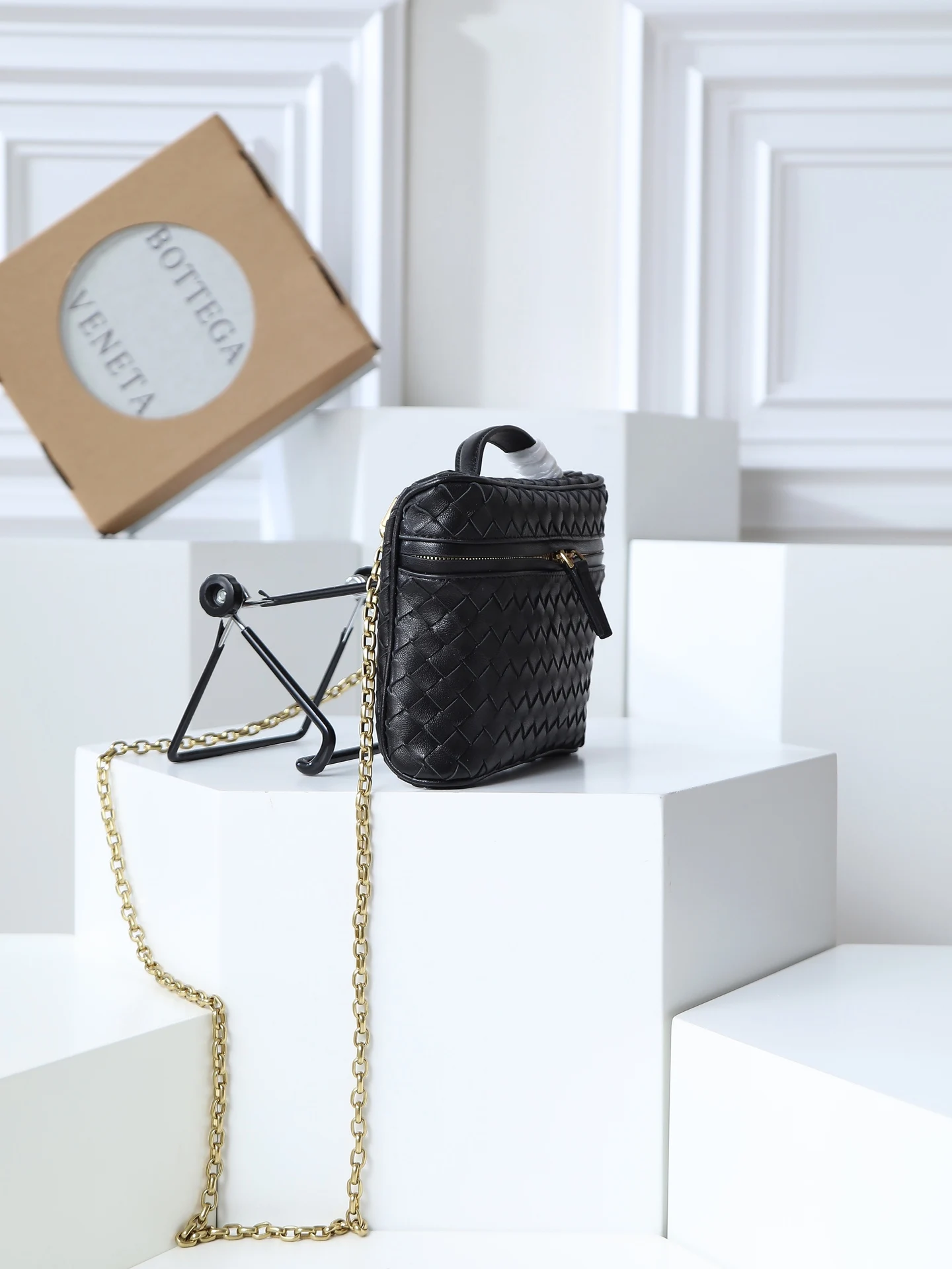 BOTTEGA VENETA2025新品女士小号Soft Vanity包 采用经典Intrecciato编织技法 传承经典之作 环扣设计轻盈的金属链条让您搭配起来高级感满满 链子 能卸 当也行哦 参加活动妥妥的优雅小包 包身整体柔软如棉花糖般 可轻易揉捏 呈现皮质强劲的韧度与高级感 羊皮的触感实在太让人惊艳捏起来治愈极了 对小包完全没有抵抗力啊