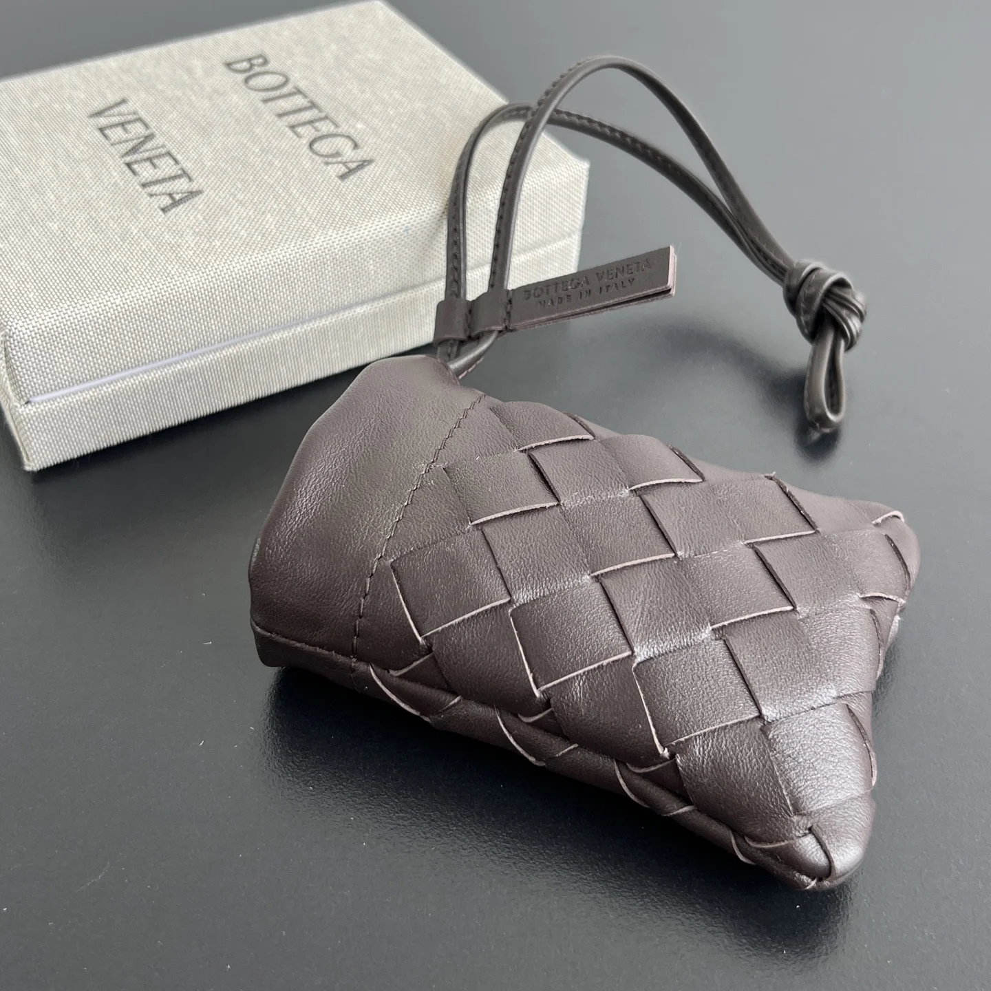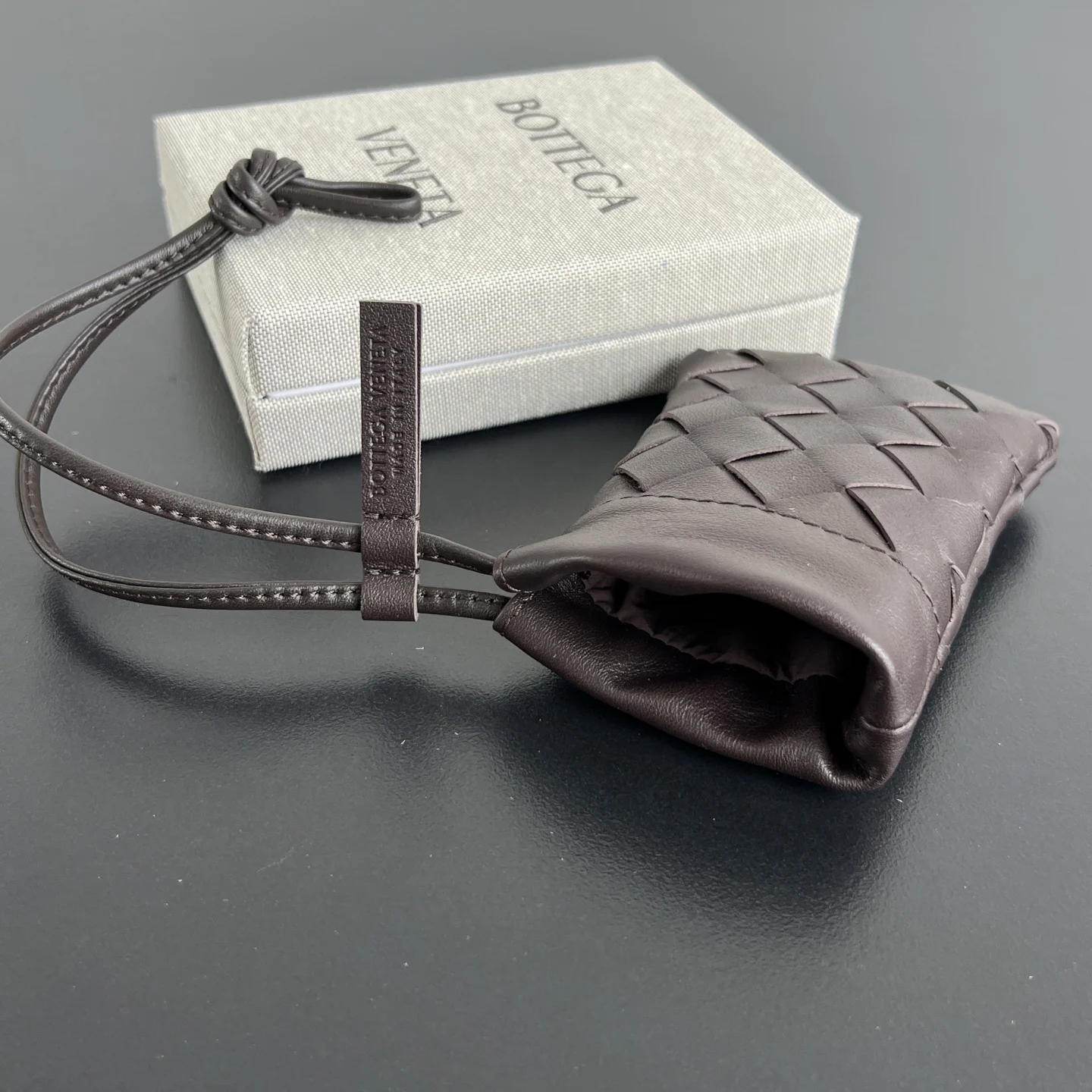 Bv新品 编织卡包挂饰 843903 它不是普通的挂饰 是可以装卡片和各种小物件的精致包挂 经典编织工艺 羊皮纹理细腻柔软抽绳束口开合 内里装门禁卡或耳机日常使用超便利挂在包包上 大包抱小包 叠叠乐 的搭配 点缀品牌的标志性元素 即可爱又实用 是日常吸睛搭配神器尺寸 11x8.5