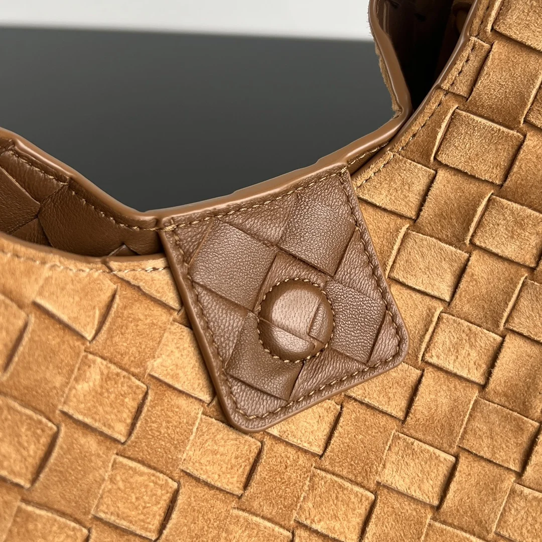 BV新品 麂皮Campana手袋 844249 经典回归的Campana手袋复古有魅力 灵感来源04年的经典馆藏每一根皮条都是用两层Nappa小羊皮制成 展现着内外全编织的极致工艺 包身超级轻盈 采用皮革系带开合 配有隐藏式磁扣 拥有两种形态可切换 容量大到惊人 不管是日常出行 还是旅行放各种小物 都能轻松搞定 通勤约会两手抓 随手拎出法式慵懒 尺寸 33x20x16.5