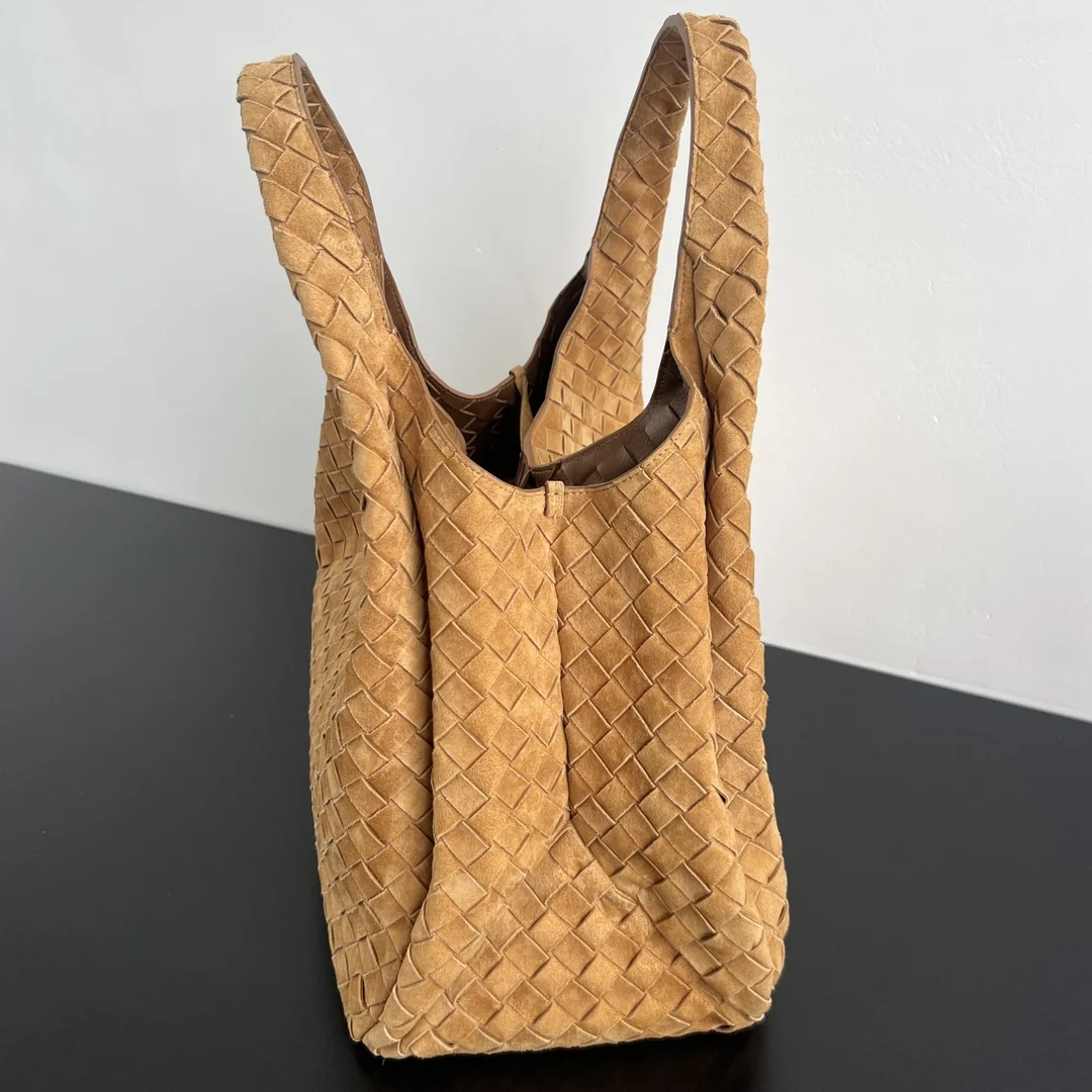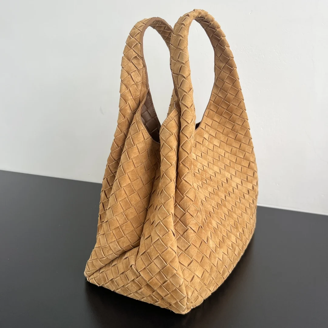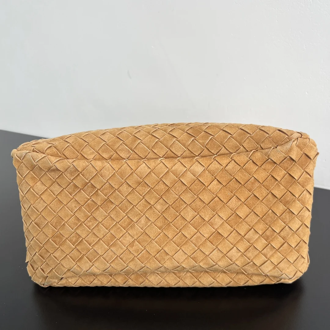 BV新品 麂皮Campana手袋 844250 经典回归的Campana手袋复古有魅力 灵感来源04年的经典馆藏每一根皮条都是用两层Nappa小羊皮制成 展现着内外全编织的极致工艺 包身超级轻盈 采用皮革系带开合 配有隐藏式磁扣 拥有两种形态可切换 容量大到惊人 不管是日常出行 还是旅行放各种小物 都能轻松搞定 通勤约会两手抓 随手拎出法式慵懒 尺寸 39x25x18.5