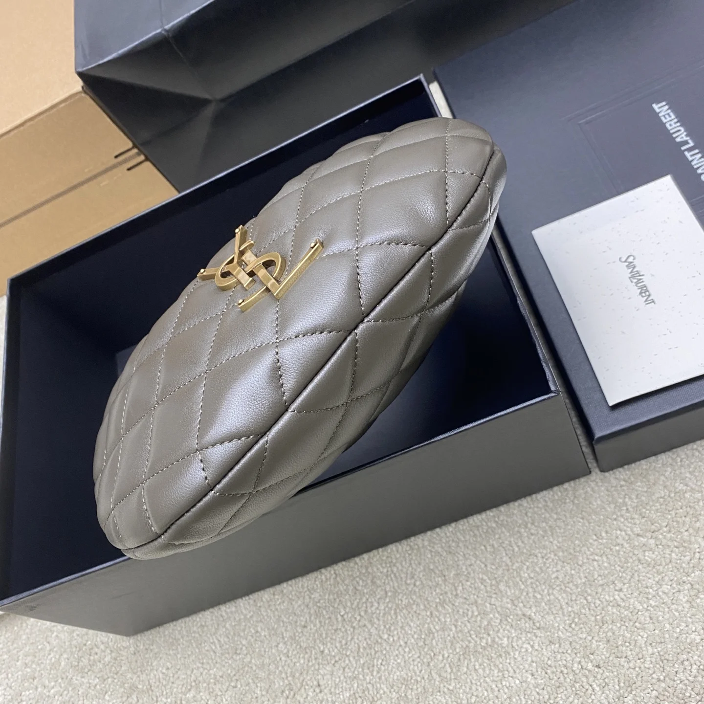 麝香绿羊皮/金ICARE baby纳帕羊皮手袋 备受瞩目的可颂形状包包闪亮登场 标志性的金属logo点缀其中 完美结合复古与现代感 堪称本季最令人期待的It Bag之一 无论是日常出街还是夜晚派对 这款包都能轻松驾驭