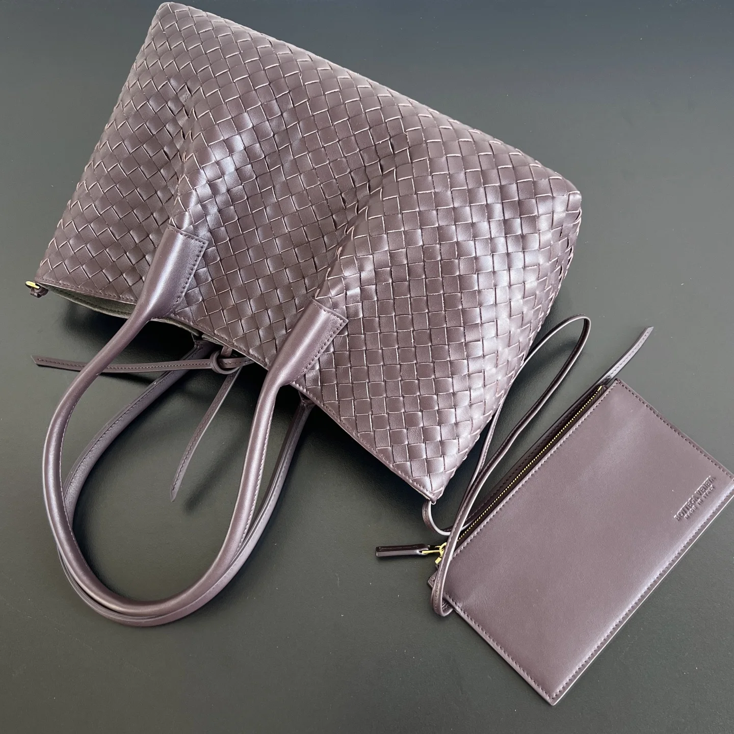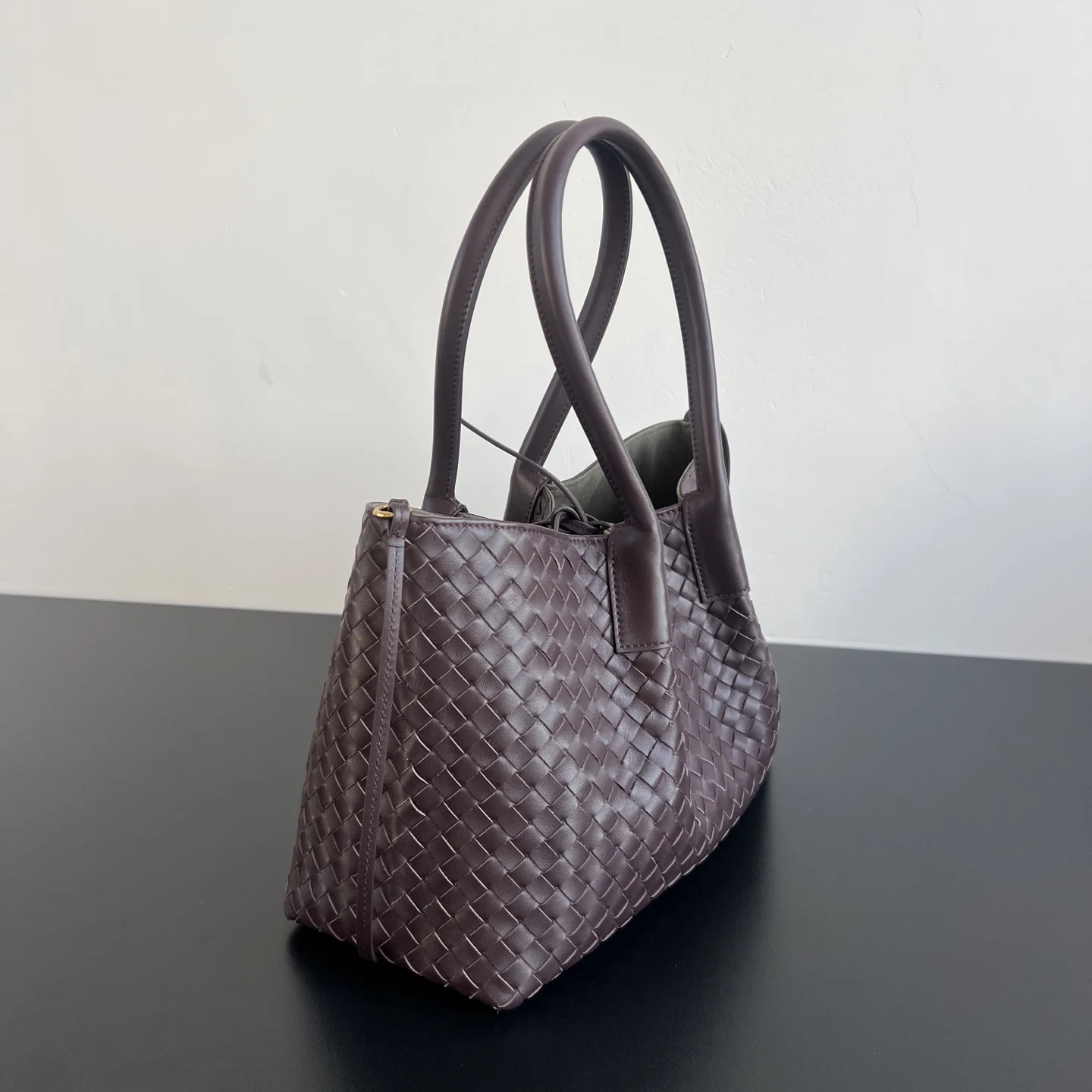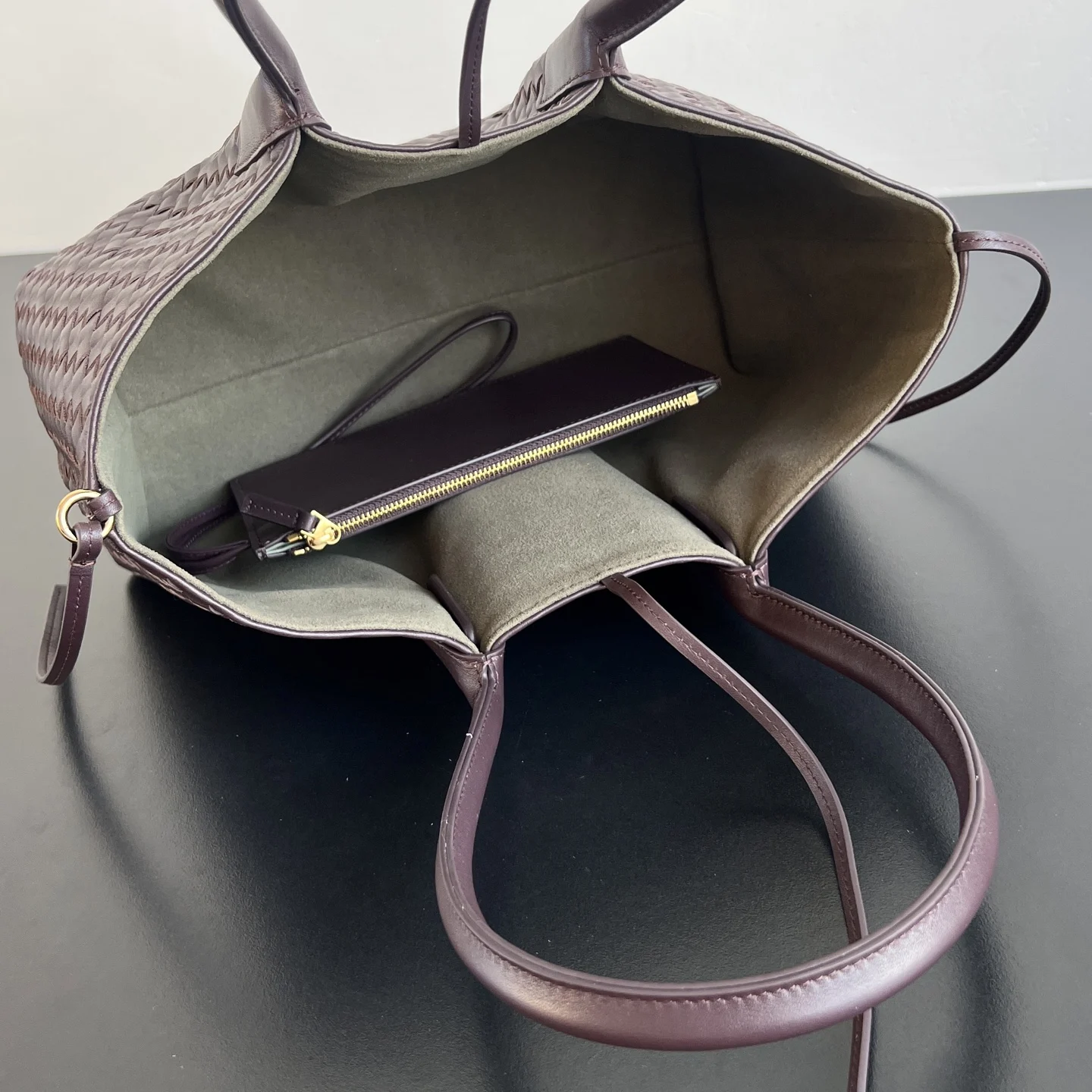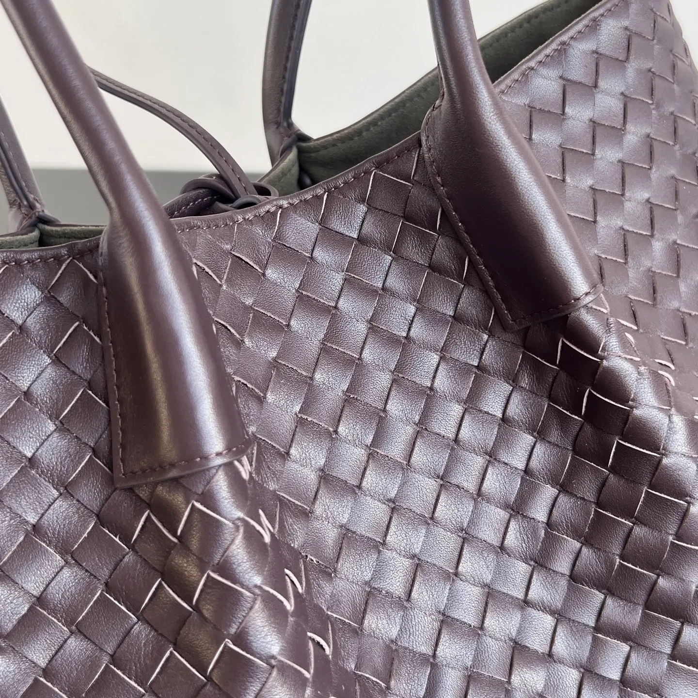 Bv 2025早春新款 854371 Pinacoteca中号托特手袋 采用了BV标志性的编织工艺 内有翻转后是光滑的鹿皮内衬 可双面使用 兼顾了时髦与实用性 手袋上的四根皮带也体现了独特的个性元素 精致且创意 极简的廓形和轻盈色调 低调高级外观 无论是肩背还是手提都十分适合 P1040Size 34*20*14cm