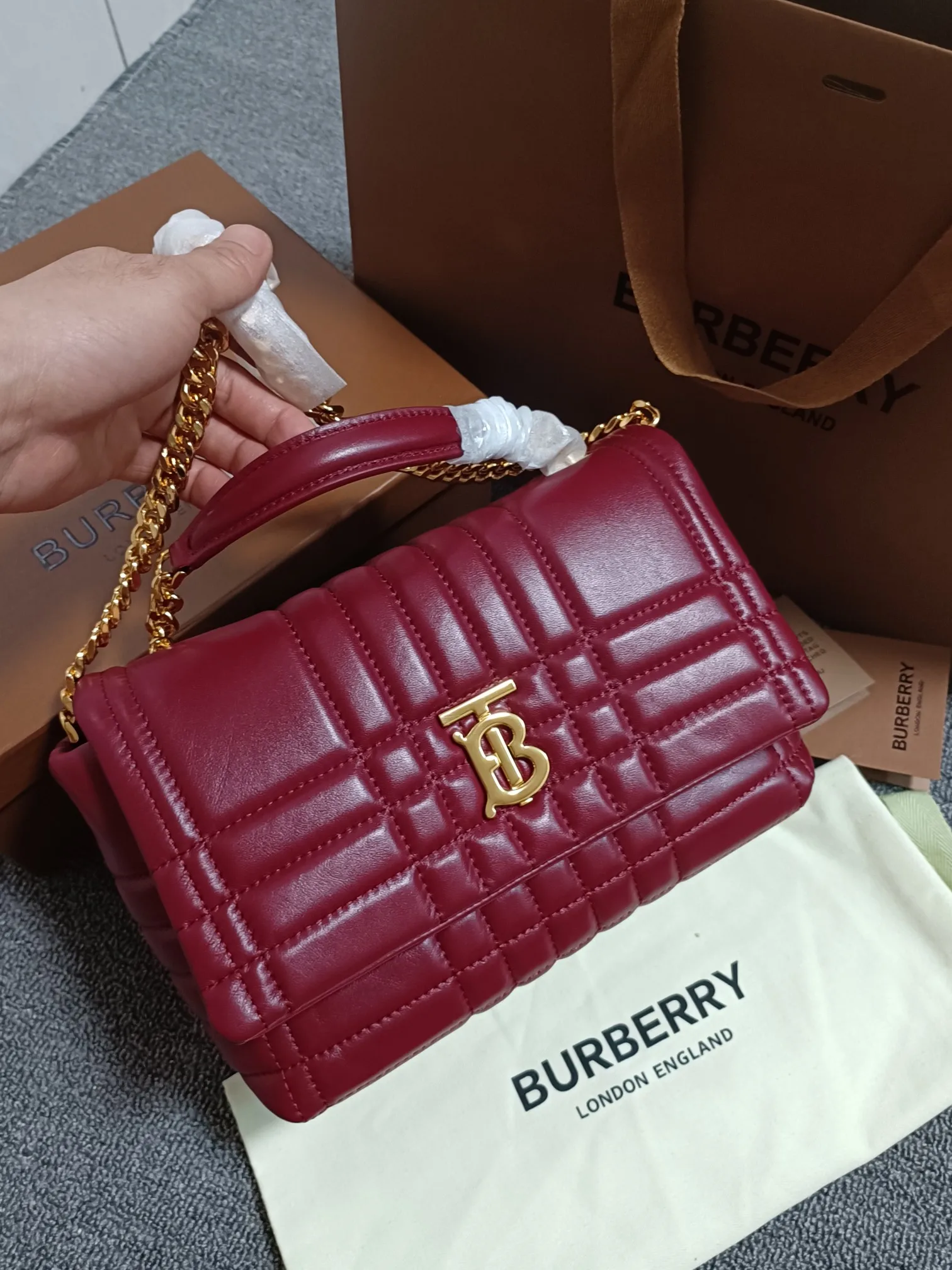 B家新款选用意大利鞣制羔羊皮材质匠心打造 装饰Thomas Burberry专属标识 搭配亮泽的链条背带 可肩背 或使用顶部提柄缔造手拿包造型 编号 90262 尺寸 26 - 10 - 18cm 85486080