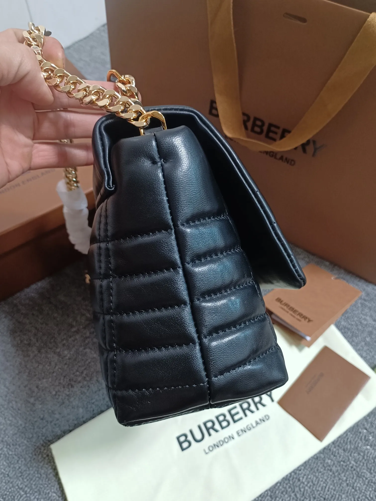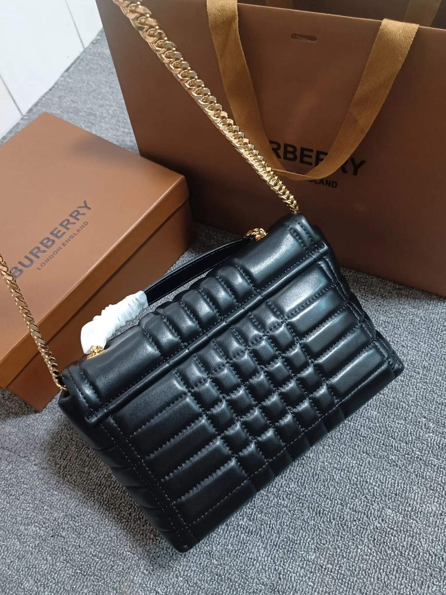 B家新款选用意大利鞣制羔羊皮材质匠心打造 装饰Thomas Burberry专属标识 搭配亮泽的链条背带 可肩背 或使用顶部提柄缔造手拿包造型 编号 90262 尺寸 26 - 10 - 18cm85486080