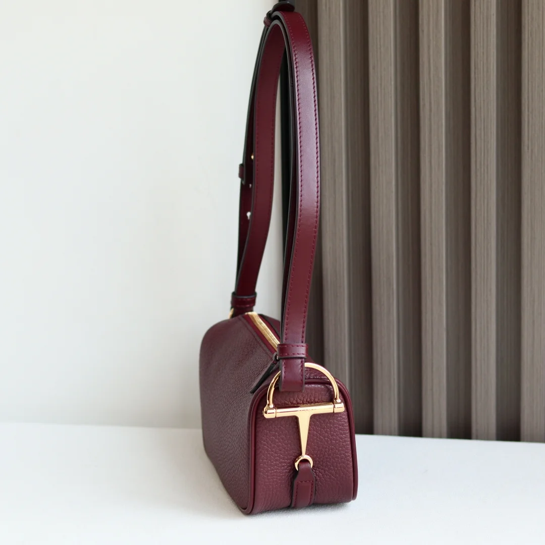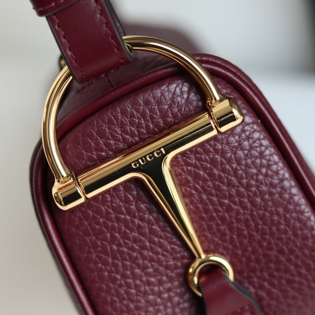 品牌以当代视角演绎标志性元素 焕新呈现Gucci半马衔扣设计 选用贴合身形的柔软牛皮革为经典配件注入新意风尚这款迷你手袋以粒面软皮匠心打造 侧面饰有半马衔扣细节