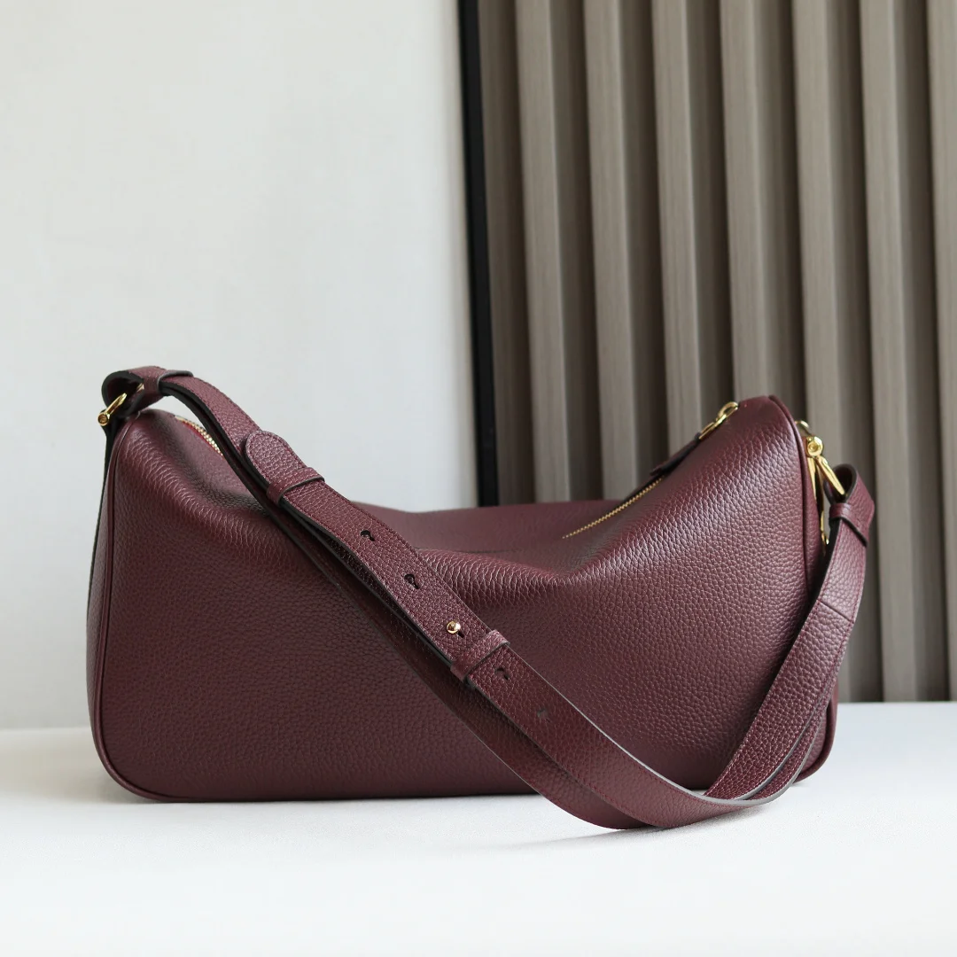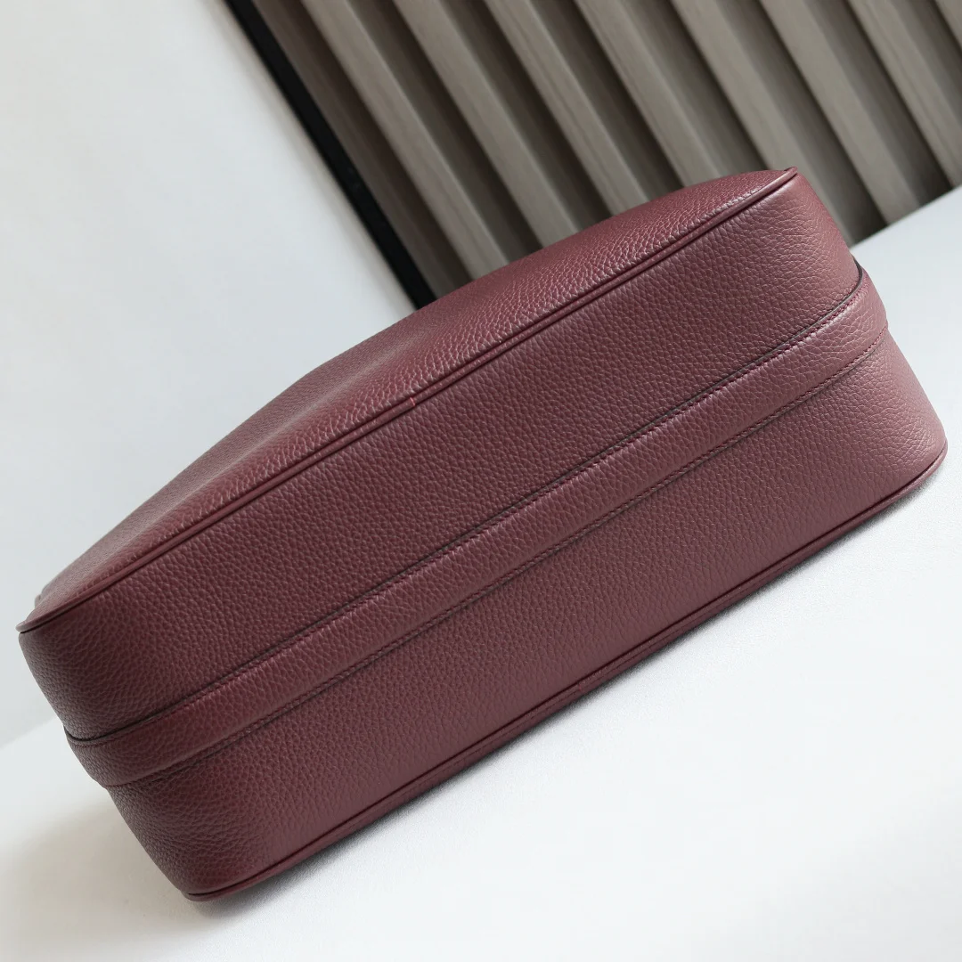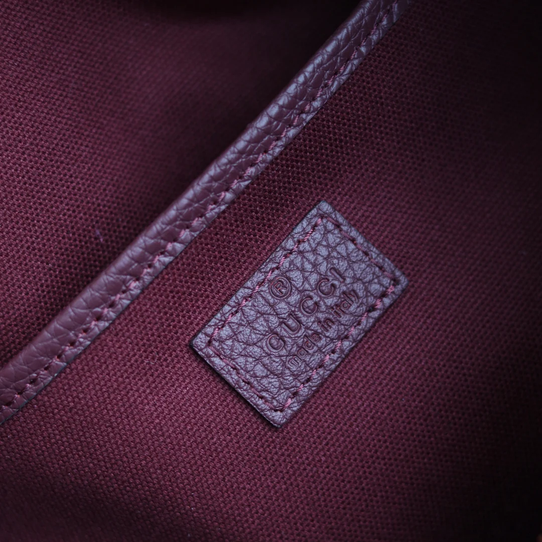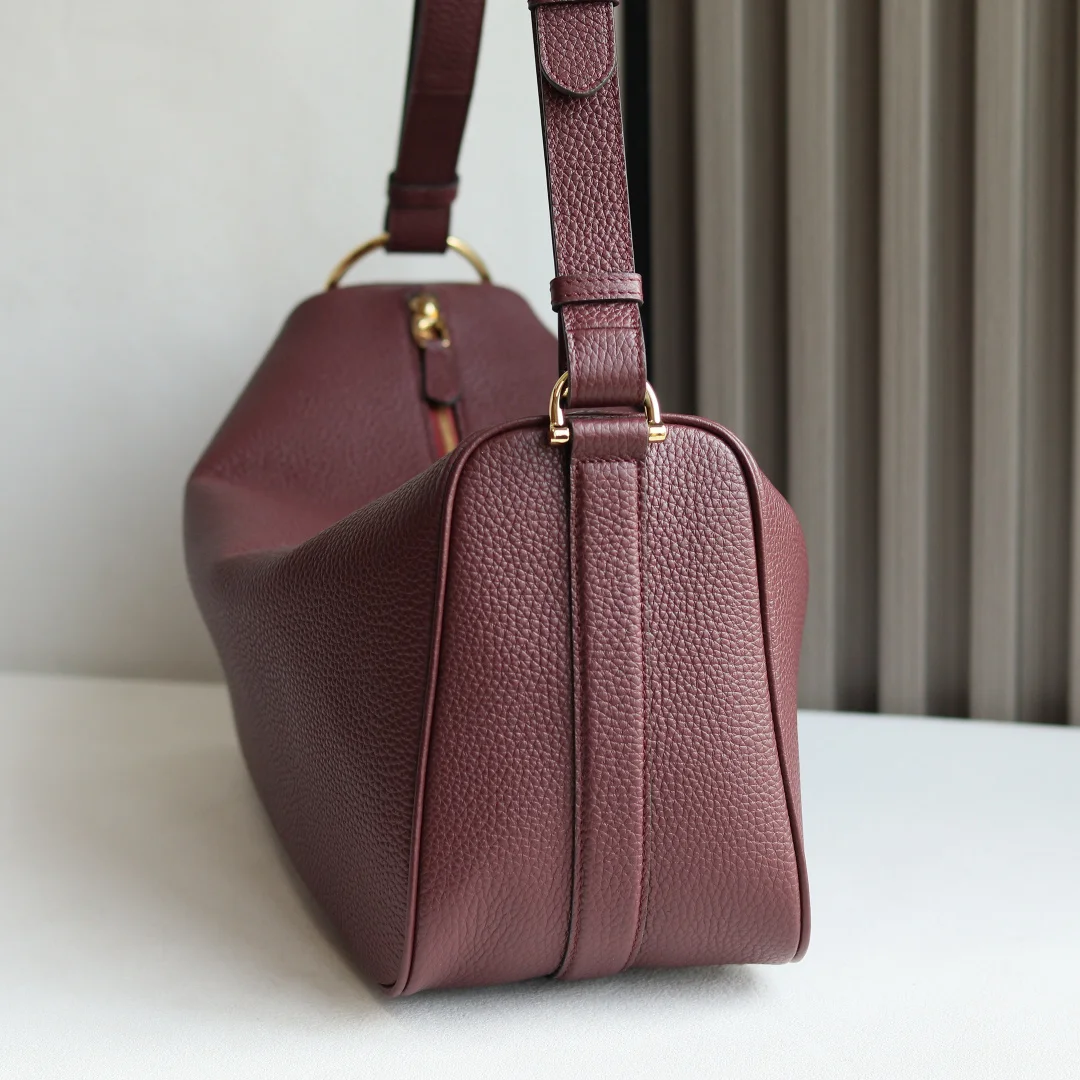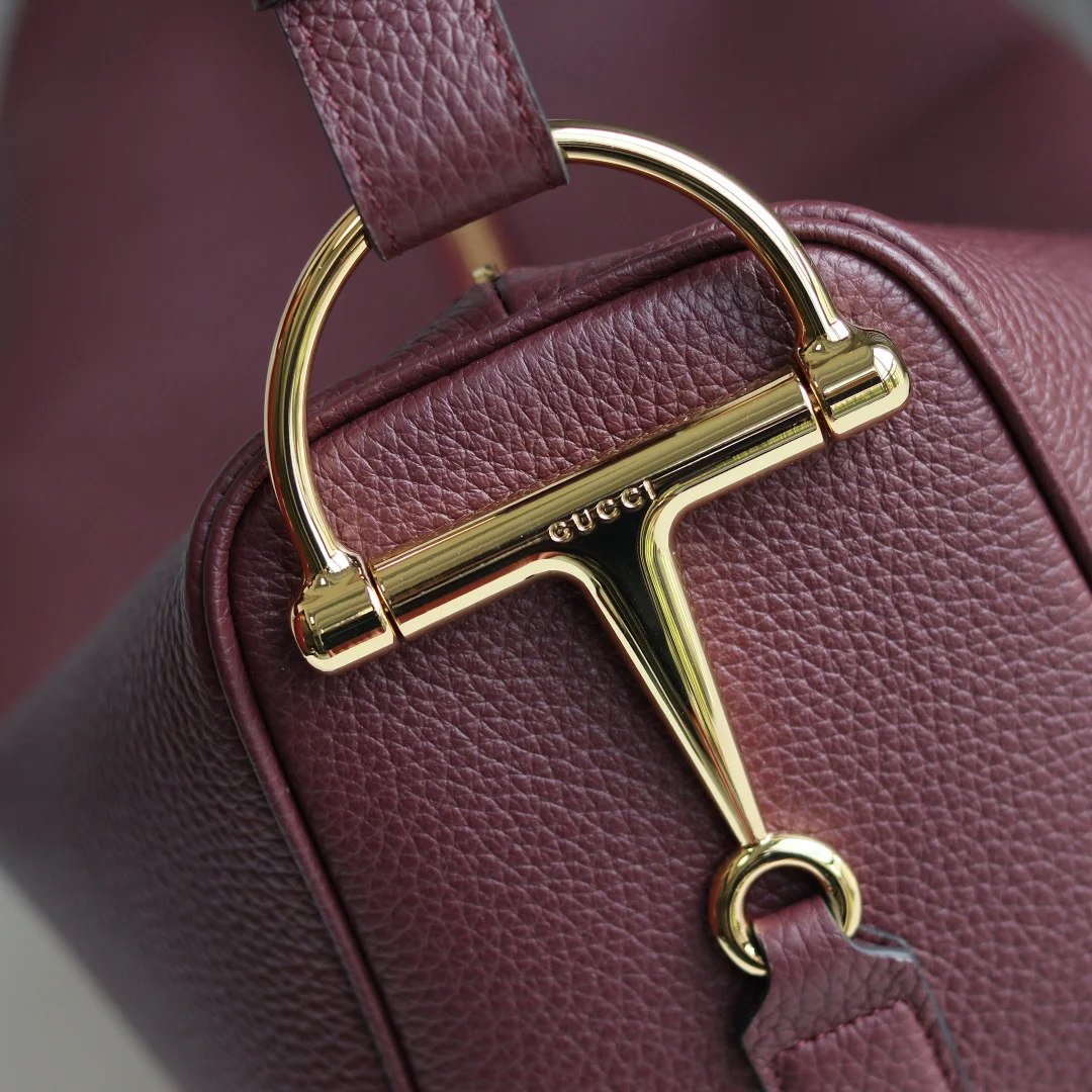 Gucci Half Horsebit系列大号肩背包 焕新呈现 以现代风格焕新演绎品牌最具标志性的元素之一该系列巧妙融蕴休闲廓形与标志性的半马衔扣配件 这也是其名称的由来 内部 一个开口袋 可调节牛皮革肩带 款号862530酒红 尺寸38X20X15