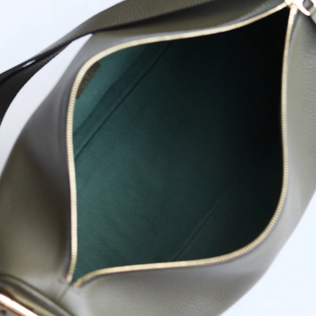 Gucci Half Horsebit系列大号肩背包 焕新呈现 以现代风格焕新演绎品牌最具标志性的元素之一该系列巧妙融蕴休闲廓形与标志性的半马衔扣配件 这也是其名称的由来 内部 一个开口袋 可调节牛皮革肩带 款号862530墨绿 尺寸38X20X15