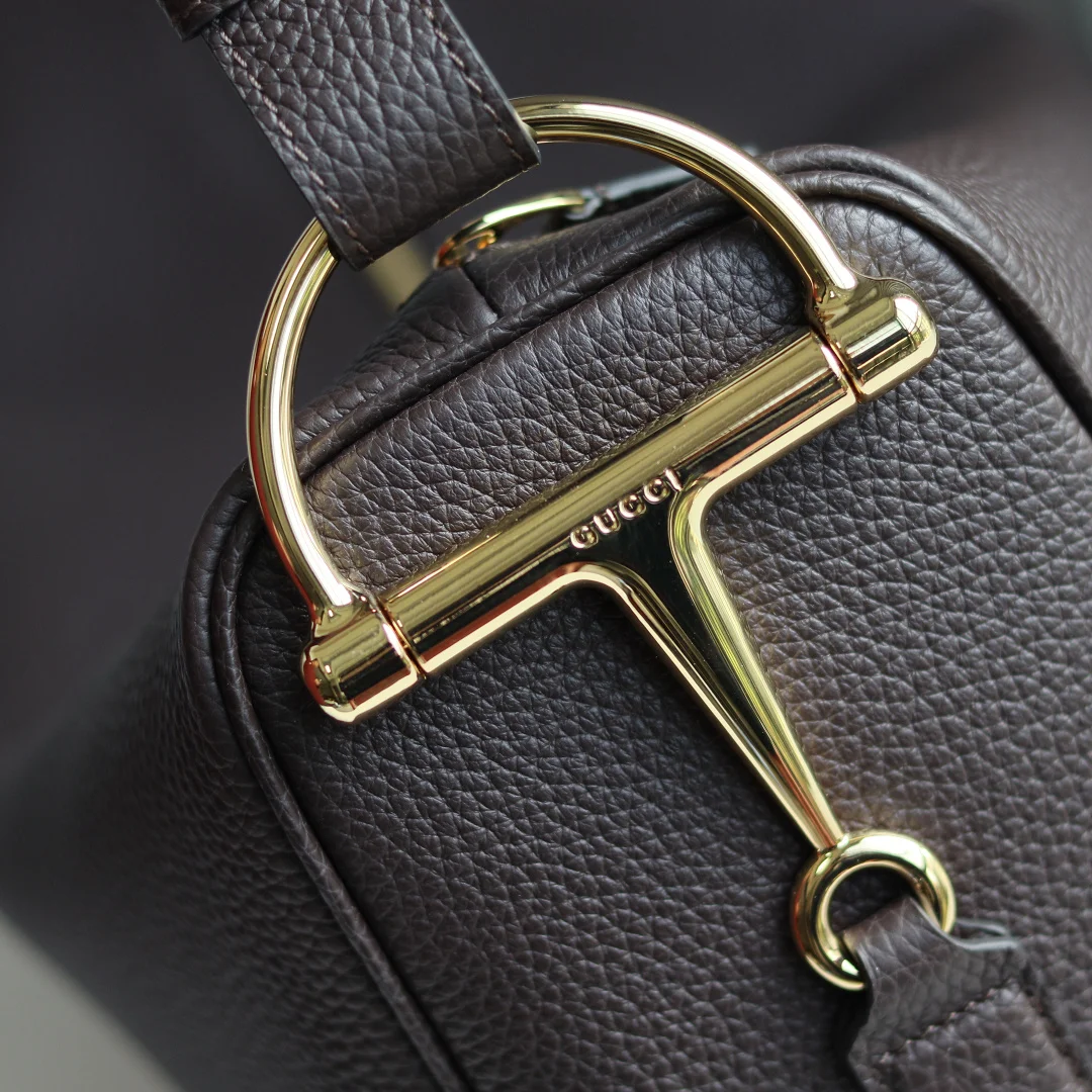 Gucci Half Horsebit系列大号肩背包 焕新呈现 以现代风格焕新演绎品牌最具标志性的元素之一该系列巧妙融蕴休闲廓形与标志性的半马衔扣配件 这也是其名称的由来 内部 一个开口袋 可调节牛皮革肩带 款号862530咖啡色 尺寸38X20X15