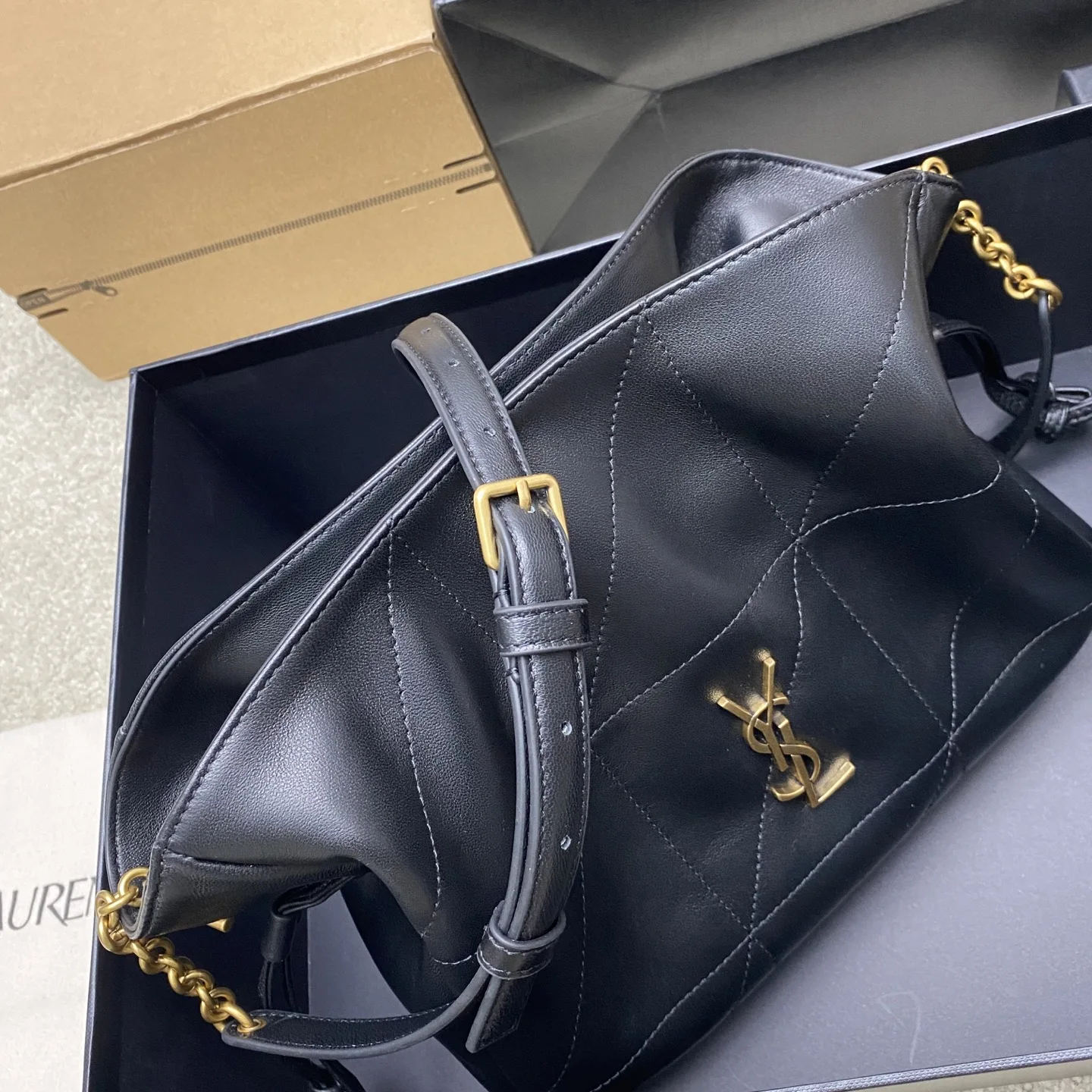 黑羊皮/古金YSL 最新斜跨福袋小号出货了 福袋新尺寸好可爱 一起来种草吧 小巧可爱容量也是很OK哦 而且还很优雅 是有设计在线 且贵气满满的实用型tote 我觉得比22bag好看耶 这是可以说的吗