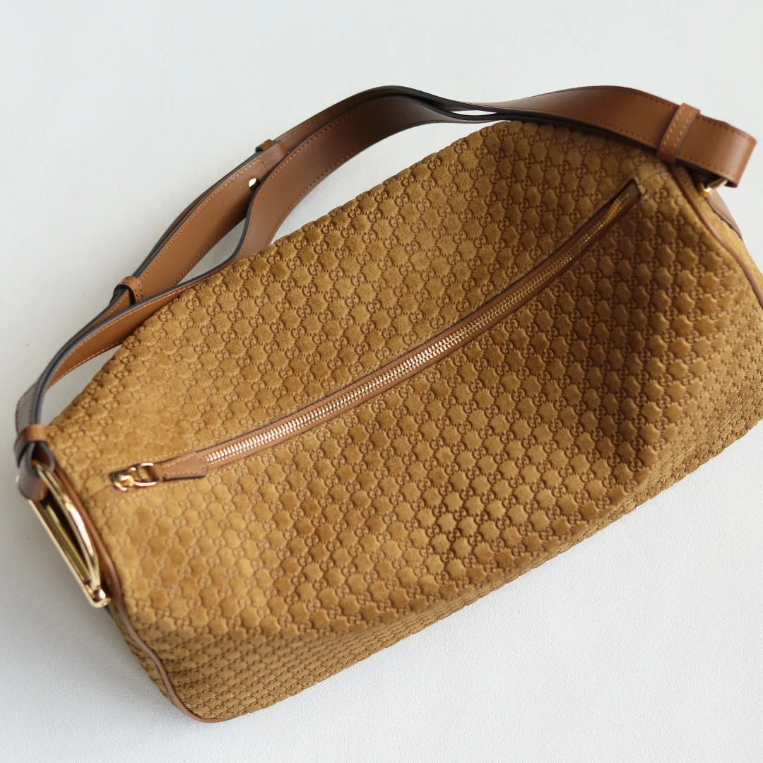 Gucci Half Horsebit系列大号肩背包 焕新呈现 以现代风格焕新演绎品牌最具标志性的元素之一该系列巧妙融蕴休闲廓形与标志性的半马衔扣配件 这也是其名称的由来 内部 一个开口袋 可调节牛皮革肩带 款号862530棕皮 尺寸38X20X15 898055