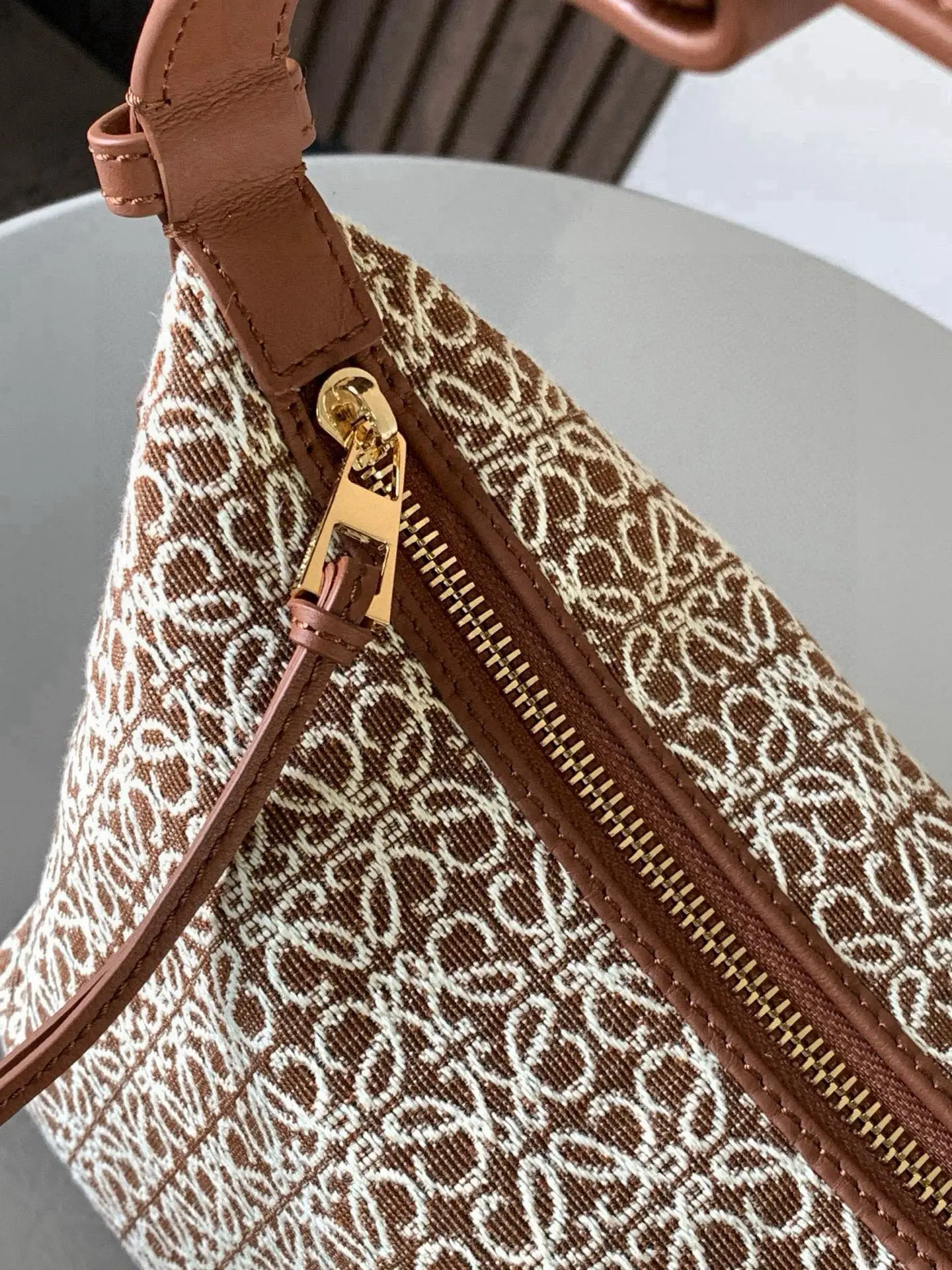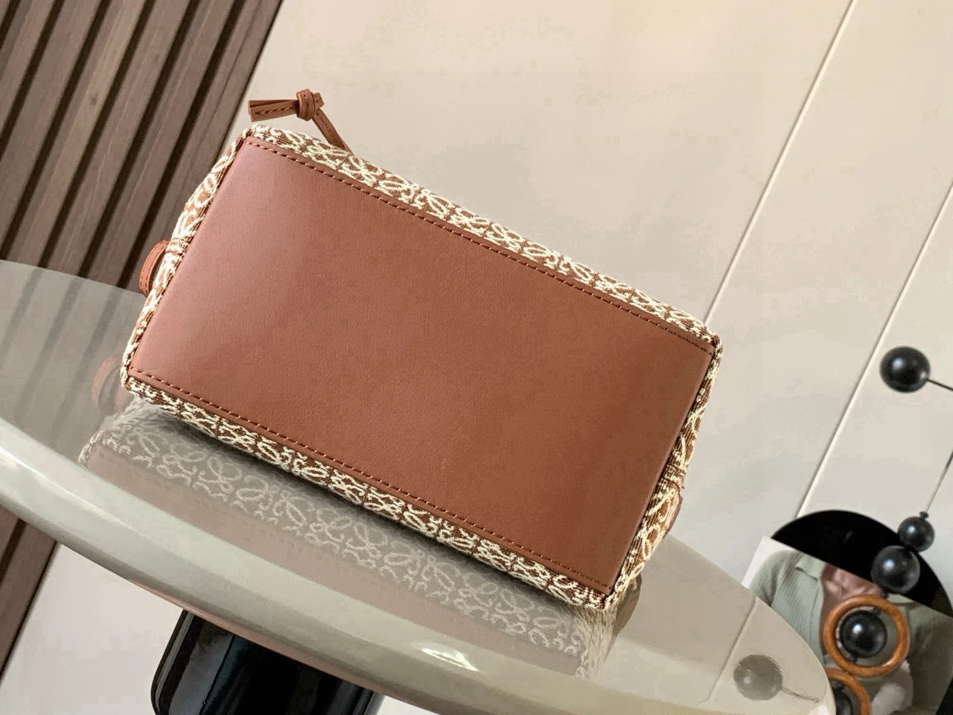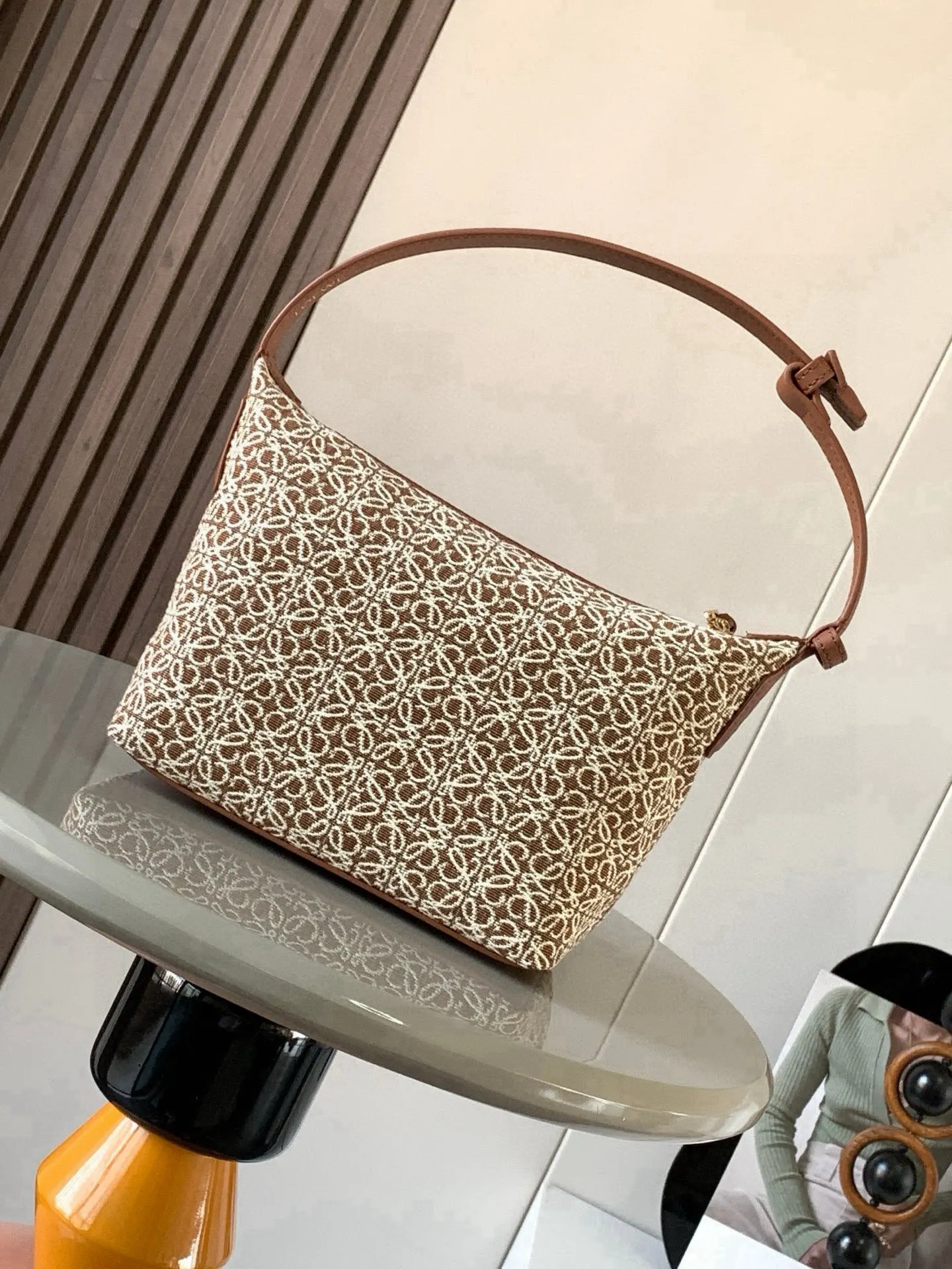 Anagram提花布和牛皮革 Cubi手袋小号便当包 Cubi饭盒包这一季的快乐是Cubi给的 L0ewe 最新抢手腋下包 Cubi绣花设计自带高级感 随便搭件素色白T都能产生奇妙的化学反应肩带的调节功能也十分用心 没有过多的繁琐 轻轻一扣 解放双手 手提 腋下肩背都好看 容量大 自重还很轻 太可爱了快来开启 炸街 模式Cubi Anagram 包袋是一款宽敞的肩包 带有牛皮革底座和柔软的包身 这个版本采用牛皮革和 Anagram 提花布制成