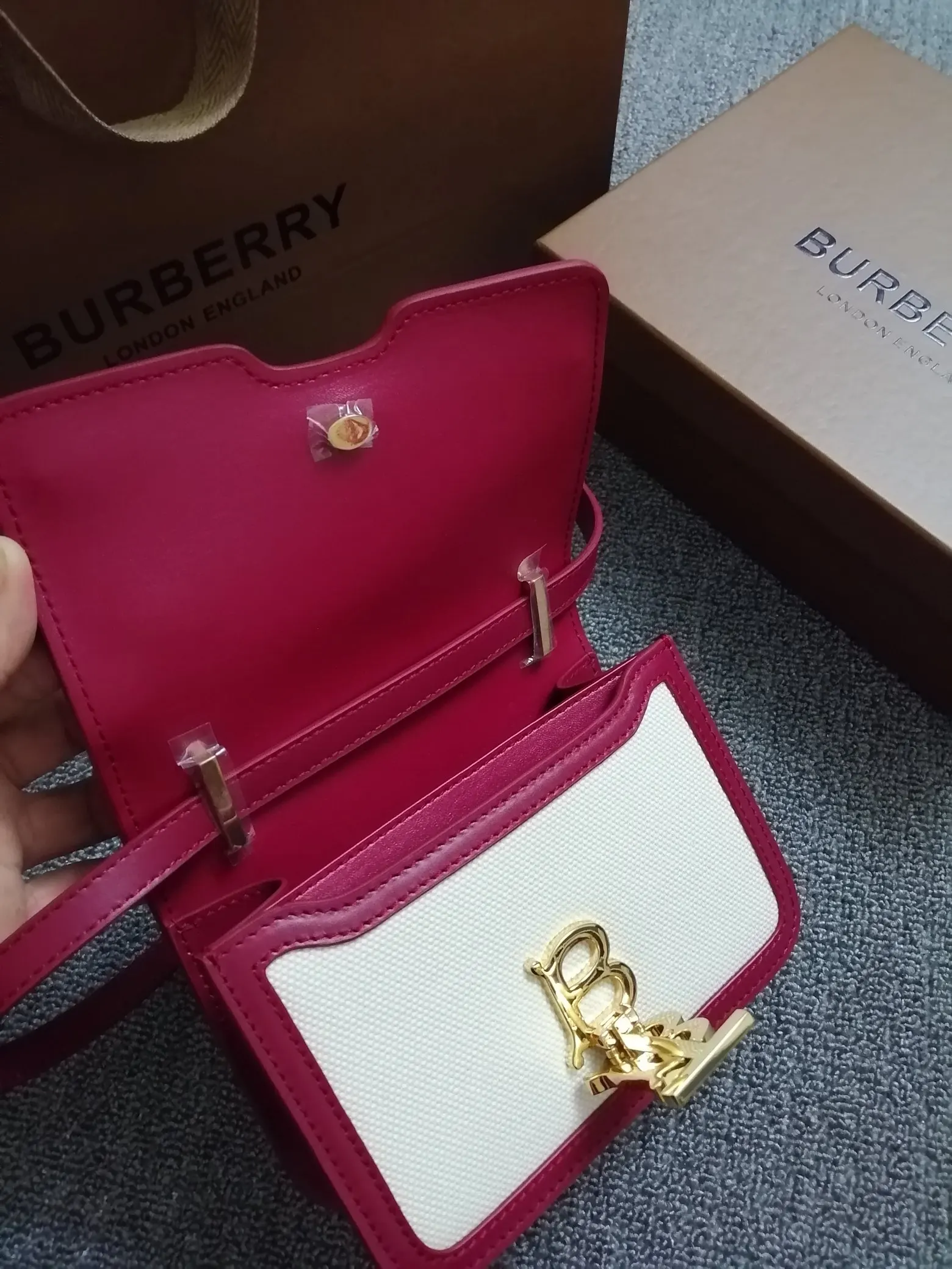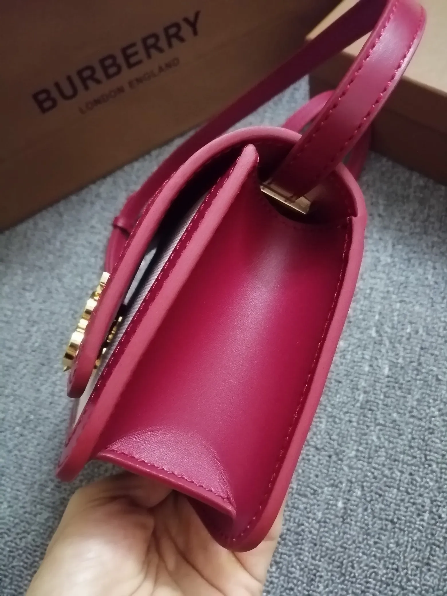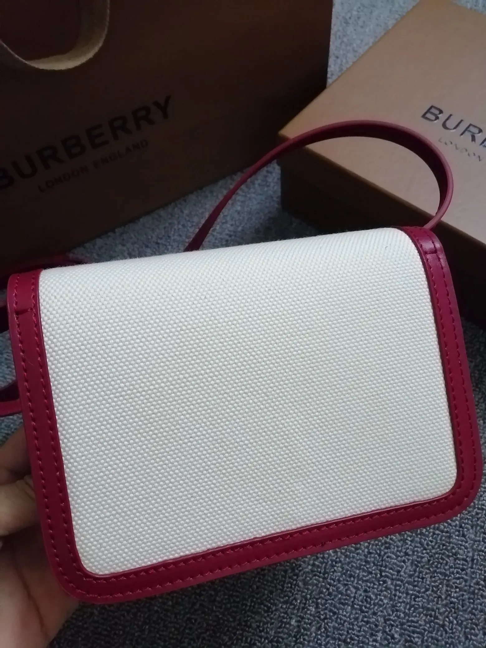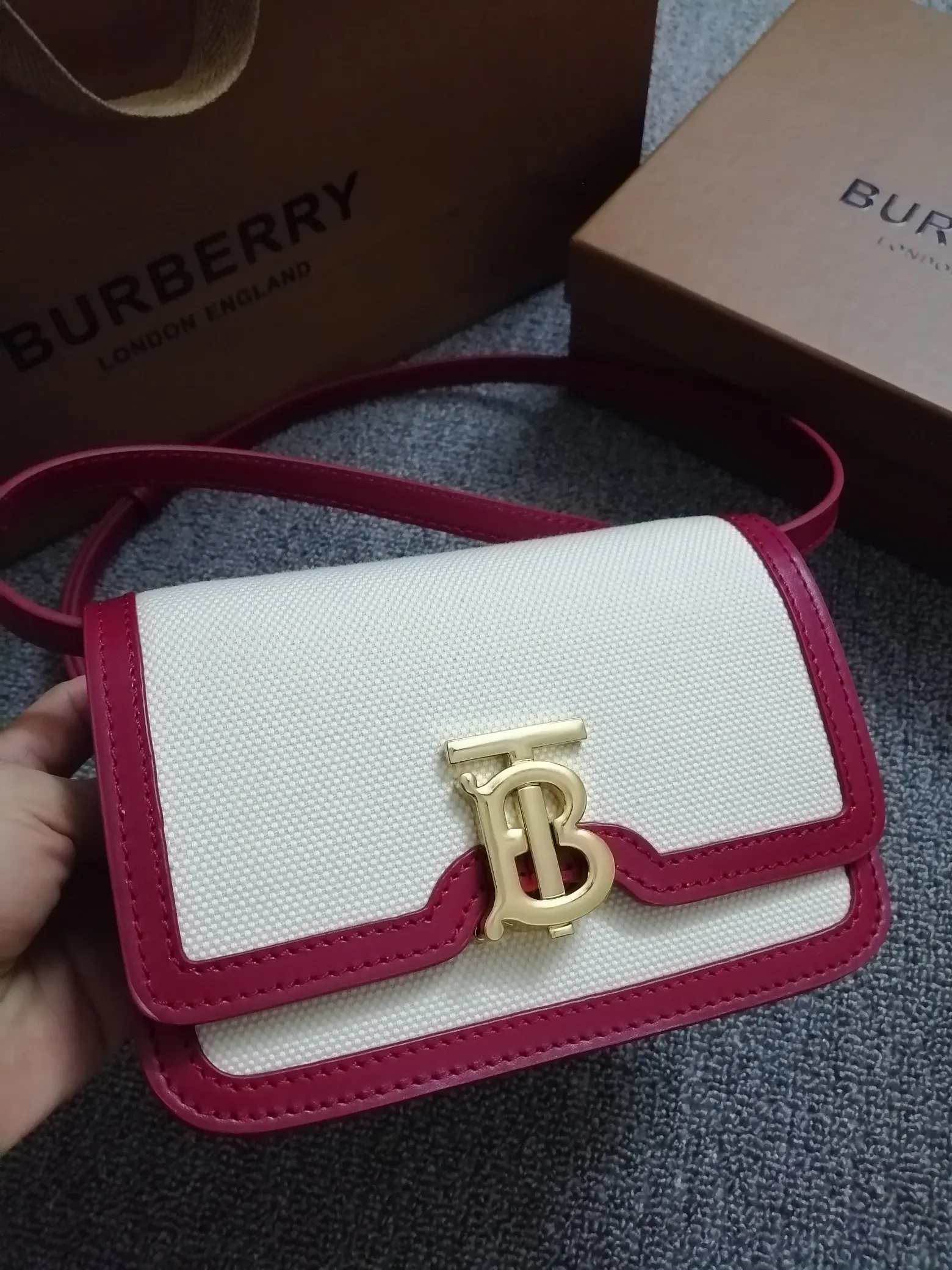 B家新款 TB 迷你专属标识双色帆布拼皮革锁扣包 版型立挺的单肩包 精选双色帆布与平滑皮革制造 锁扣装饰 Thomas Bur灵感专属标识 随心变换为斜背包或手拿包造型 编号 90238尺寸:17 - 6 - 12.5cm