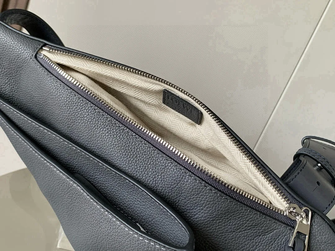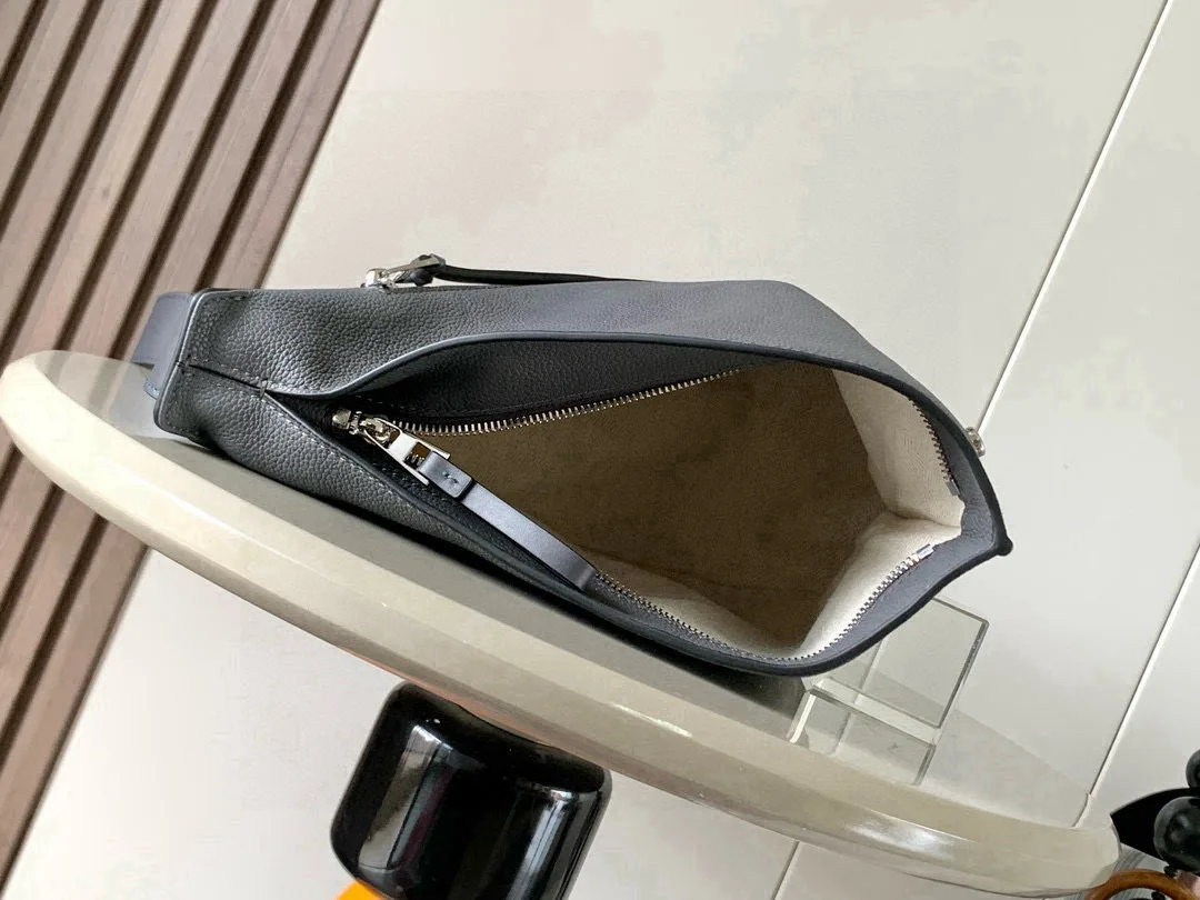 男士斜挎包胸包柔软光滑牛皮革和提花布Anton Sling简洁实用的Sling手袋带有可调节 织物肩带和拉链顶部设计使用时可以折叠并且可以用按扣固定此版本采用柔软光滑牛皮革制成配有 LOEWE 提花带子有两个收纳的拉链袋 一个在正面 一个是侧面侧面适合装一些贴身手机车钥匙这些经常要取拿的东西 不得不为他设计叫绝 牛皮革拉链头 人字纹棉质帆布衬里 Anagram 压纹