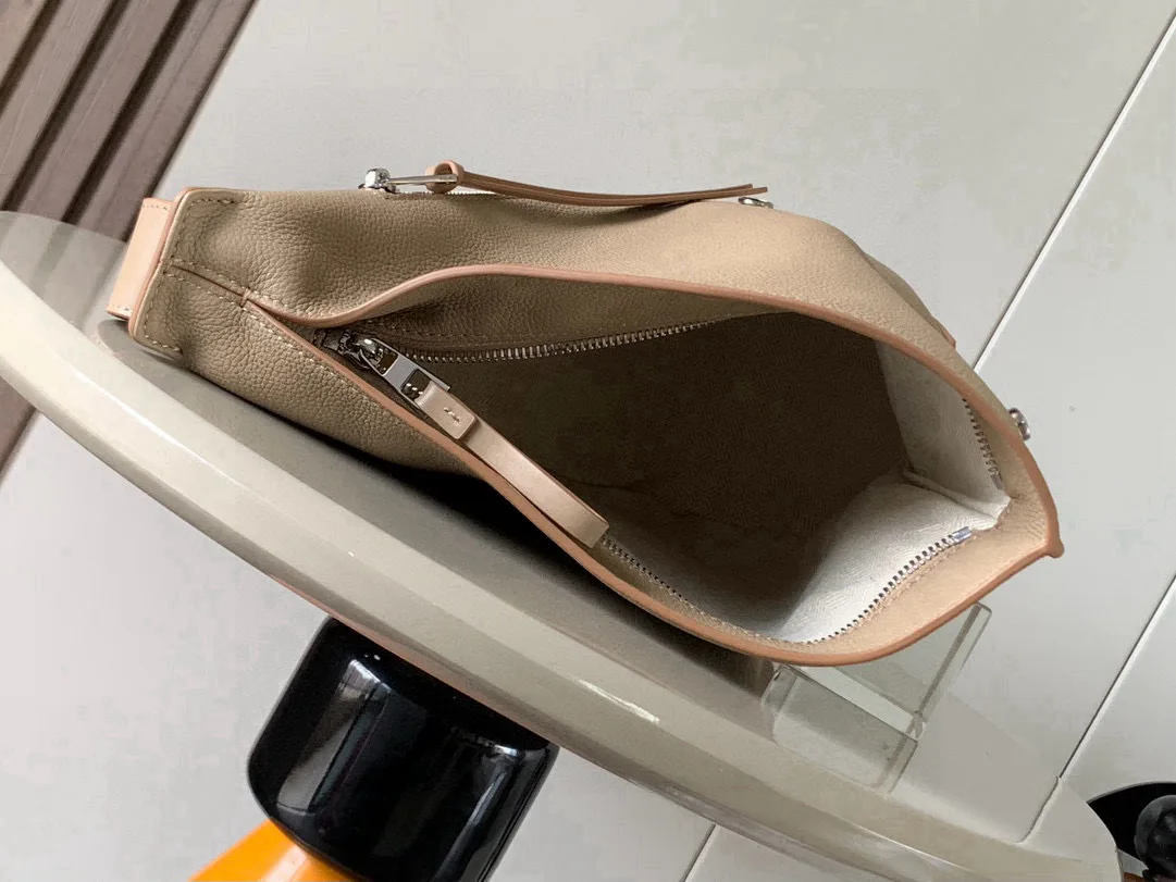 男士斜挎包胸包柔软光滑牛皮革和提花布Anton Sling简洁实用的Sling手袋带有可调节 织物肩带和拉链顶部设计使用时可以折叠并且可以用按扣固定此版本采用柔软光滑牛皮革制成配有 LOEWE 提花带子有两个收纳的拉链袋 一个在正面 一个是侧面侧面适合装一些贴身手机车钥匙这些经常要取拿的东西 不得不为他设计叫绝 牛皮革拉链头 人字纹棉质帆布衬里 Anagram 压纹