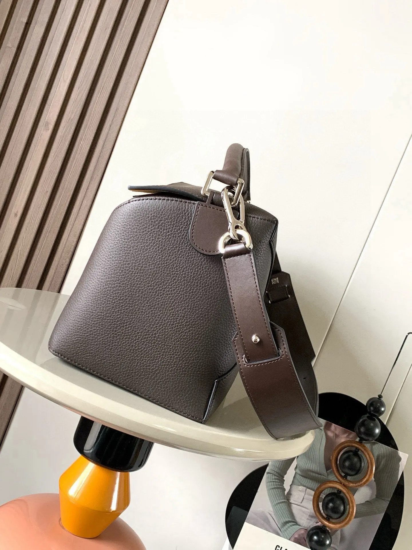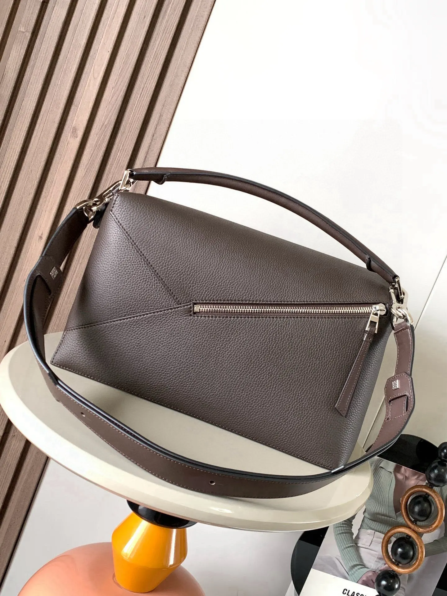 新款大号几何包36CMPuzzle手袋 原厂进口荔枝纹牛皮 罗家爆款几何包Puzzle 手袋是创意总监乔纳森 安德森 Jonathan Anderson 为 L0EWE 推出的首款手提包包长方体形状和精确的切割技术创造了Puzzle 独特的几何线条简约大气的几何设计时髦中带着股酷劲 可甜可盐原厂荔枝纹小牛皮 包型都不变型手感舒适得没话说上身气质立马up 立体包型还蕴藏着非凡的容量是永远都囤不够的热门单品