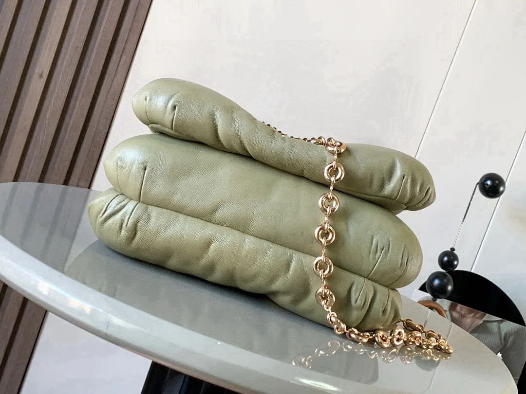 闪亮纳帕羊皮革 Puffer Goya 手袋puffer Goya 受到了 Goya 美学和关键细节的启发 通过带有鹅毛衬垫的闪亮纳帕羊皮革带来了全新的感官和触觉维度配有可拆卸的金属甜甜圈链条 *肩背 磁扣 两个隔层包括一个拉链 一款很特别的包包口袋和一个贴袋 纳帕羊皮革衬里 一款很特别的包包Puffer Goya好肥好胖软嘟嘟的 Goya 太可爱啦手感无敌真心好看云朵包胖嘟嘟软fufu的超级可爱抱枕一样的软糯手感超好rua配有甜甜圈一样的金属短链条不累肩舒适指数满分