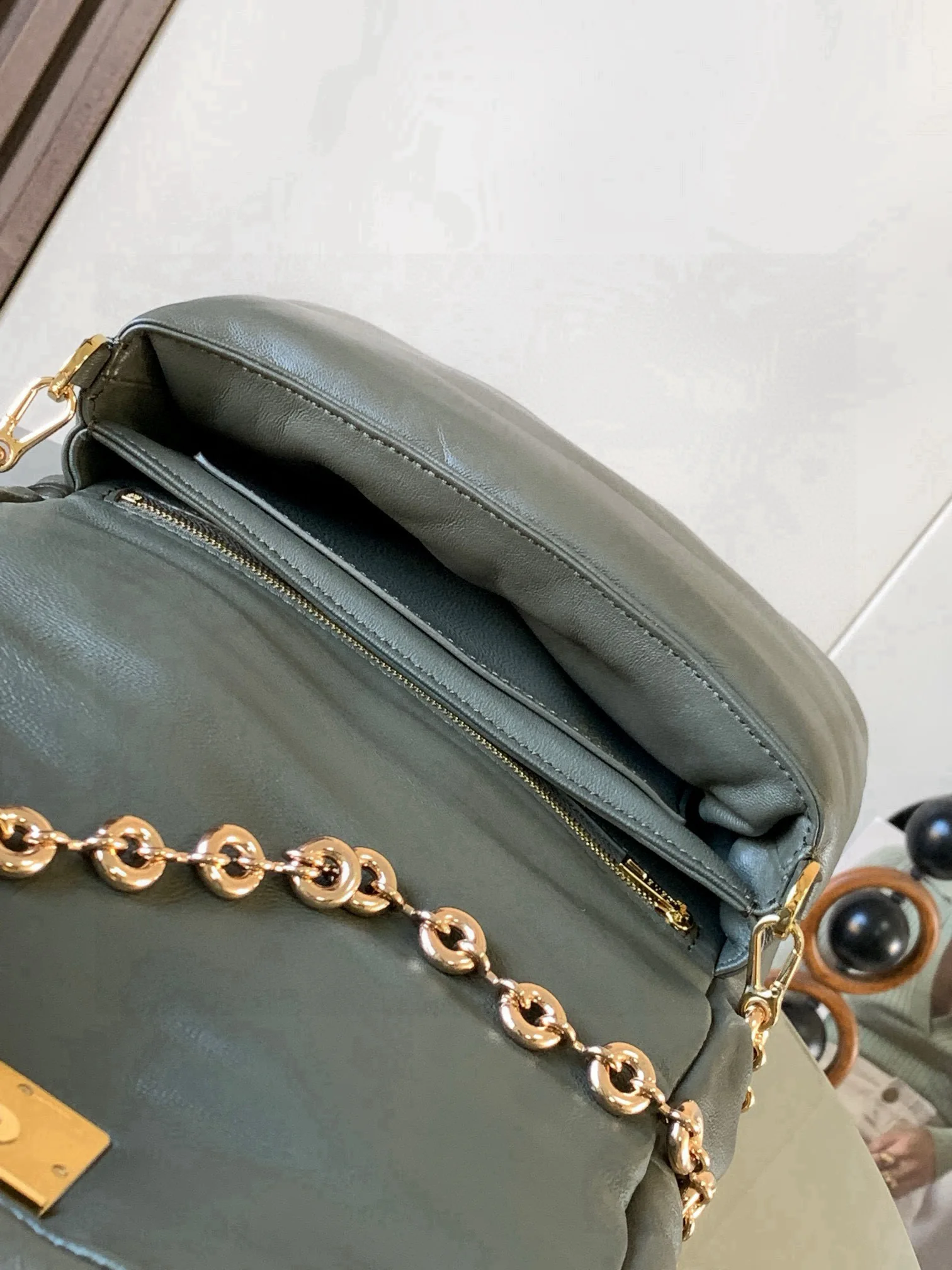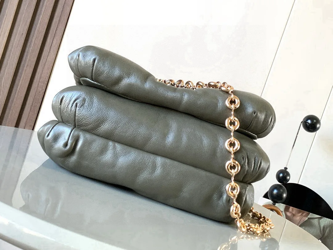 puffer Goya 受到了 Goya 美学和关键细节的启发 通过带有鹅毛衬垫的闪亮纳帕羊皮革带来了全新的感官和触觉维度配有可拆卸的金属甜甜圈链条 *肩背 磁扣 两个隔层包括一个拉链 一款很特别的包包口袋和一个贴袋 纳帕羊皮革衬里 一款很特别的包包Puffer Goya好肥好胖软嘟嘟的 Goya 太可爱啦手感无敌 真心好看云朵包胖嘟嘟软fufu的超级可爱抱枕一样的软糯手感超好rua配有甜甜圈一样的金属短链条不累肩舒适指数满分