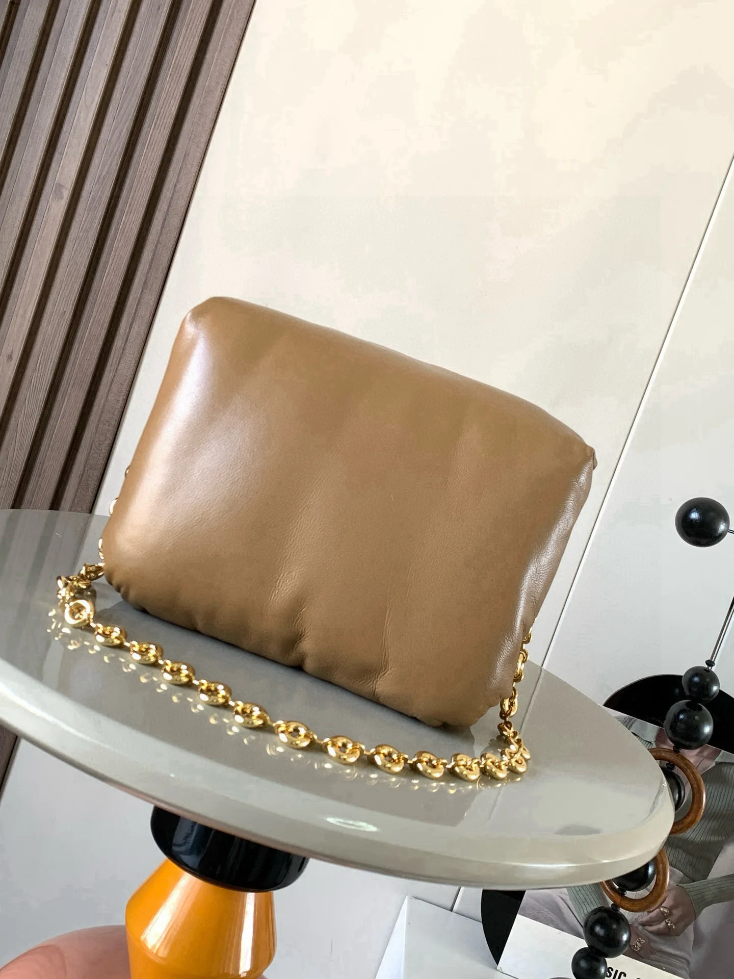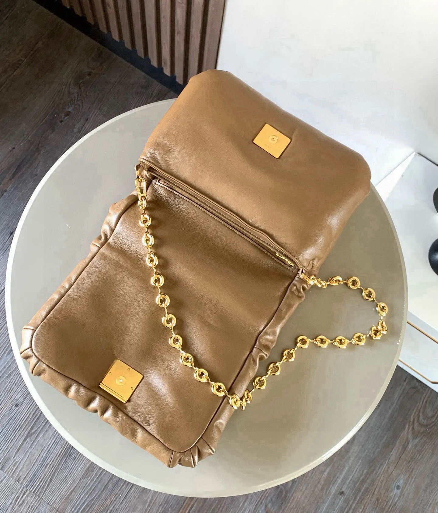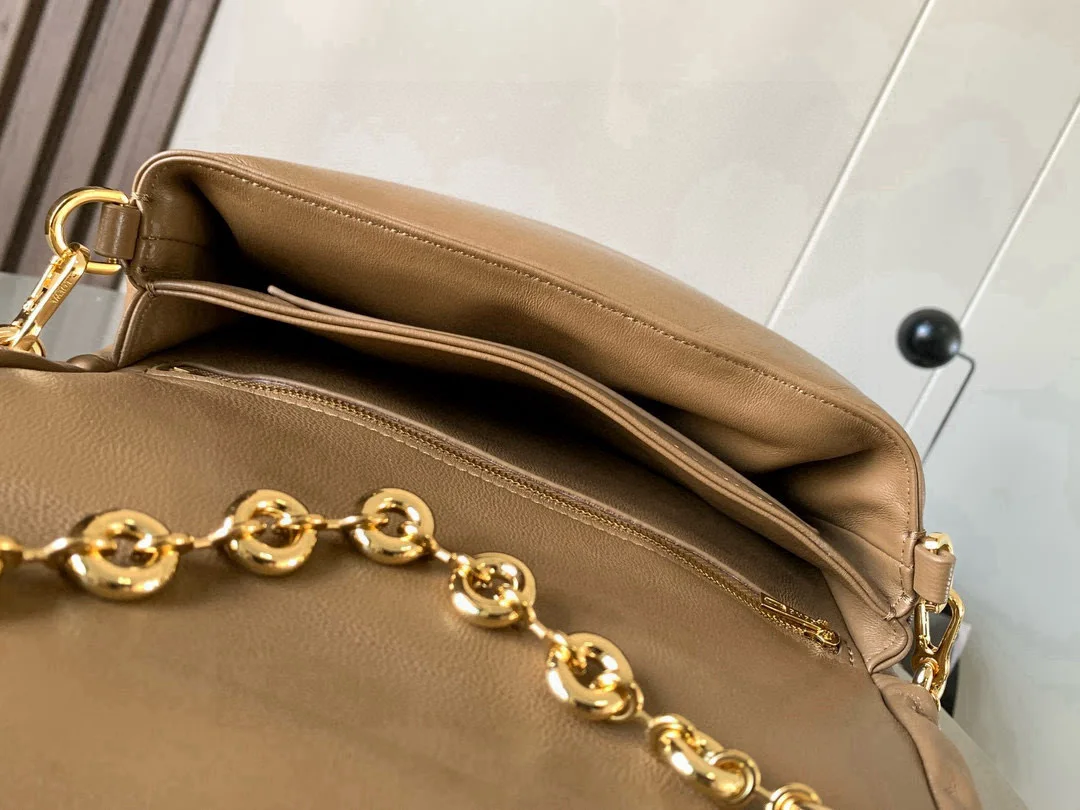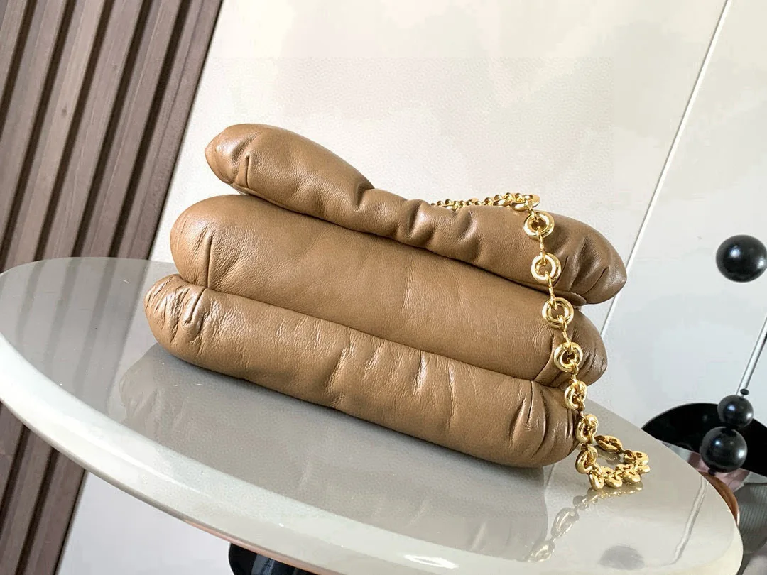 puffer Goya 受到了 Goya 美学和关键细节的启发通过带有鹅毛衬垫的闪亮纳帕羊皮革带来了全新的感官和触觉维度配有可拆卸的金属甜甜圈链条 *肩背 磁扣 两个隔层包括一个拉链 一款很特别的包包口袋和一个贴袋 纳帕羊皮革衬里 一款很特别的包包Puffer Goya好肥好胖嘟嘟的 Goya 太可爱啦手感无敌 真心好看云朵包胖嘟嘟软fufu的超级可爱抱枕一样的软糯手感超好rua配有甜甜圈一样的金属短链条不累肩舒适指数满分