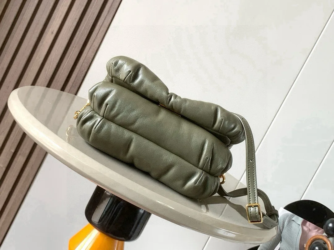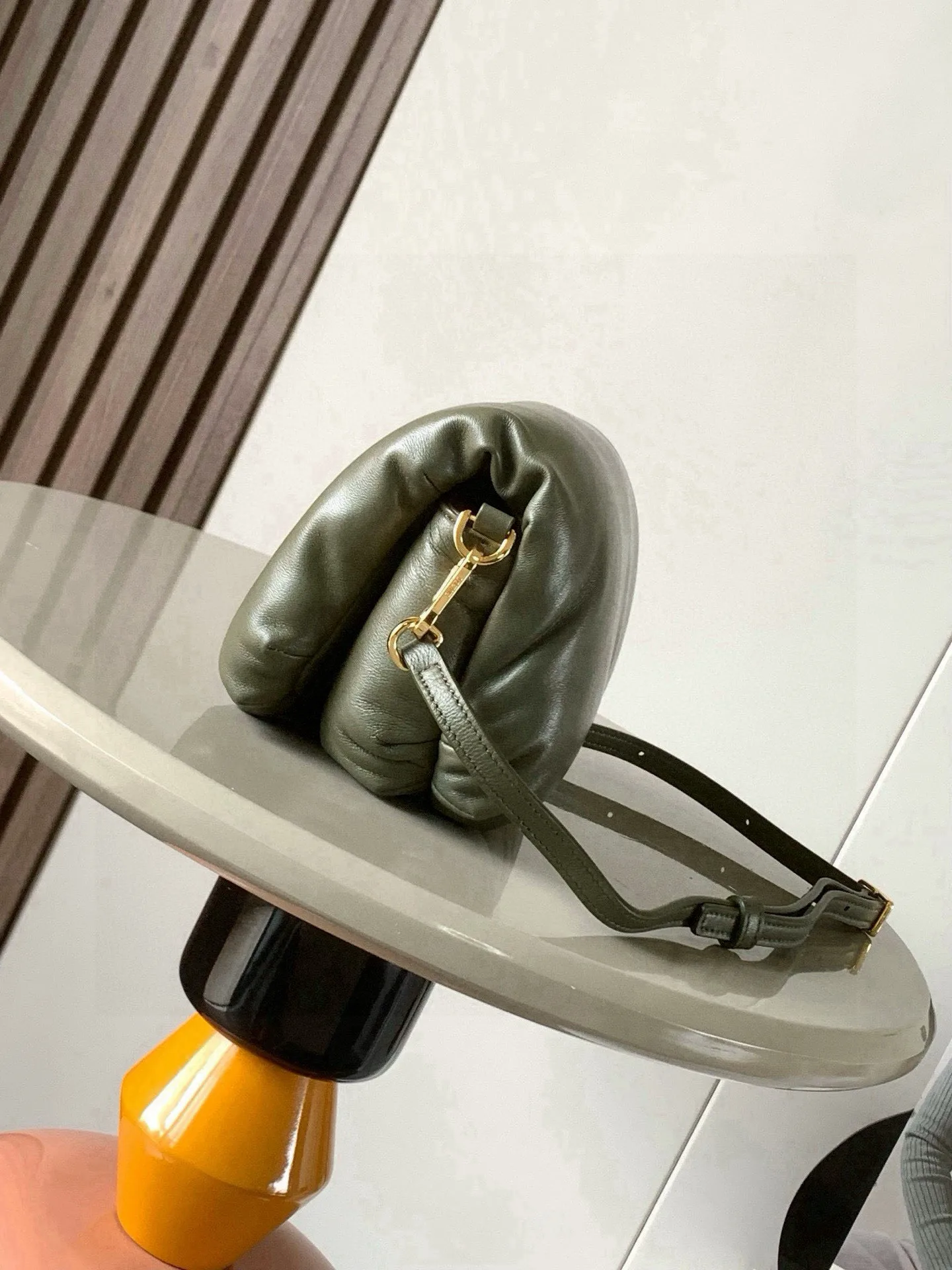 迷你闪亮纳帕羊皮革 Puffer Goya 手袋puffer Goya 受到了 Goya 美学和关键细节的启发 通过带有鹅毛衬垫的闪亮纳帕羊皮革带来了全新的感官和触觉维度配有可拆卸的金属甜甜圈链条 *肩背 磁扣 两个隔层包括一个拉链 一款很特别的包包口袋和一个贴袋 纳帕羊皮革衬里 一款很特别的包包Puffer Goya好肥好胖软嘟嘟的 Goya 太可爱啦手感无敌 真心好看 云朵包胖嘟嘟软fufu的超级可爱抱枕一样的软糯手感超好rua配有甜甜圈一样的金属短链条不累肩舒适指数满分