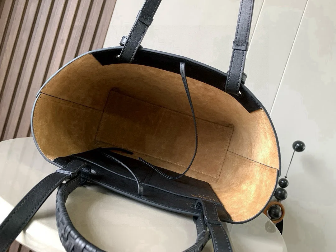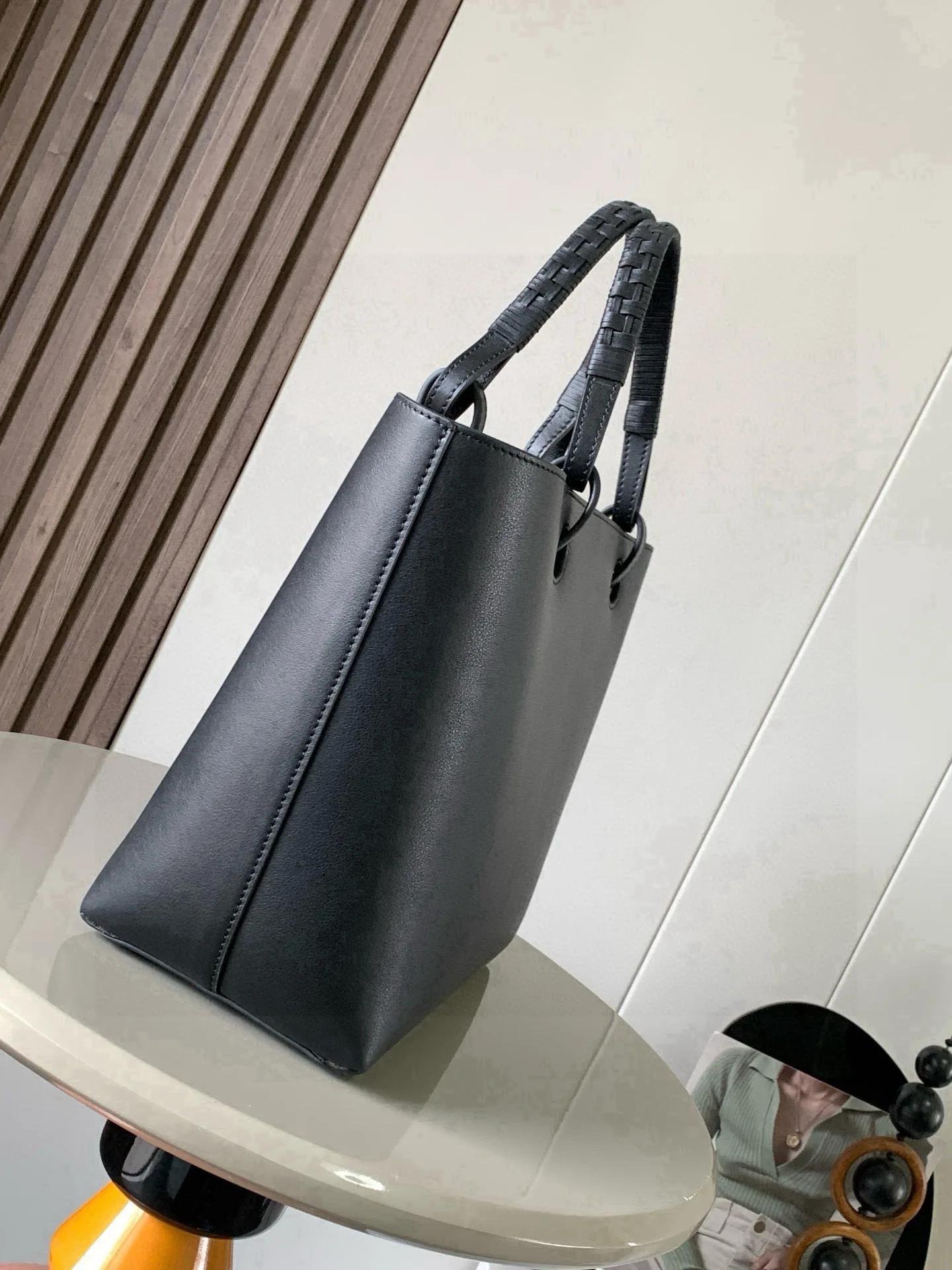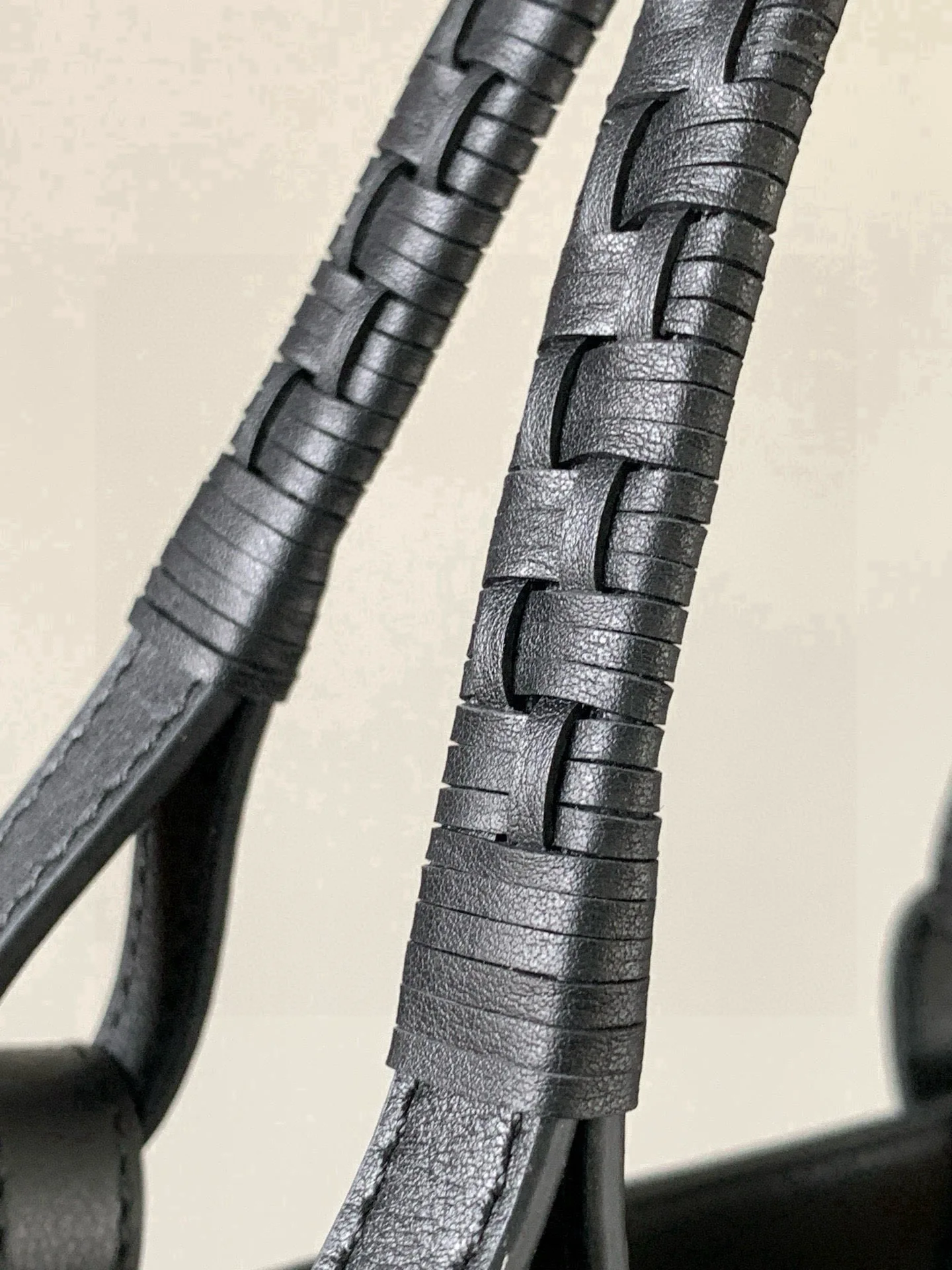 中号牛皮革 Anagram Tote 手袋亚麻布拼接托特色没啥花里胡哨的设计 简单实用型长短肩带的设计还挺好看的尺寸还比较合适 不算特别大容易轻松满足日常需求 除了常规的经典肩带还搭配独特的编织手柄 给简约的造型增添了不少时髦感和设计感 包身压印标志性Anagram徽标辨识度和时尚气息那是拿捏得杠杠哒搭配起来更是舒适又出片可搭配较长的牛皮革顶部提手或较短的手工编织提手使用这个尺寸版采和牛皮革制成正面饰有大尺寸的Anagram 肩背或顶部提手携带 牛皮革系带固定*两个内部插袋*牛皮革衬里