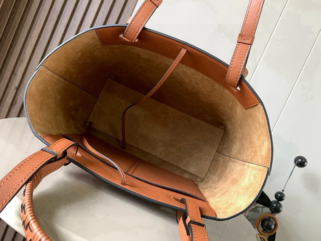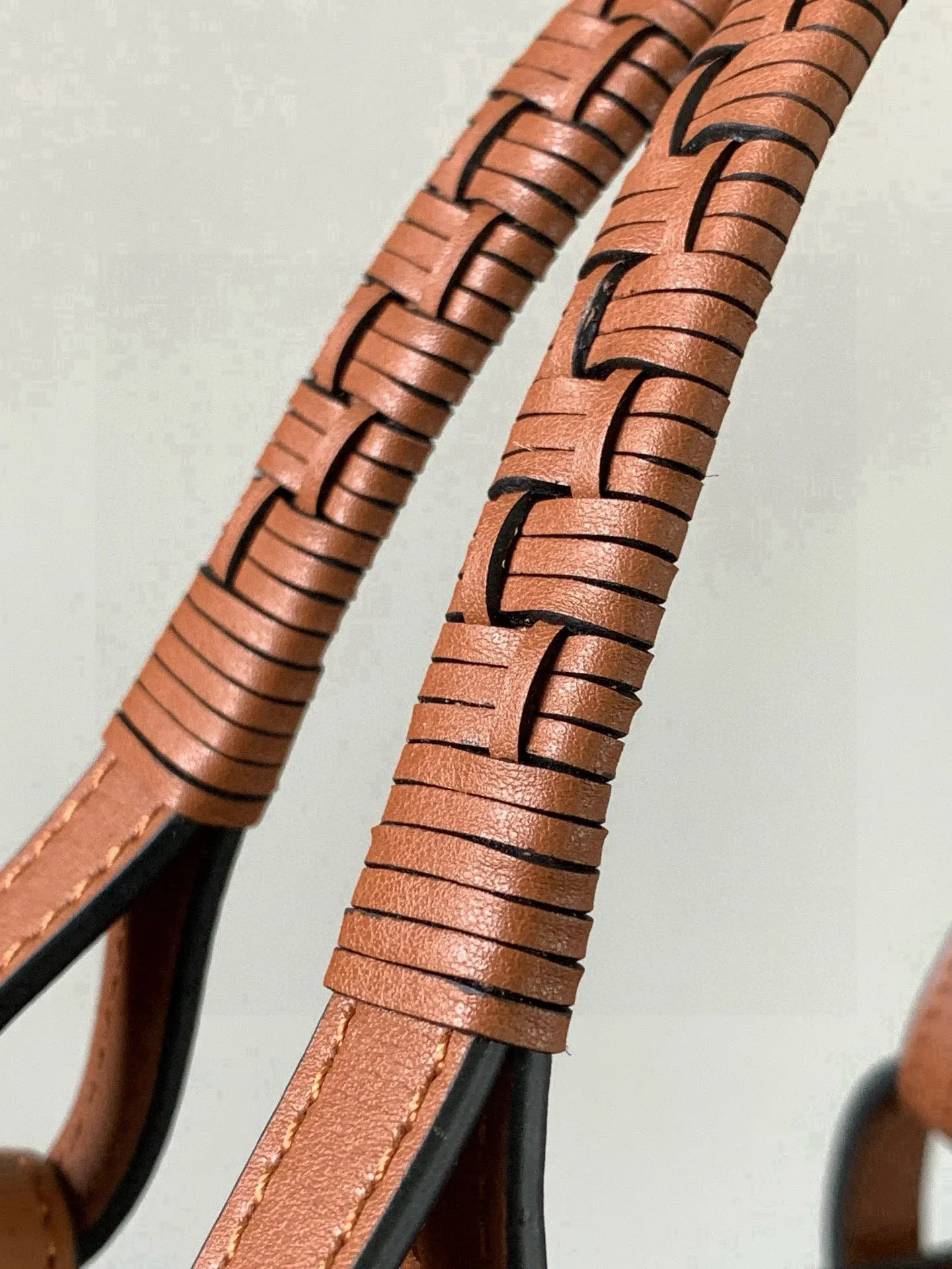 中号牛皮革 Anagram Tote 手袋亚麻布拼接托特色没啥花里胡哨的设计 简单实用型长短肩带的设计还挺好看的尺寸还比较合适 不算特别大容易轻松满足日常需求 除了常规的经典肩带还搭配独特的编织手柄 给简约的造型增添了不少时髦感和设计感 包身压印标志性Anagram徽标辨识度和时尚气息那是拿捏得杠杠哒搭配起来更是舒适又出片可搭配较长的牛皮革顶部提手或较短的手工编织提手使用这个尺寸版采和牛皮革制成正面饰有大尺寸的Anagram 肩背或顶部提手携带 牛皮革系带固定*两个内部插袋*牛皮革衬里