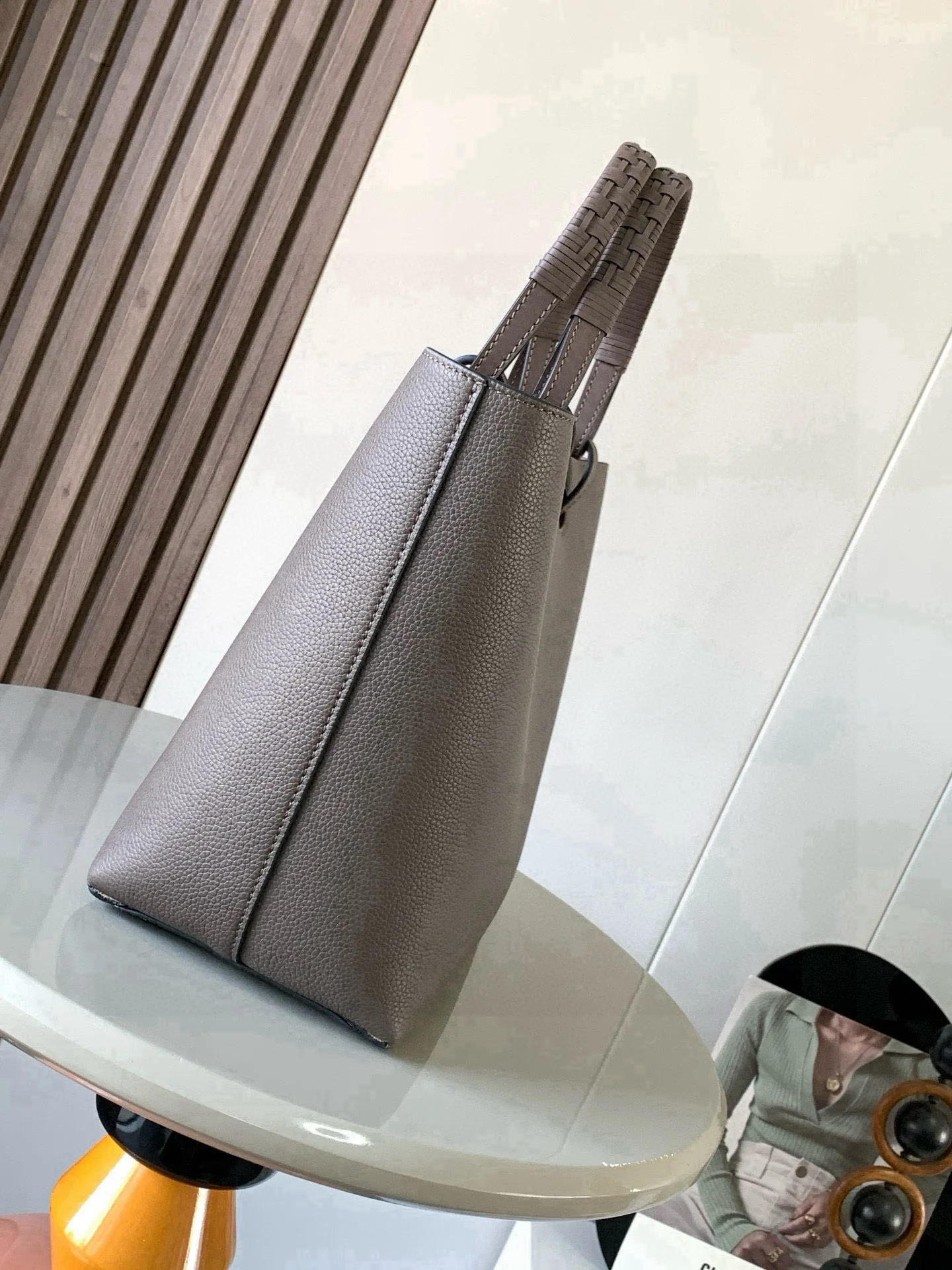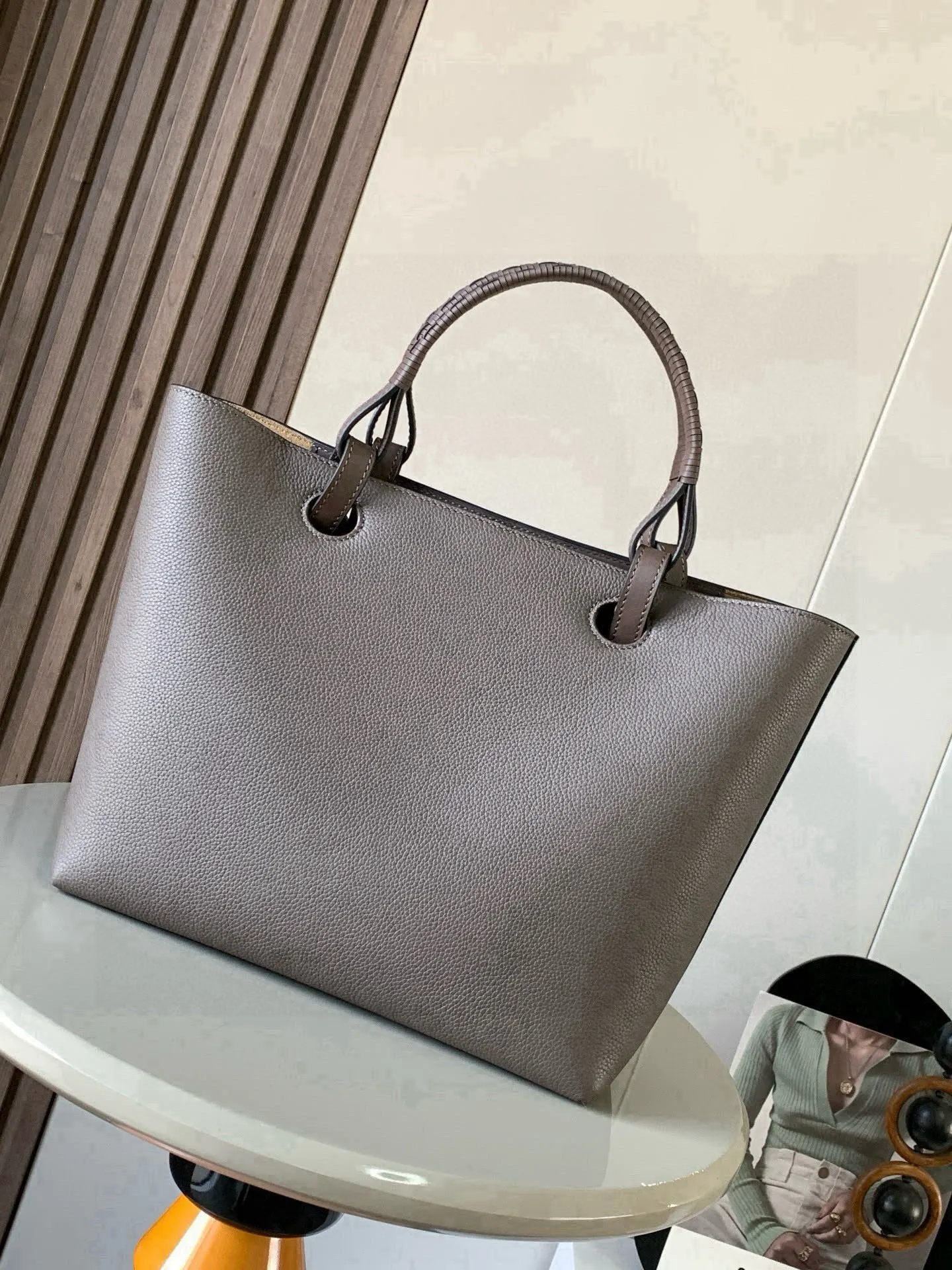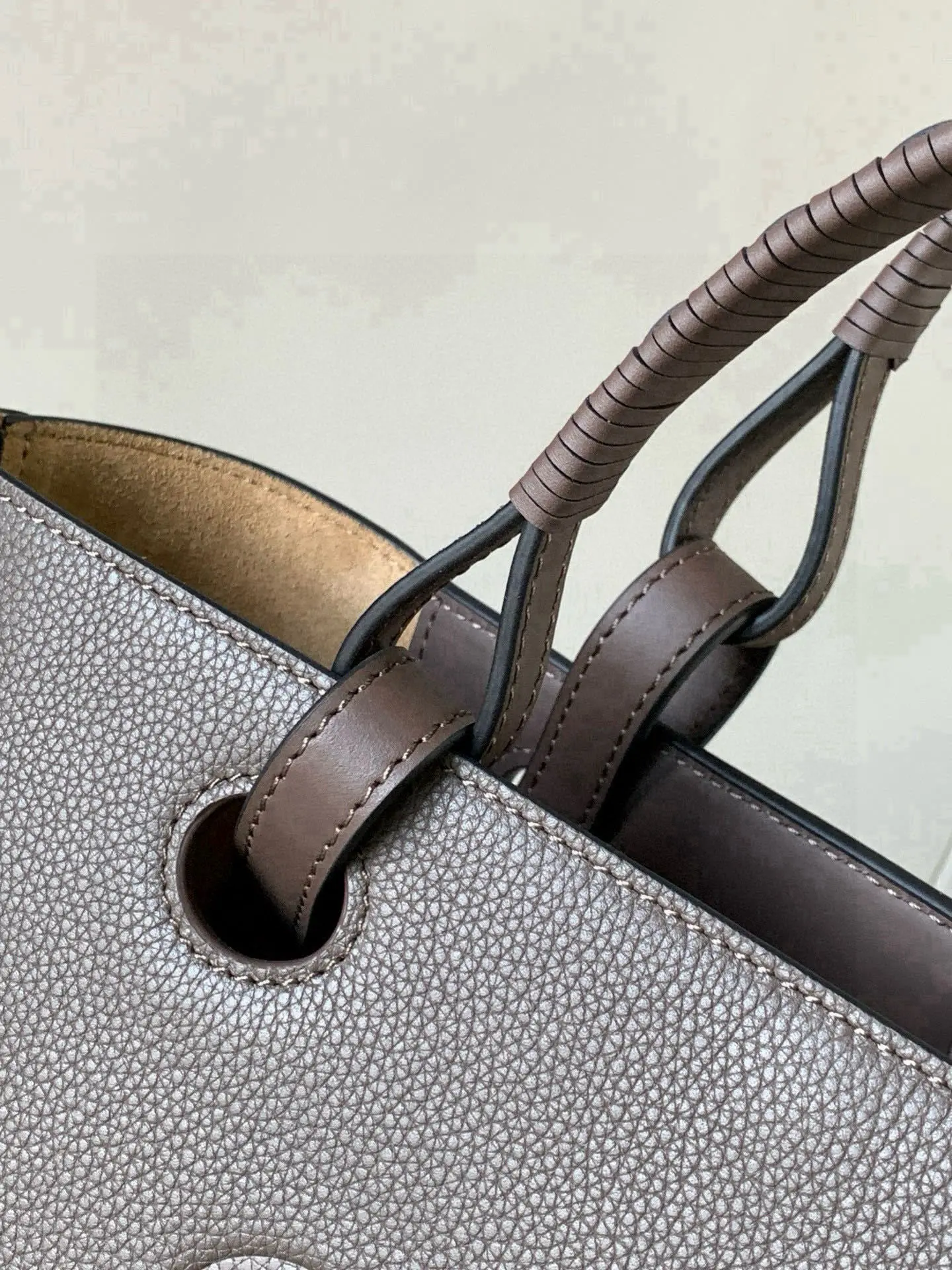 中号牛皮革 Anagram Tote 手袋亚麻布拼接托特色没啥花里胡哨的设计 简单实用型长短肩带的设计还挺好看的尺寸还比较合适 不算特别大容易轻松满足日常需求 除了常规的经典肩带还搭配独特的编织手柄 给简约的造型增添了不少时髦感和设计感 包身压印标志性Anagram徽标辨识度和时尚气息那是拿捏得杠杠哒搭配起来更是舒适又出片可搭配较长的牛皮革顶部提手或较短的手工编织提手使用这个尺寸版采和牛皮革制成正面饰有大尺寸的Anagram 肩背或顶部提手携带 牛皮革系带固定*两个内部插袋*牛皮革衬里