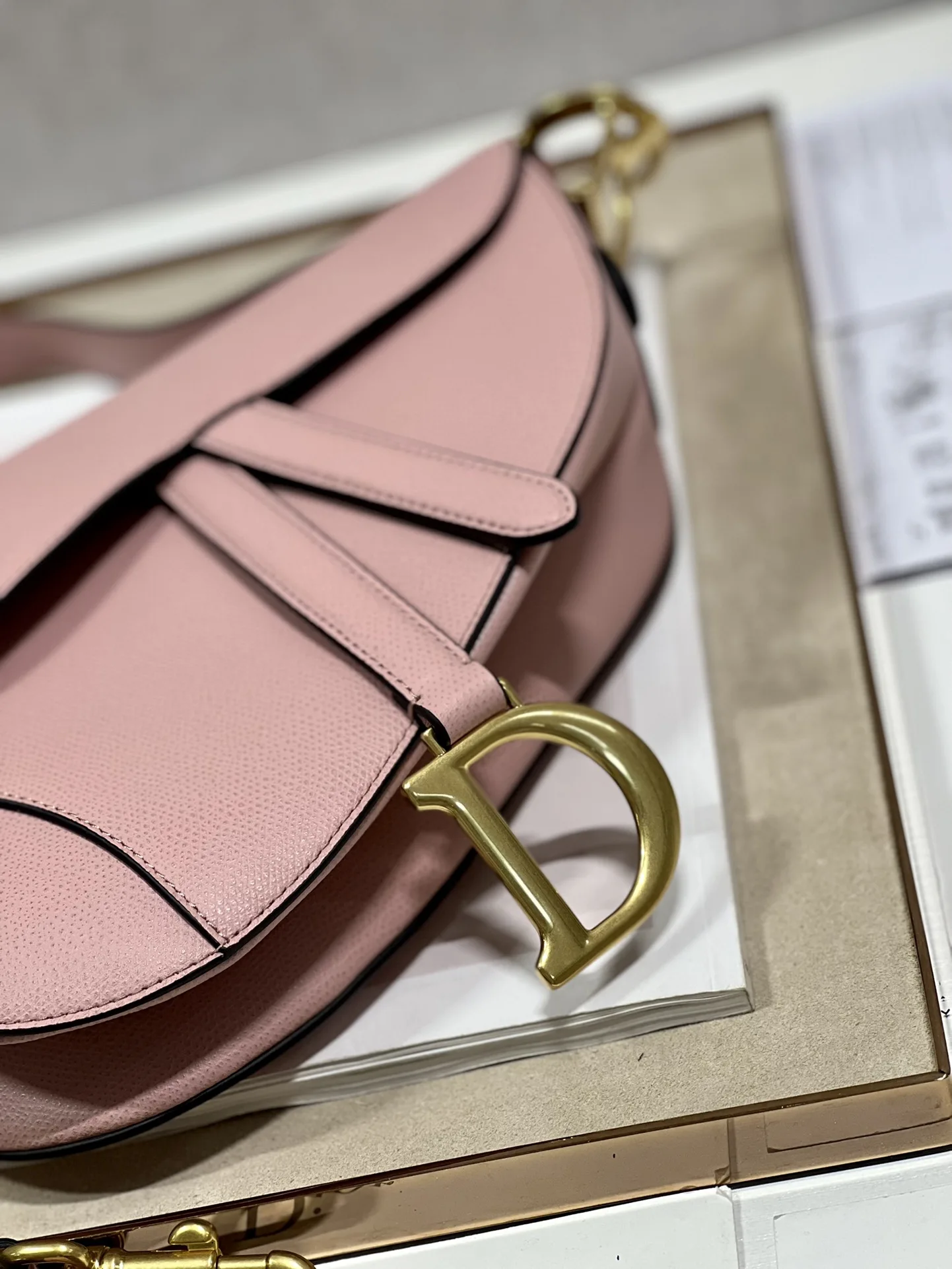 Dɪᴏʀ Sᴀᴅᴅʟᴇ马鞍包 复古粉 大号肩带 重磅回归.重现经典之美该系列手袋刚上市 立刻成为了时尚红人们 人手必备 的单品之一 全新富有民族风情肩带和金属配件 可斜挎以彰显自由动感与独特个性新版本搭配同色系皮肩带 方便携带 也可搭配其他刺绣肩带 大号93271尺寸25.5×20×6.5cm小号93272 尺寸19.5×16×6.5cm