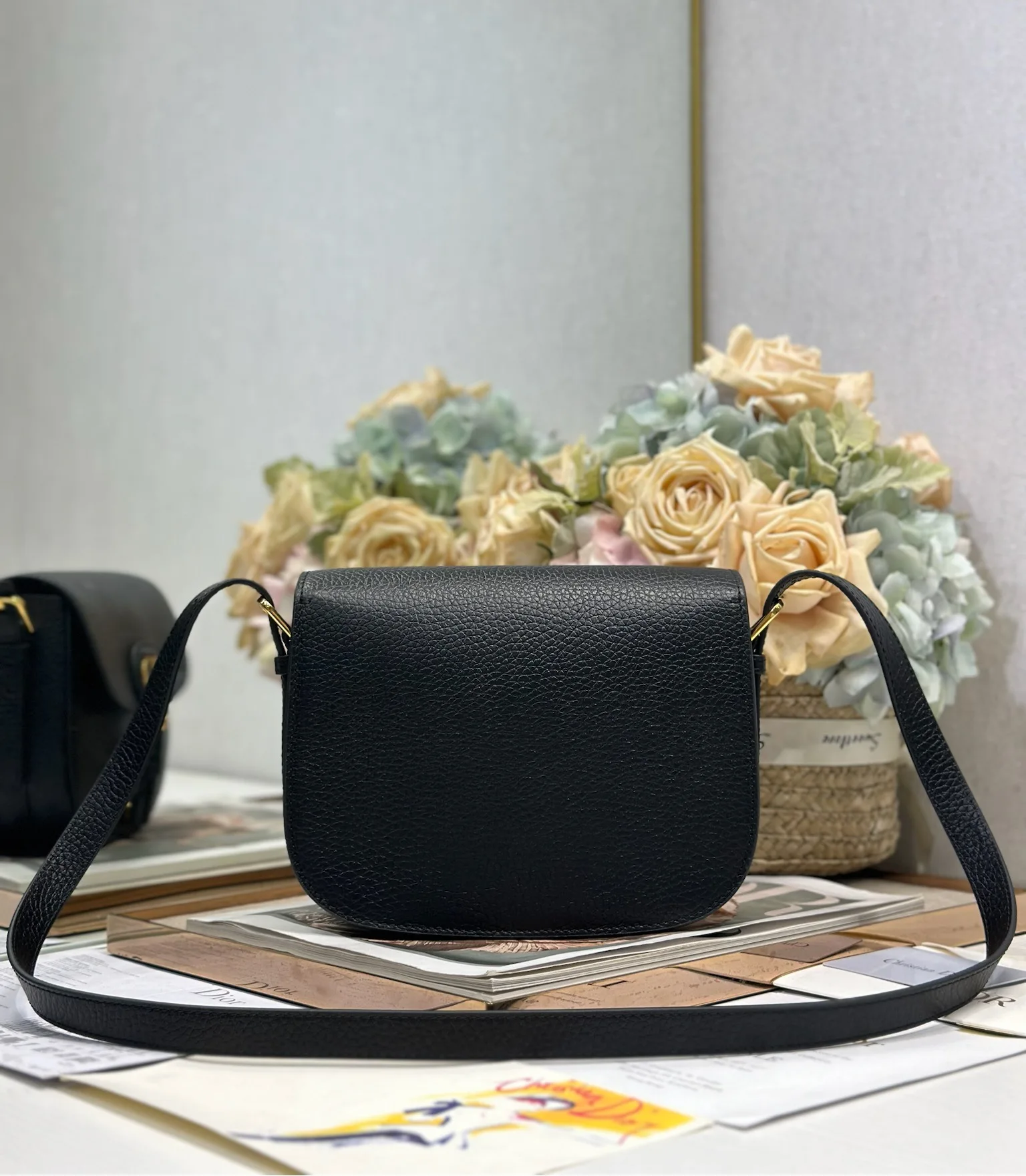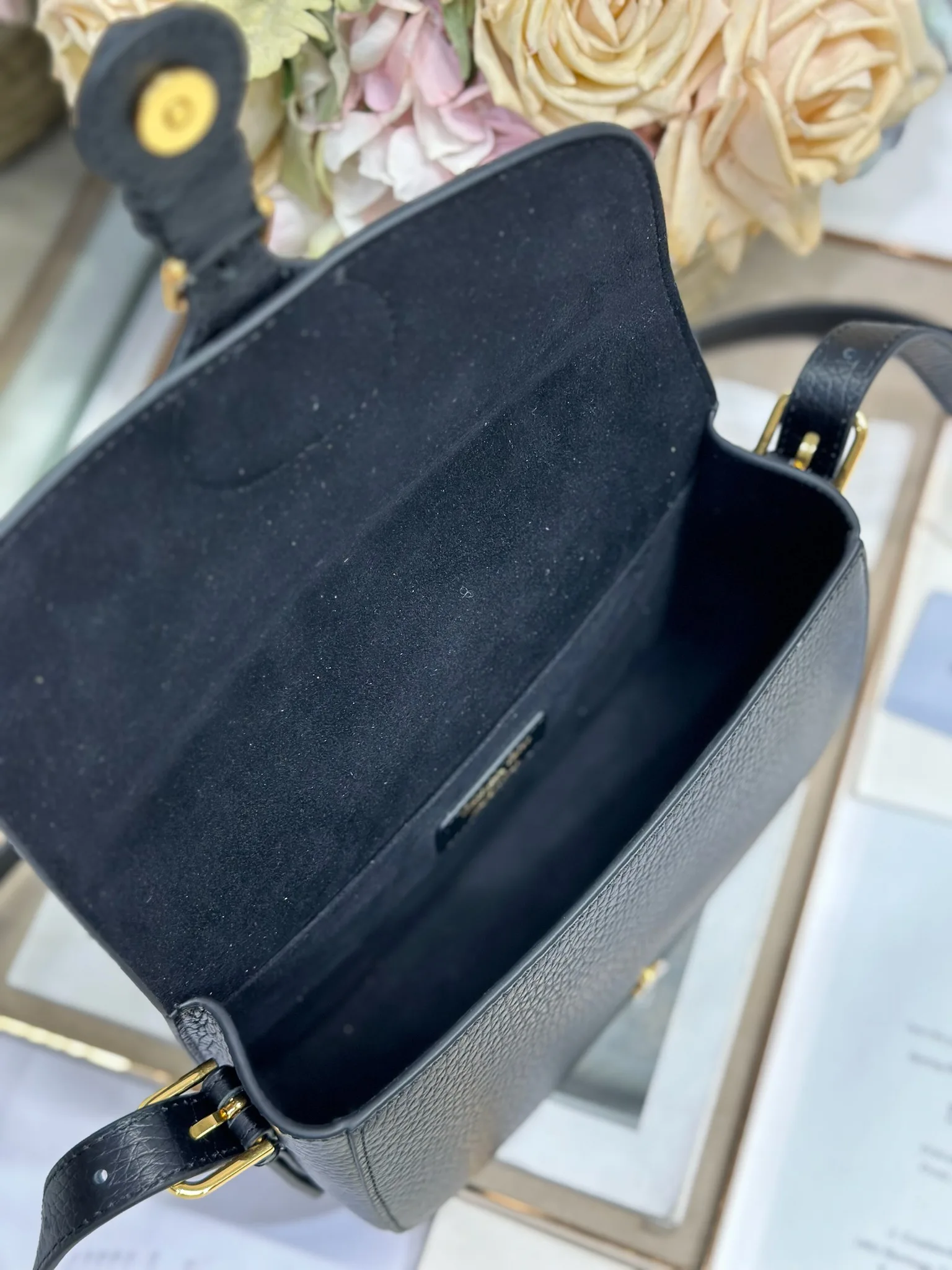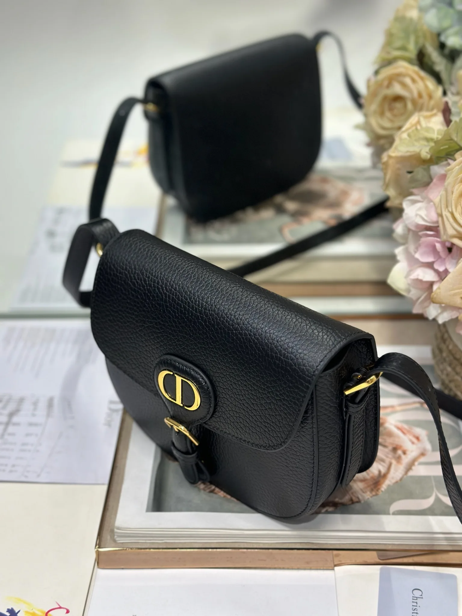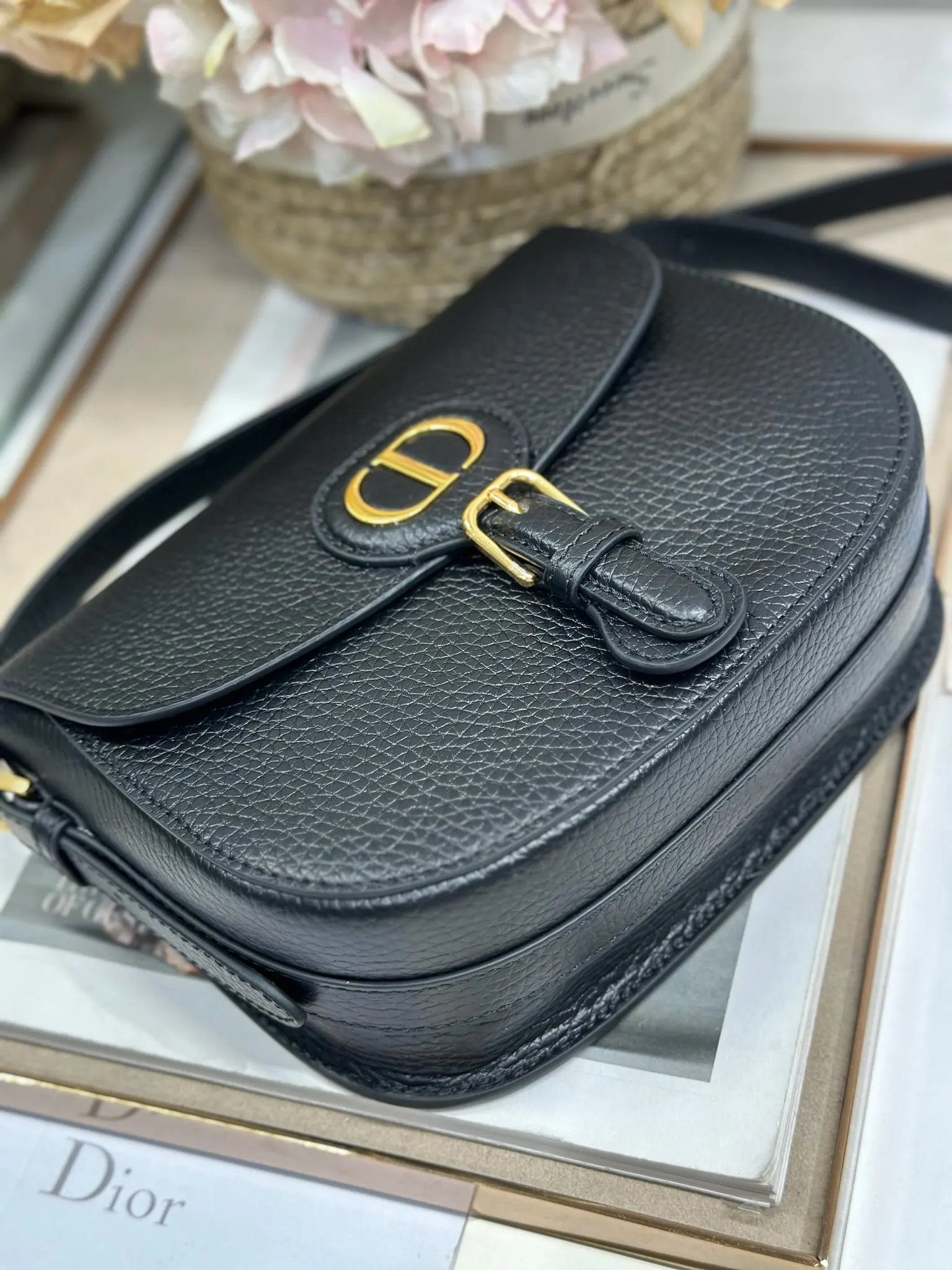 New Dior Bobby 中号手袋 黑色荔枝纹 这款 Dior Bobby 手袋早春系列新品 以高雅线条和匀称比例全新演绎水饺包廓形 彰显 Dior 风范 采用黑色粒面牛皮革精心制作 内部搭配绒面牛皮革 可拆卸 可调节的肩带搭配优雅的针扣调节 可手提 肩背或斜挎 型号 9337