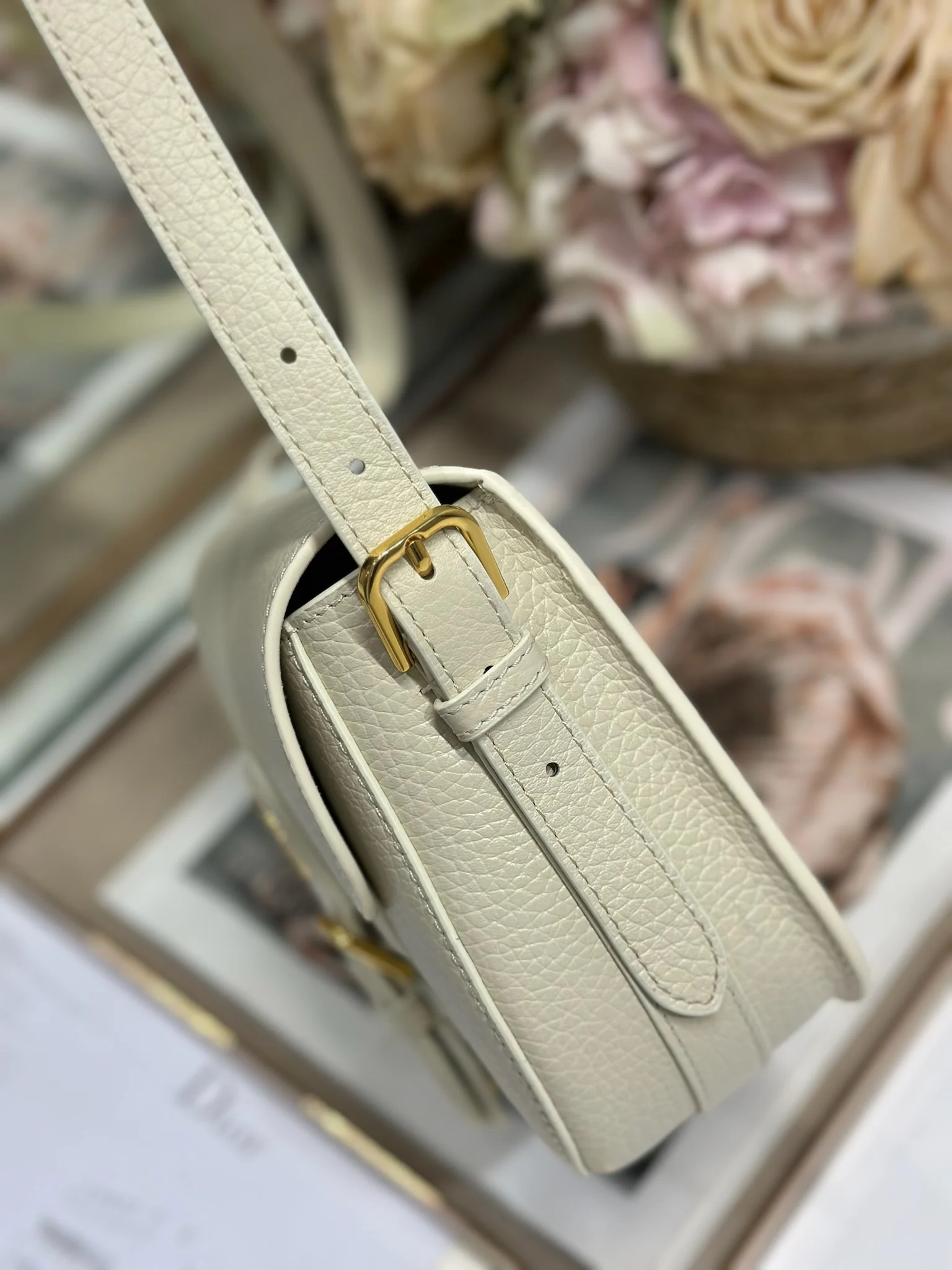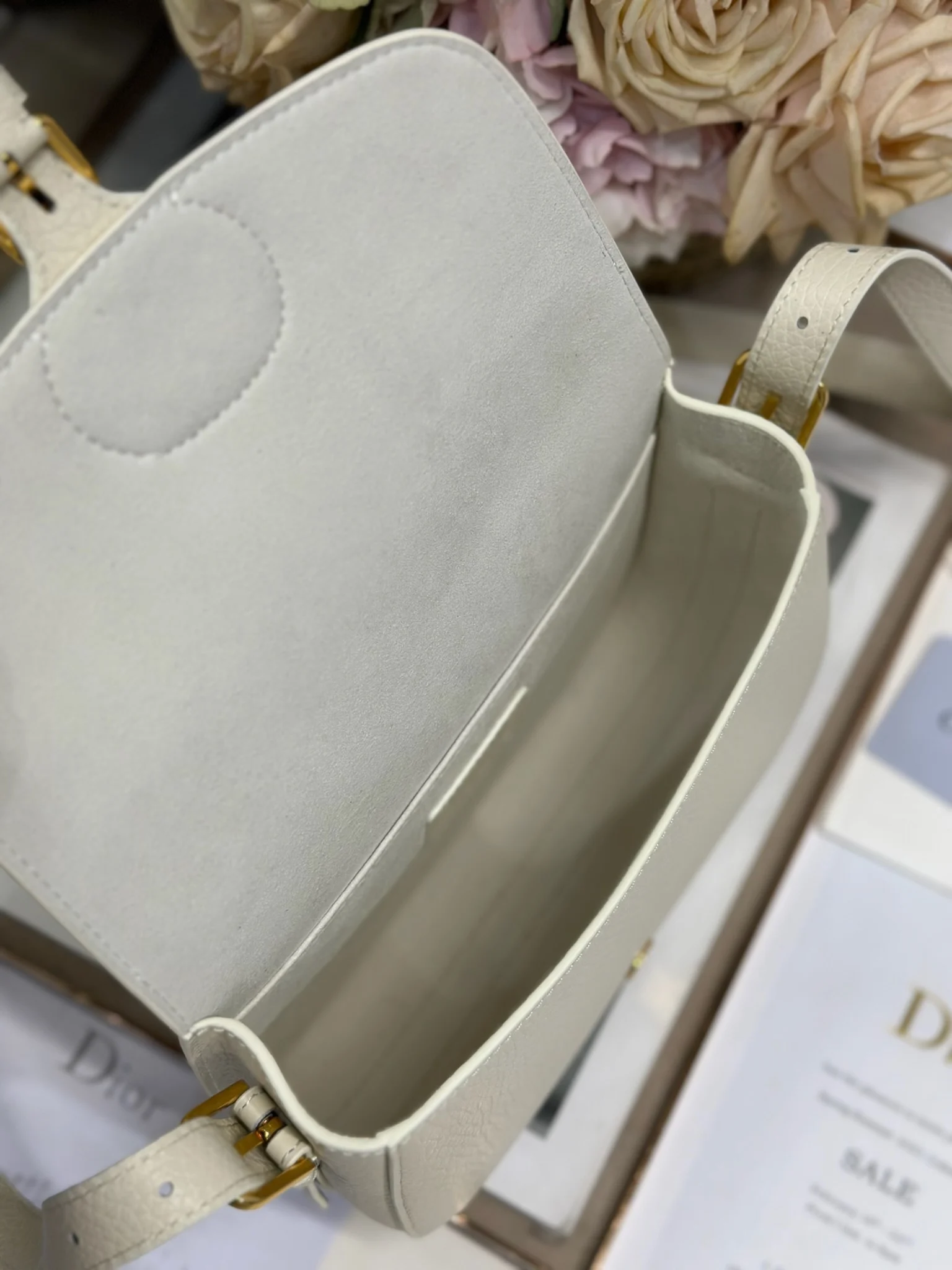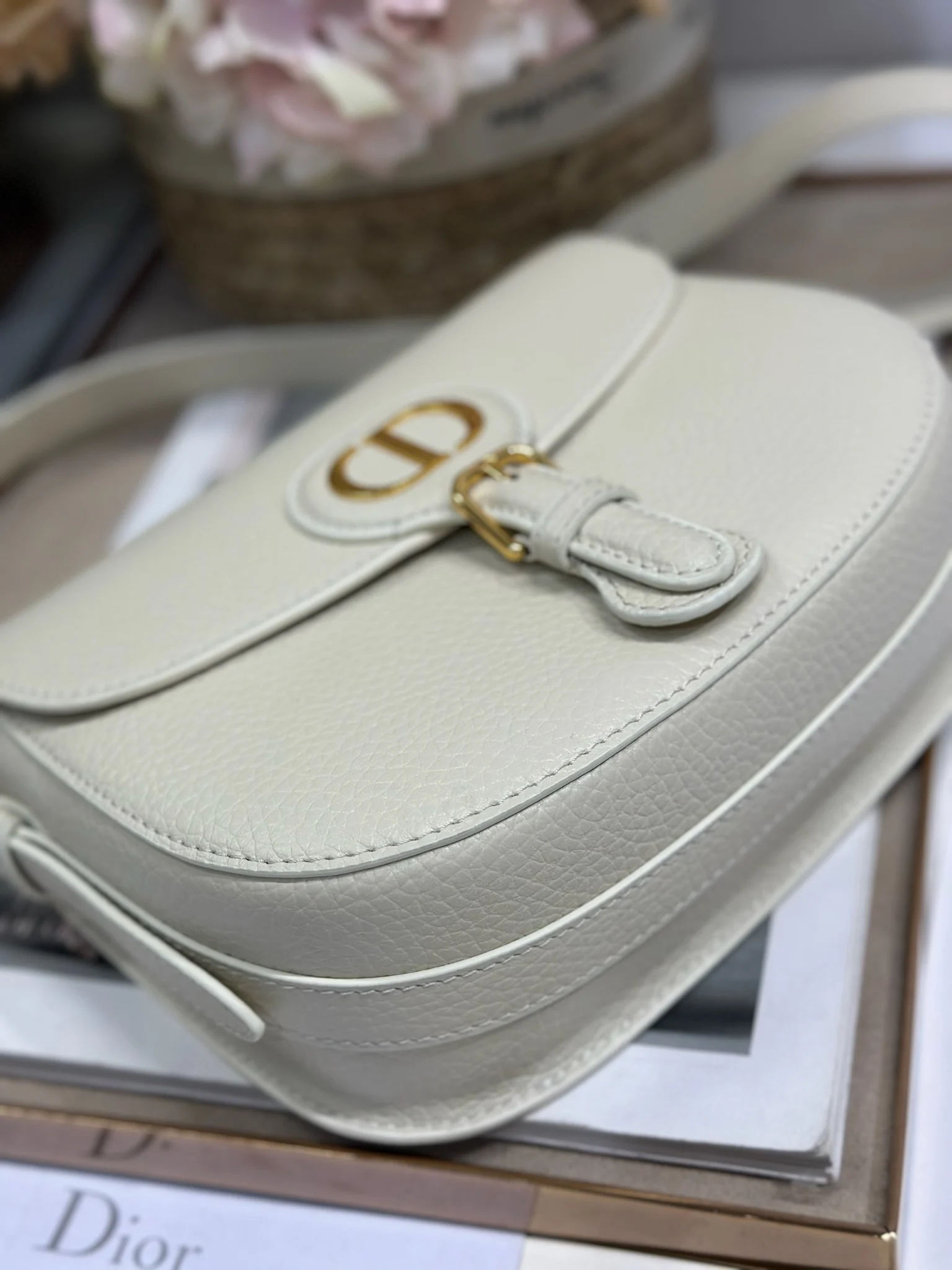 New Dior Bobby 中号手袋 白色荔枝纹 这款 Dior Bobby 手袋早春系列新品 以高雅线条和匀称比例全新演绎水饺包廓形 彰显 Dior 风范 采用白色粒面牛皮革精心制作 内部搭配绒面牛皮革 可拆卸 可调节的肩带搭配优雅的针扣调节 可手提 肩背或斜挎 型号 9337