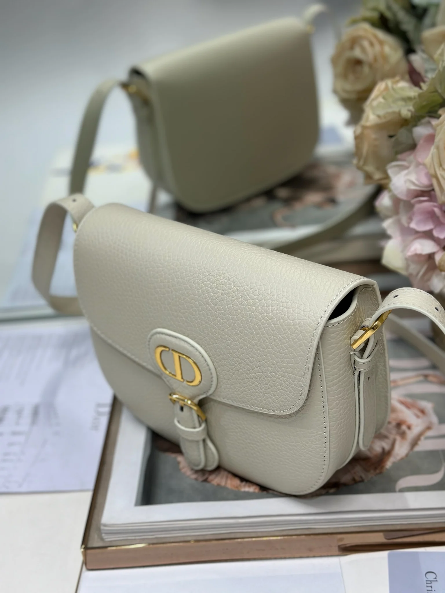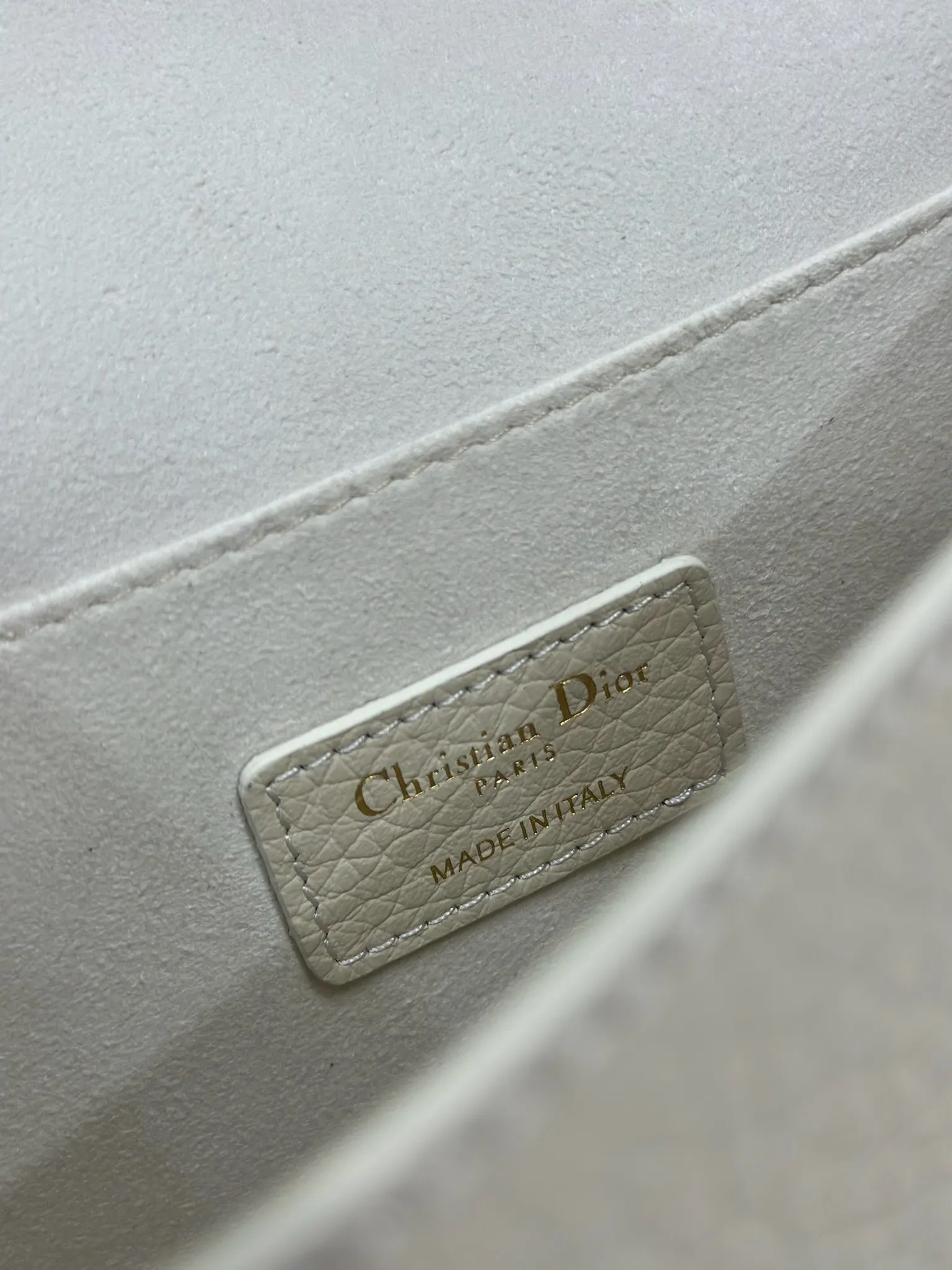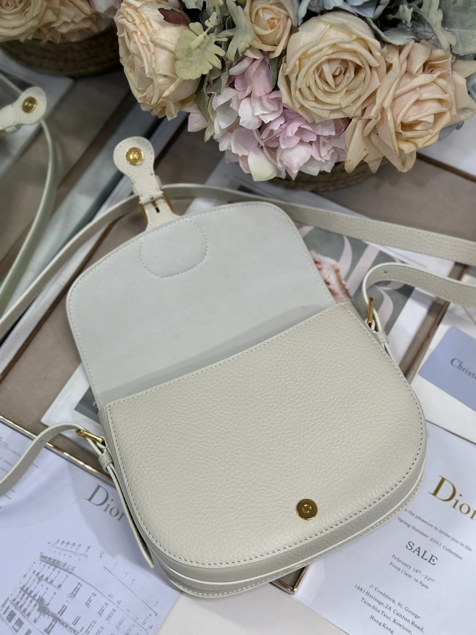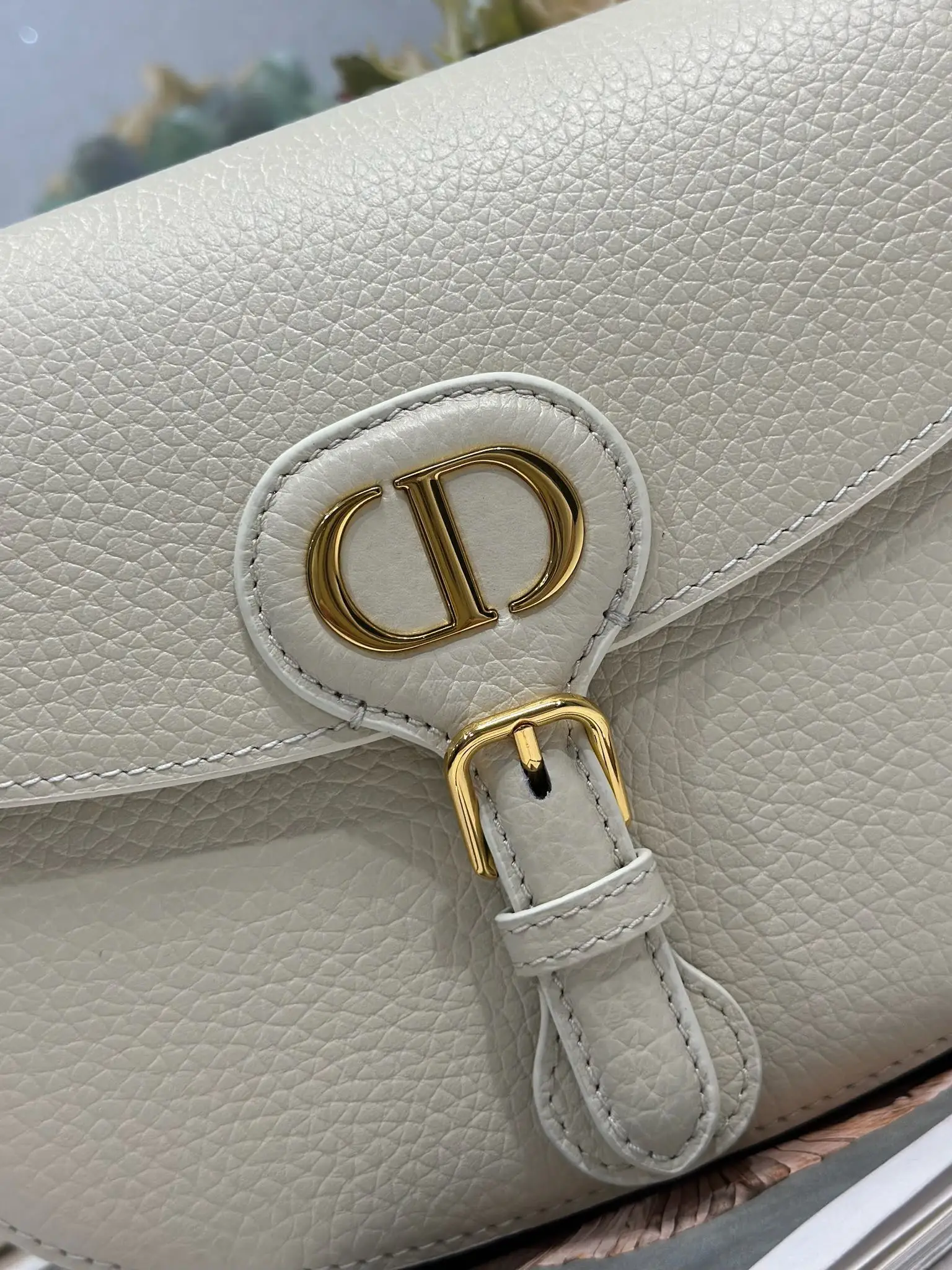 New Dior Bobby 中号手袋 白色荔枝纹 这款 Dior Bobby 手袋早春系列新品 以高雅线条和匀称比例全新演绎水饺包廓形 彰显 Dior 风范 采用白色粒面牛皮革精心制作 内部搭配绒面牛皮革 可拆卸 可调节的肩带搭配优雅的针扣调节 可手提 肩背或斜挎 型号 9337