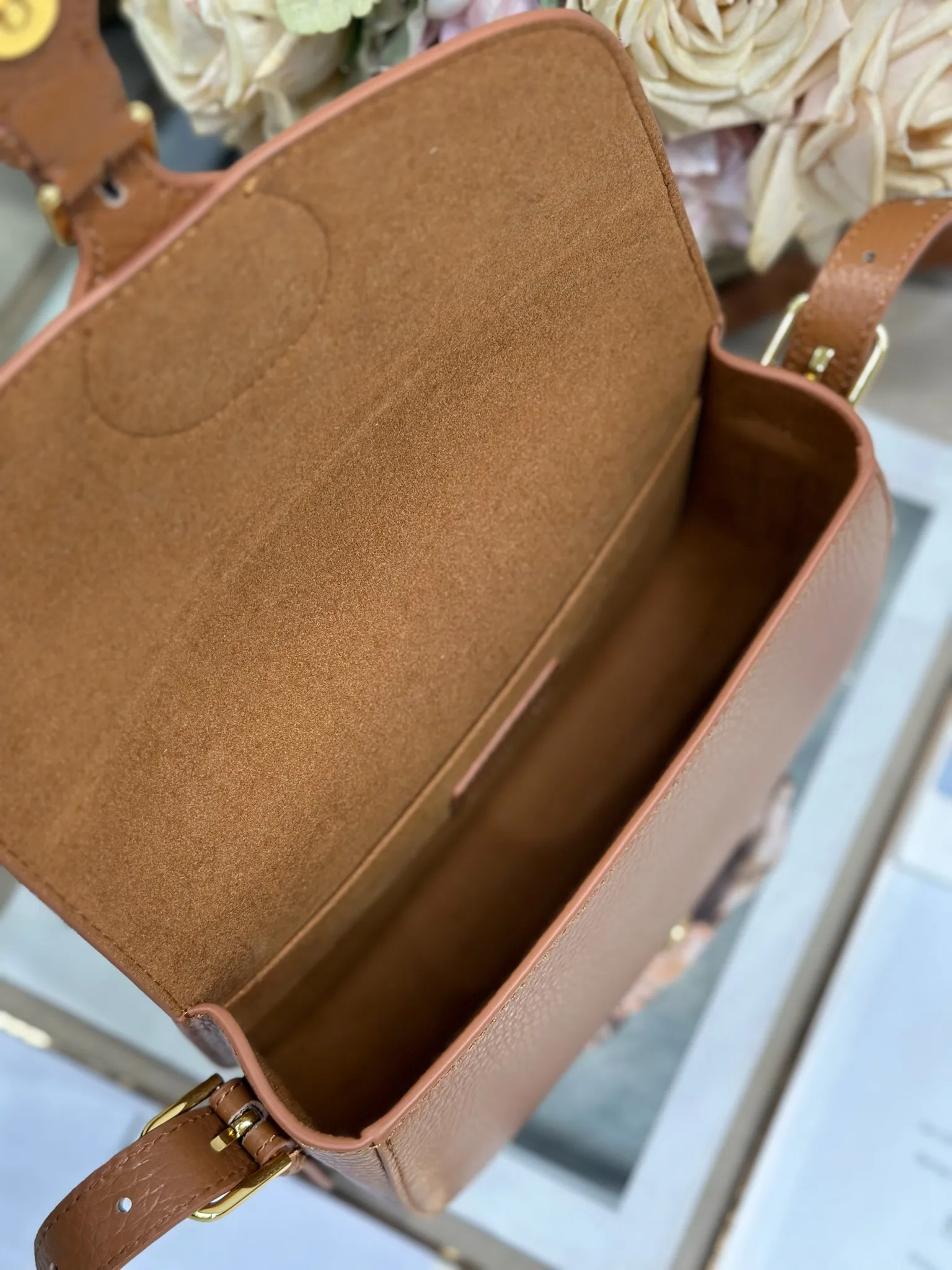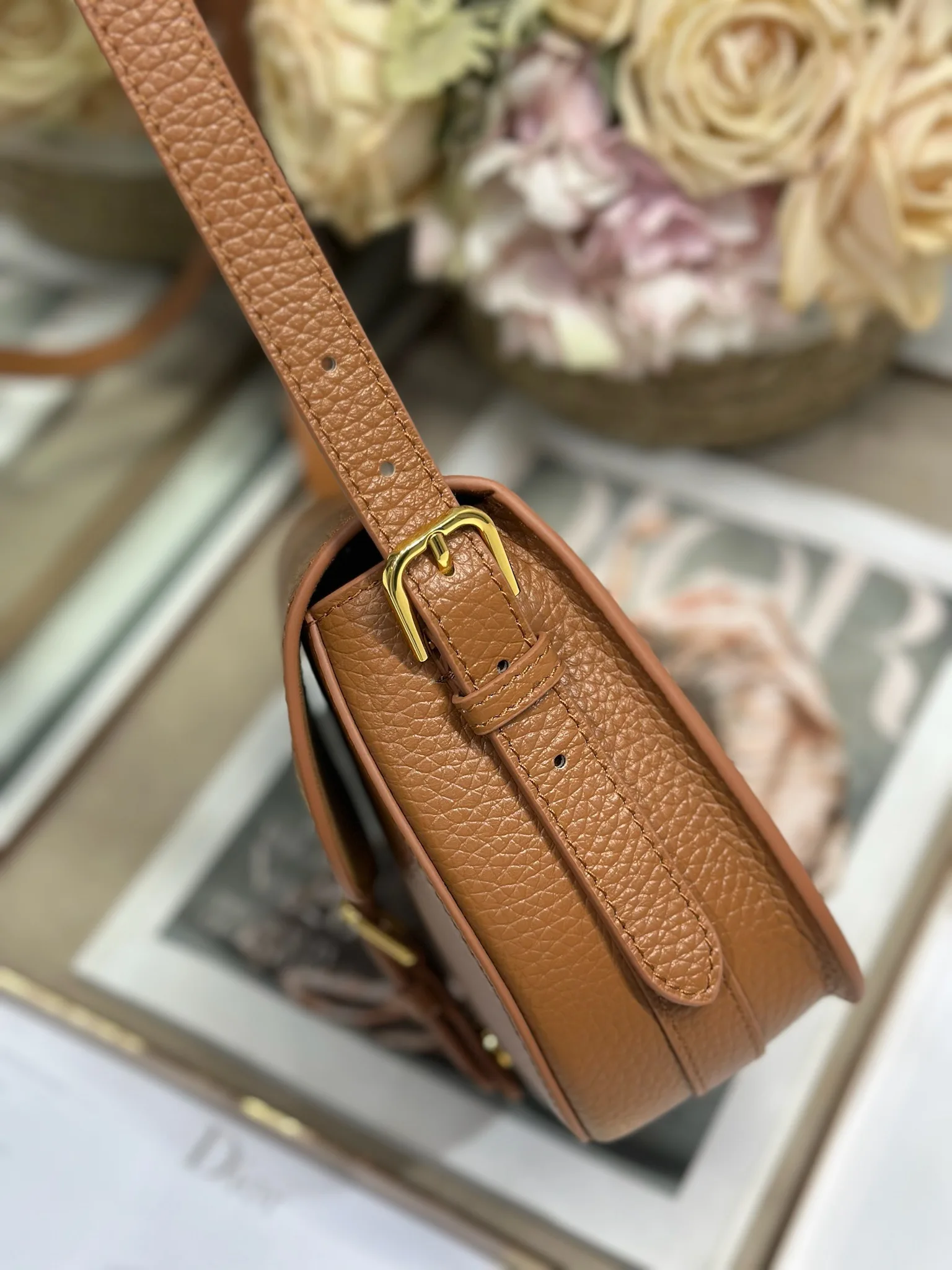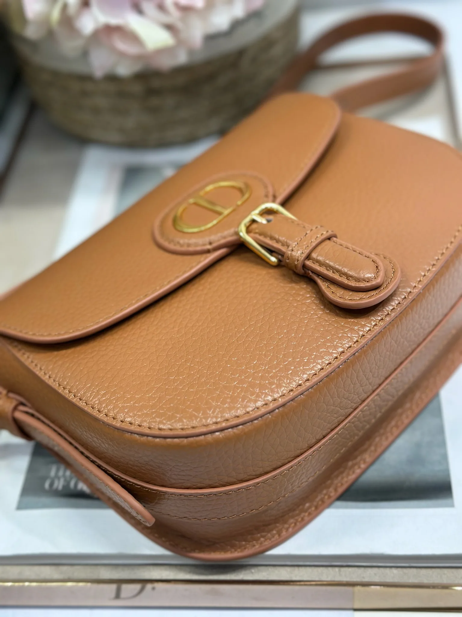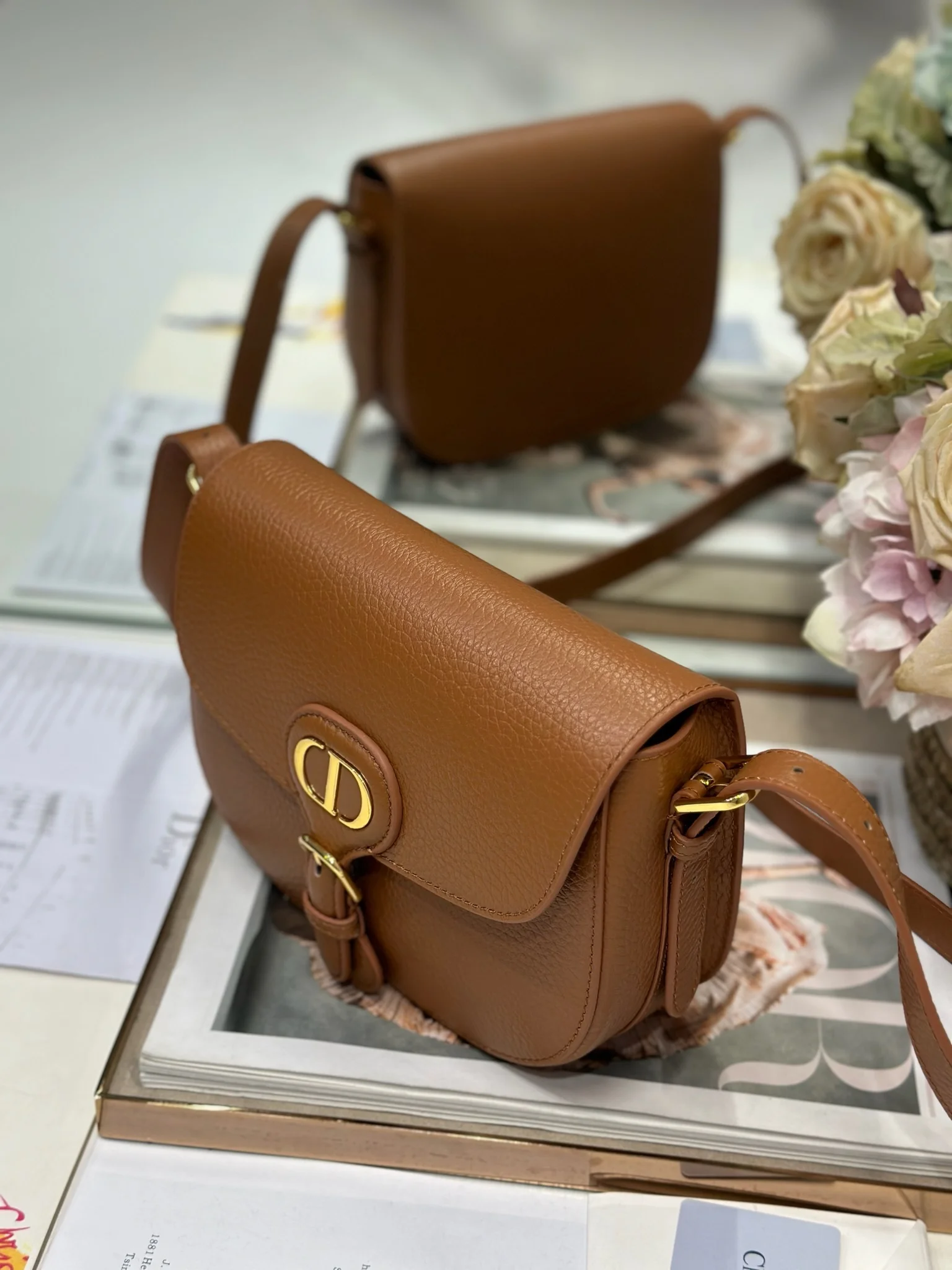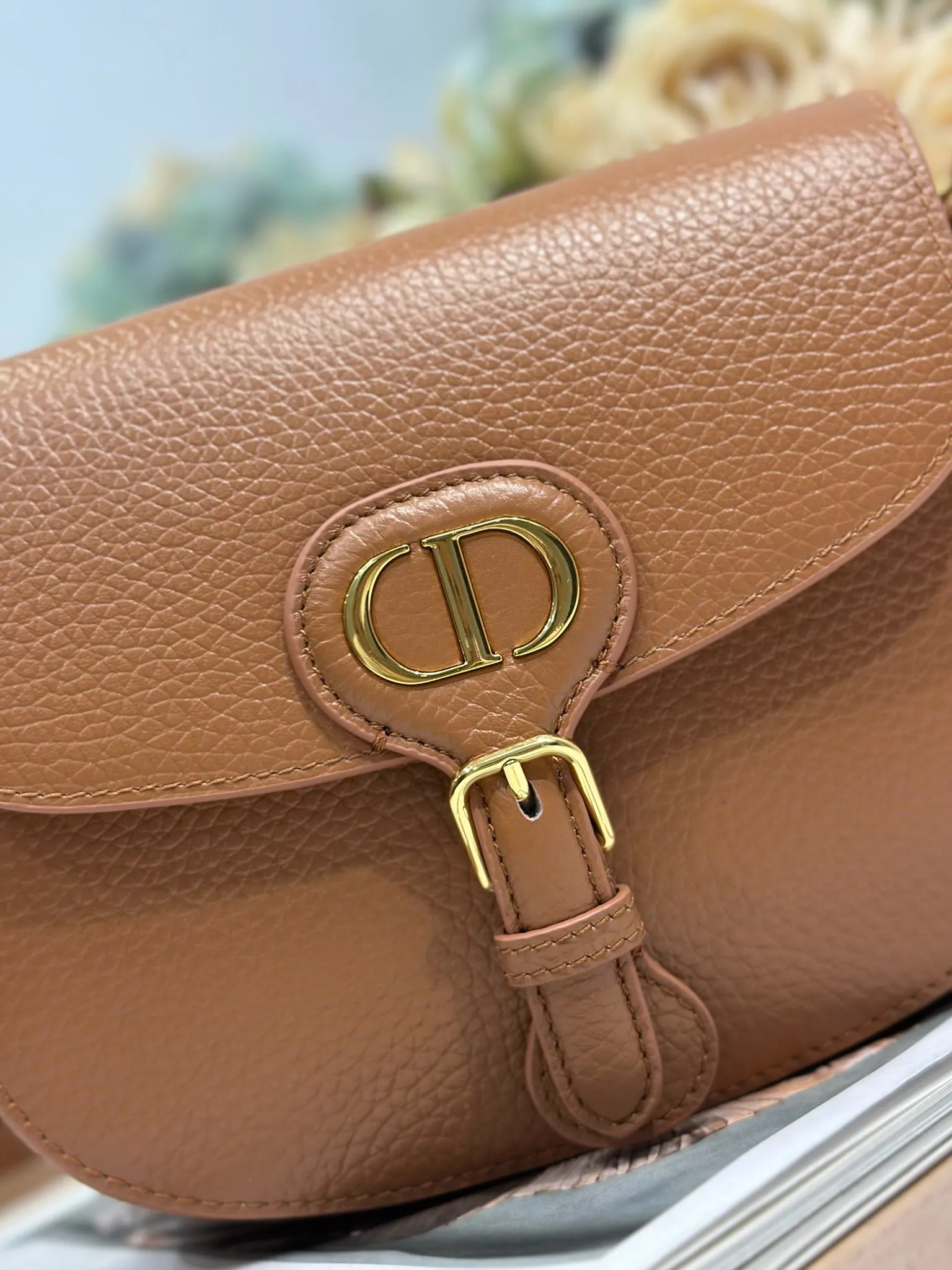 New Dior Bobby 中号手袋 棕色荔枝纹 这款 Dior Bobby 手袋早春系列新品 以高雅线条和匀称比例全新演绎水饺包廓形 彰显 Dior 风范 采用棕色粒面牛皮革精心制作 内部搭配绒面牛皮革 可拆卸 可调节的肩带搭配优雅的针扣调节 可手提 肩背或斜挎 型号 9337