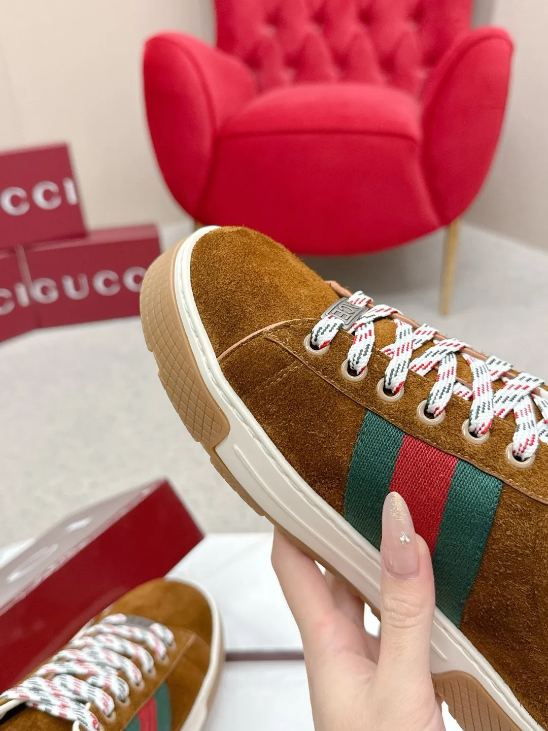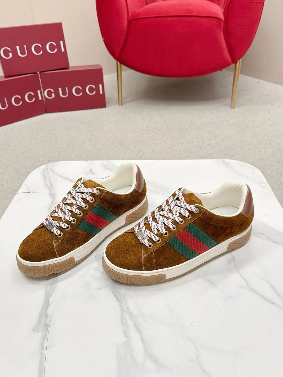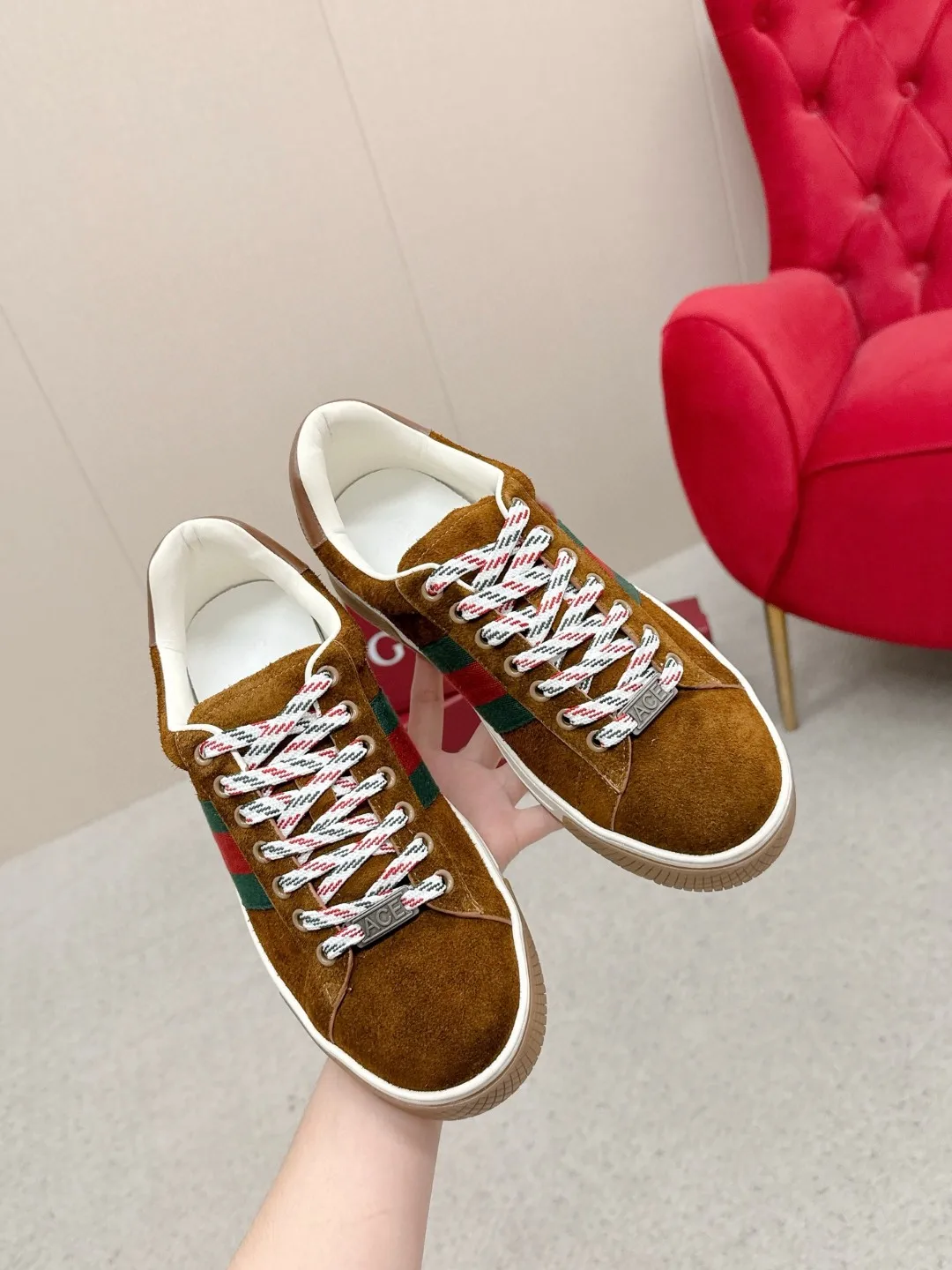 Gucci古驰 最新ACE系列 休闲运动鞋 众明星同款 经典棕色帆布+皮革拼接,侧面红绿条纹超有辨识度 完美鞋楦,日常休闲穿搭都很OK,上脚超美且舒服,潮人必入