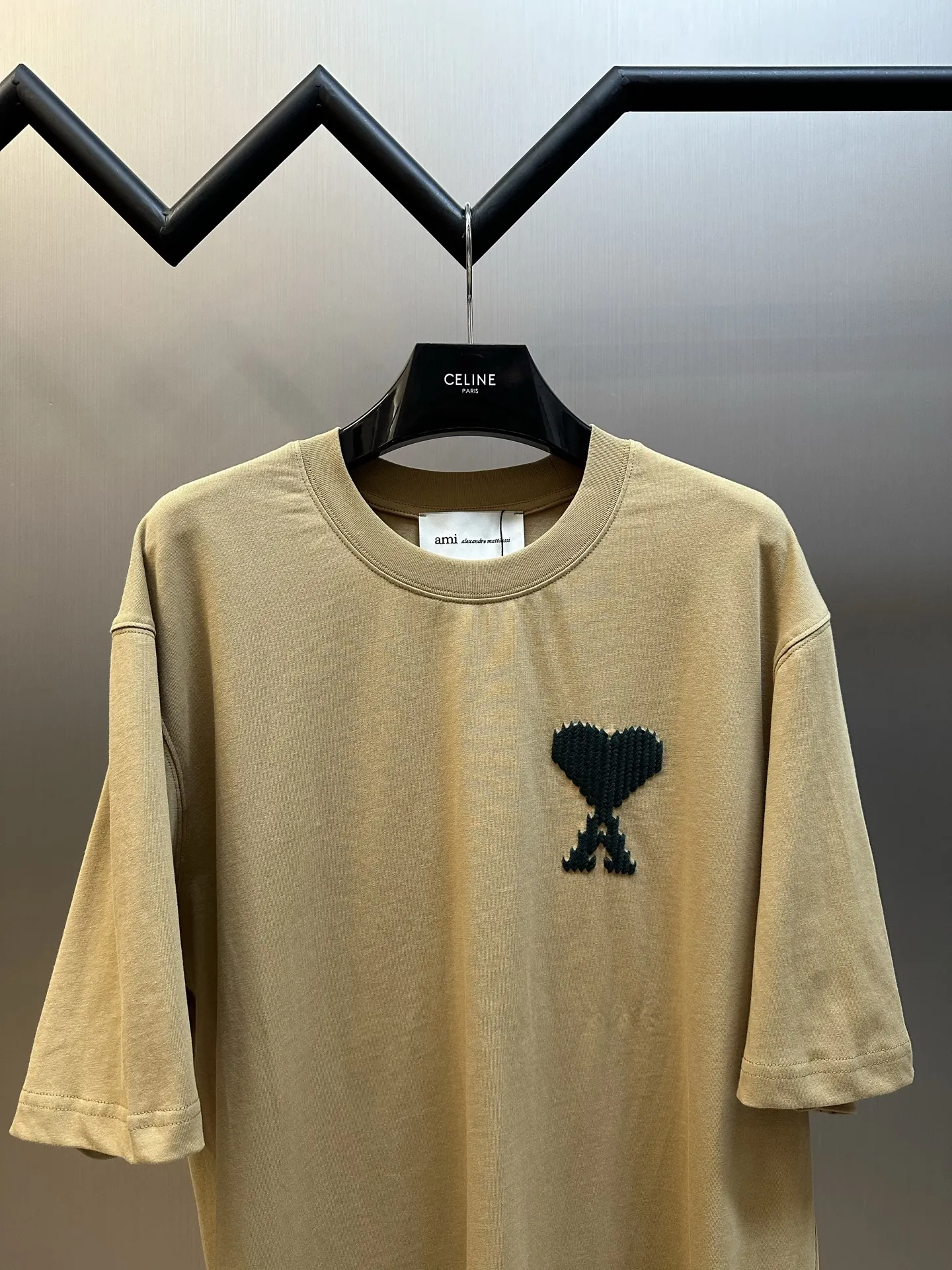 定制雾柔平纹棉面料 爱心标识被拆解为粗粝的像素颗粒 以像素化解构点缀于胸前 与后部AMI字母刺绣相得益彰增添品牌辨识度 藏尽法式浪漫
