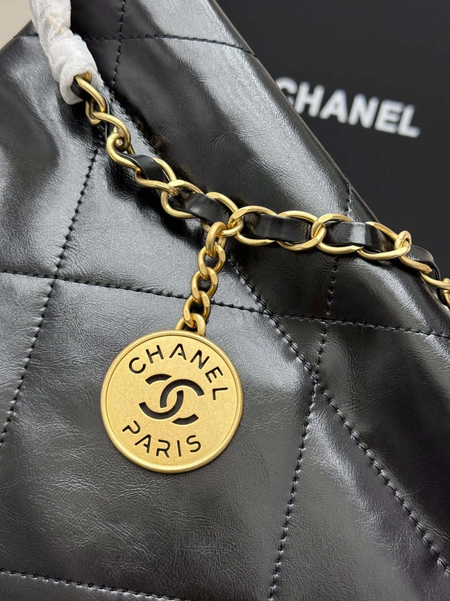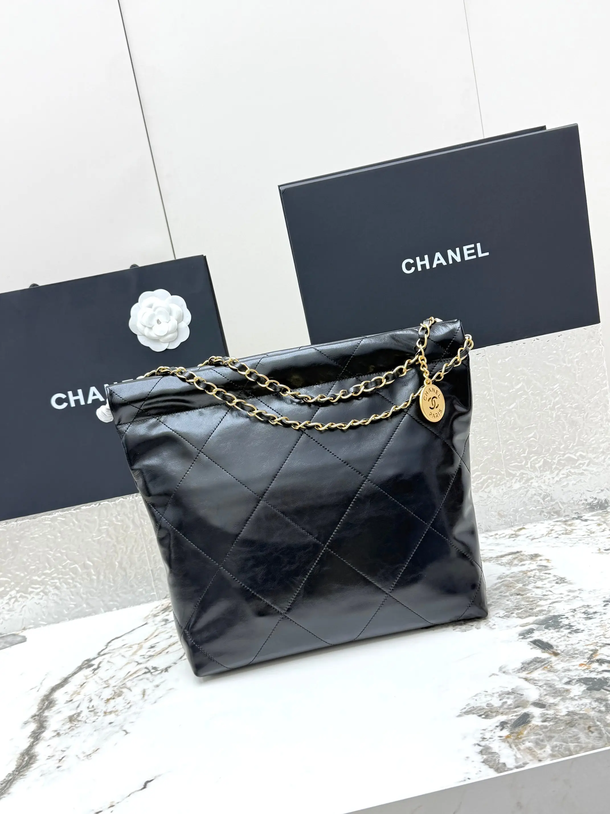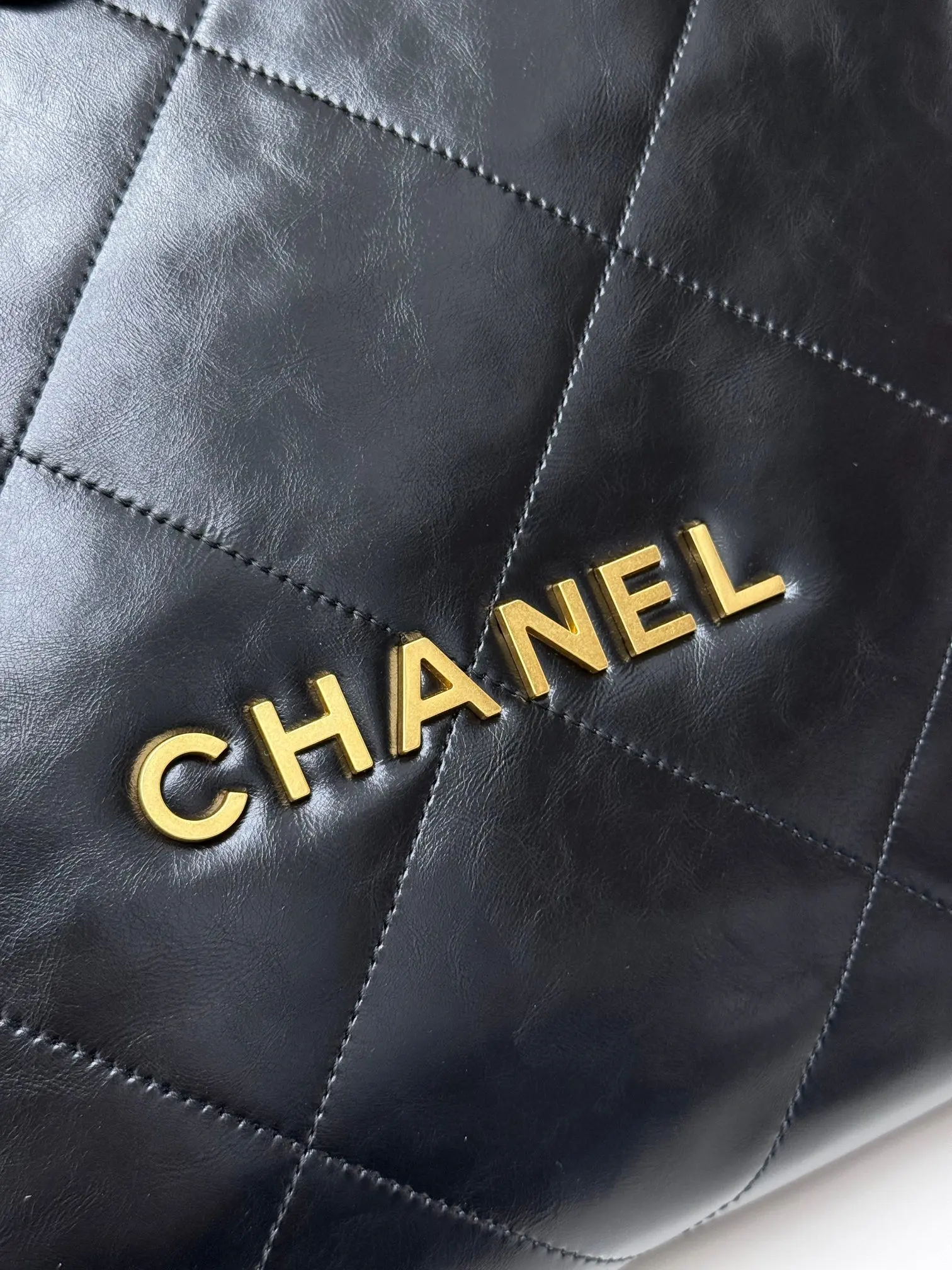 进口原厂皮 CHANEL 小号垃圾袋 香奈儿顶级原单货23A 22bag水桶包春夏火爆经典永不过时的垃圾袋 金标菱形格纹抽绳开合链条亮面油蜡小牛皮可斜挎可单肩 本季最火最值得入手尺寸 长37x宽7x高35cm