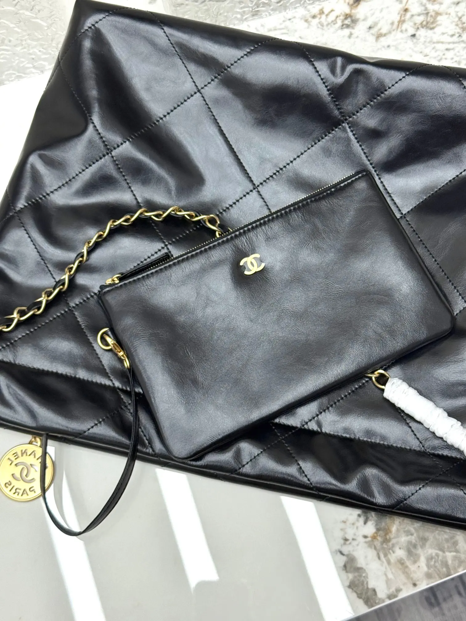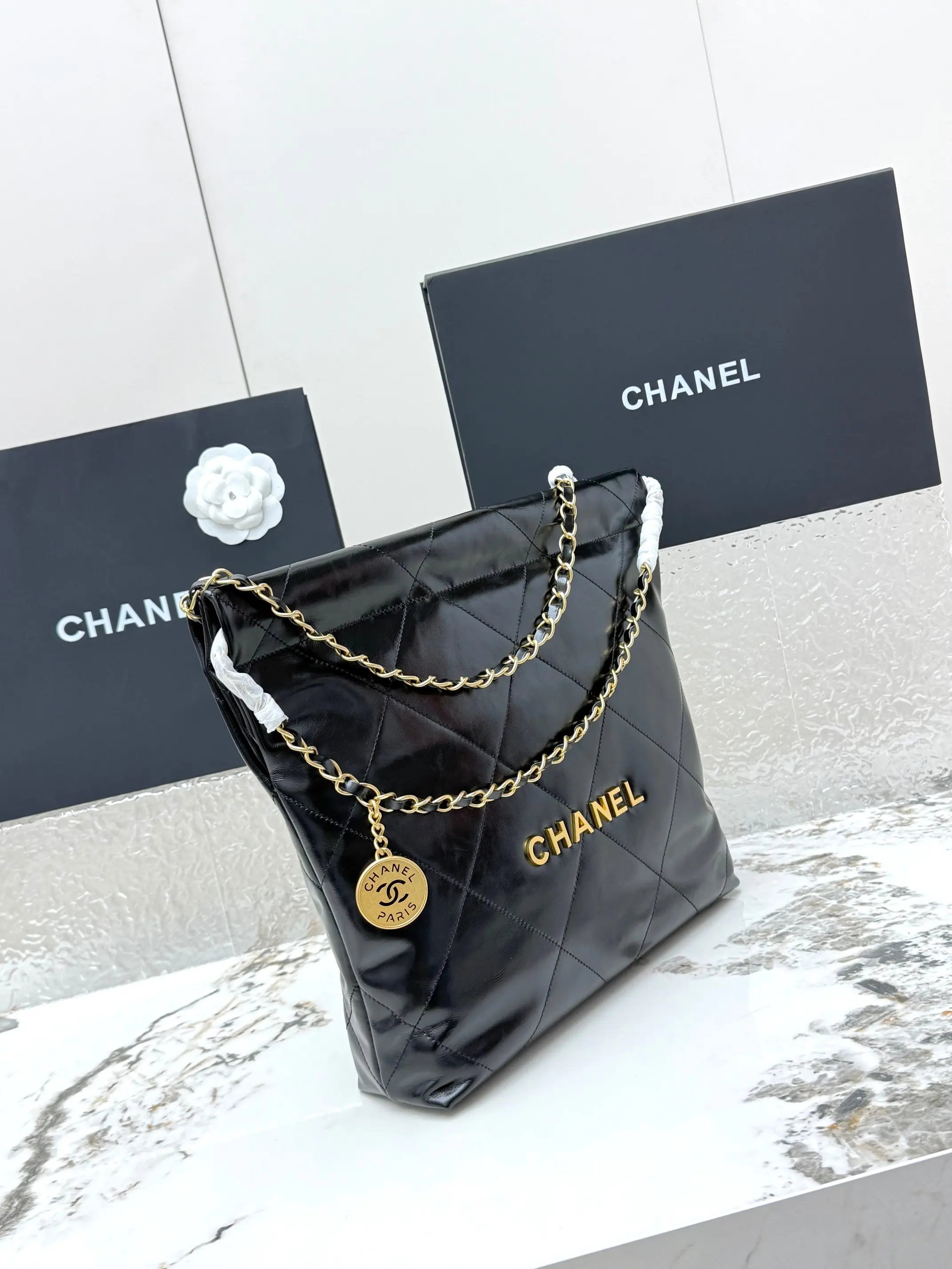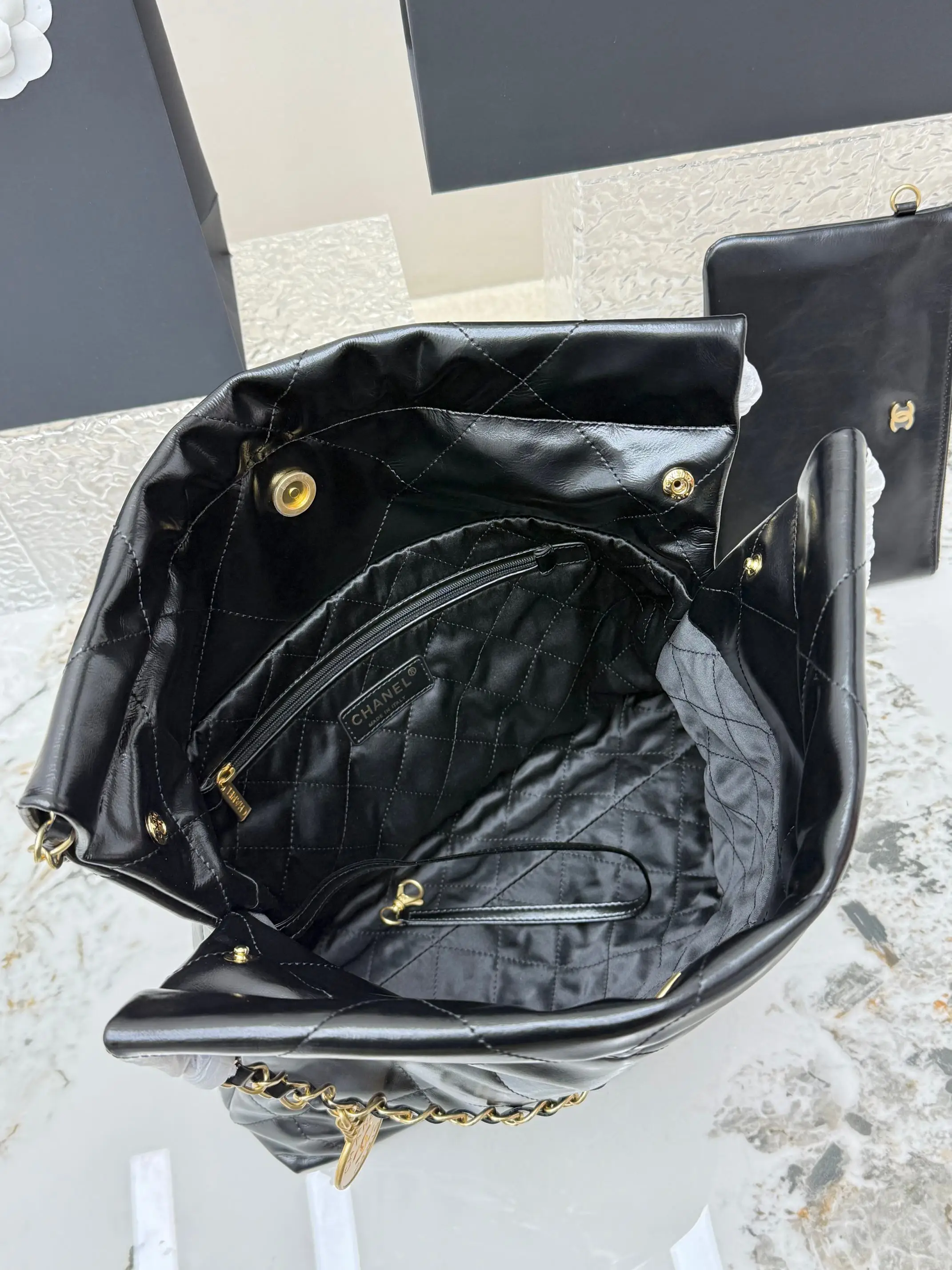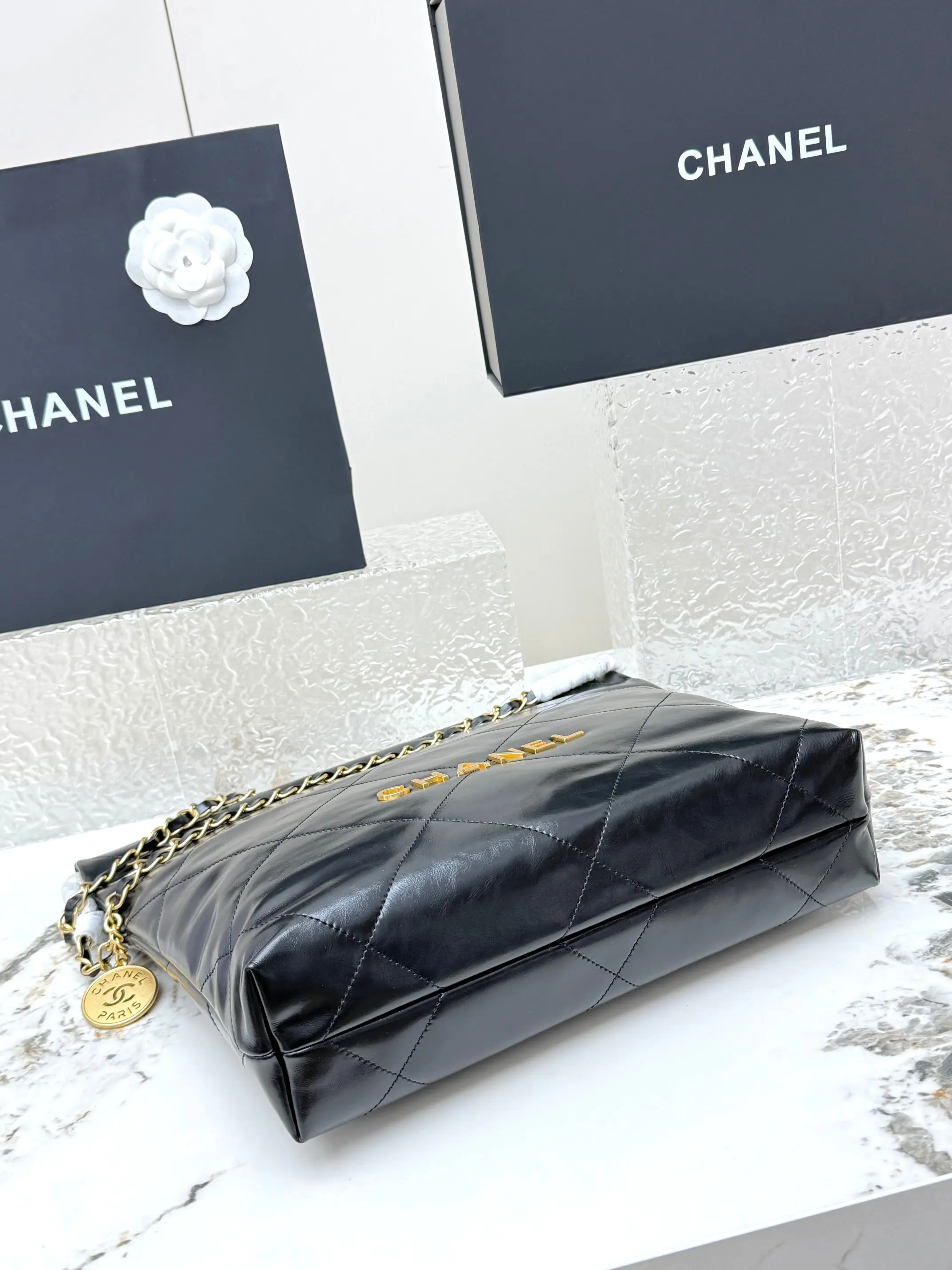 进口原厂皮 CHANEL 小号垃圾袋 香奈儿顶级原单货23A 22bag水桶包春夏火爆经典永不过时的垃圾袋 金标菱形格纹抽绳开合链条亮面油蜡小牛皮可斜挎可单肩 本季最火最值得入手尺寸 长37x宽7x高35cm
